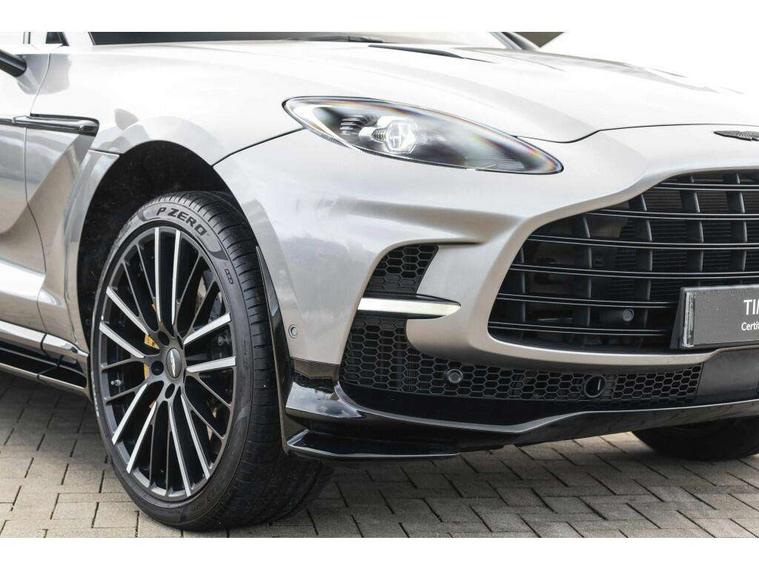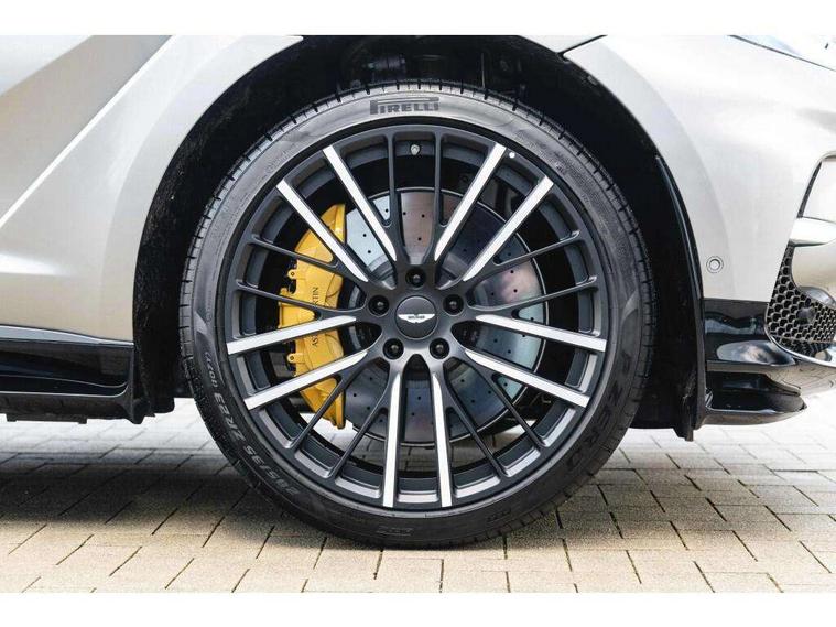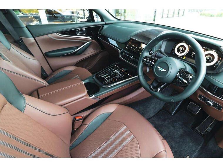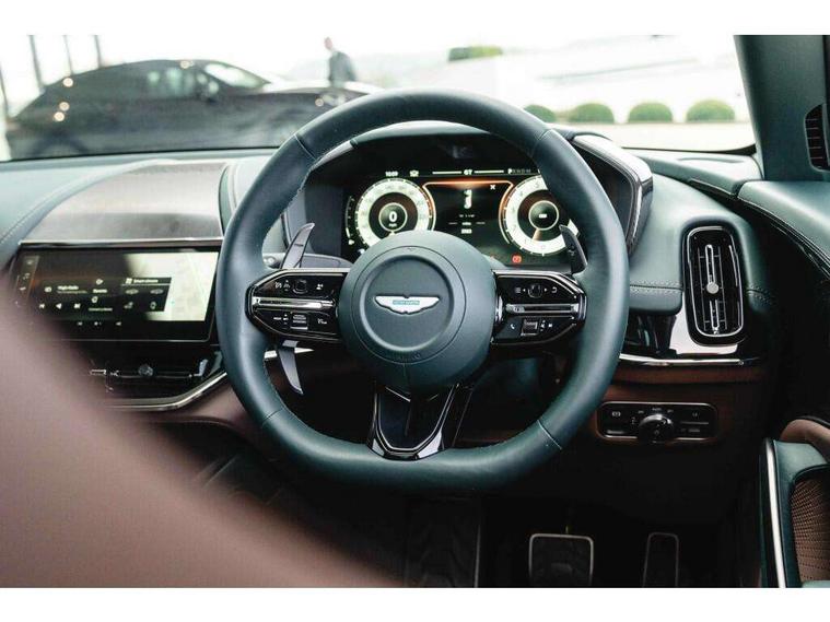 10.25" TFT centre display, 12.3" TFT instrument display, Adaptive cruise control, Apple car play/Android Auto, Aston martin satin chrome designer key, Blind spot monitoring, Bluetooth telephone connectivity, Brake pad wear indicator, Drive modes Terrain, Individual, GT, Sport, Sport + including launch control, eCall emergency call system, Electric power assisted steering (EPAS), Forward collision warning, Front parking aid with visual indicator, Inductive phone charger, Infotainment touchpad and dial, Lane change warning, Lane departure warning system (LDW), Lane keep assist, Outside temperature display, Park assist system, Rear crossing traffic warning, Rear parking aid with visual indicator, Rotary dials, Rotary infotainment system interface, Satellite navigation system, SOS emergency call button, Speed limiter, Standard underbonnet, Stop/start system, Surround camera system with deploying rear camera, Traffic sign recognition, Voice control system, 9 speed automatic transmission, Active centre transfer case, Adaptive triple chamber air suspension, All Wheel Drive (AWD), Battery conditioning connector, Electric active roll control, Electric limited slip rear differential, Electronic adaptive damping system, AM/FM radio, Aston martin premium audio, Bluetooth audio streaming, DAB Digital radio, SD card slot, USB port, 3rd brake light, Acoustic laminated front windows, Active rear brake lights, Approach Illumination, Auto dimming interior rear view mirror, Automatic headlights, Automatic high beam - AHB, Bi LED headlights, Body colour side vent, Carbon fibre rear wing lip spoiler, Electric windows, Fixed panoramic glass sunroof, Heat insulating glass, Heated rear window, Horizontal DRL/turn indicator design with larger air intakes and brake cooling grilles, LED centre high mounted stop light, LED daytime running lights, LED rear fog light, Matte black mesh bonnet vents, Power foldback door mirrors, Rain sensing windscreen wipers, Rear bumper design with integrated quarter panel vents, Rear side wing doors, Rear wiper, Sport exhaust, Standard paint protection film, 12V power sockets, 16 way electric front seats with memory, 3 seat bench in 2nd row, 40:20:40 split folding rear seats, Ambient lighting, Anodised aluminium sill plaques with aston martin wings, Automatic climate control, Black loadspace carpet, Courtesy Light, Embossed - Aston martin wings, Front and rear door pockets, Front centre console storage cover, Front head restraints, Gloss black double layer side sills, Glovebox with electric locking, Heated seats, Isofix/I size rear outer, Load rails in load space, Load tie downs in load space, Lower front console storage, Map pocket on front seat storage, Rear head restraints, Single front passenger seat, Soft close doors, Sports plus seats, Stainless steel sill protector in load space, Twin cupholders in front and rear, Twin front centre armrest, Twin sunvisors with illuminated vanity mirrors, 3x3 point rear seatbelts, Airbags - Driver and front passenger and knee, Anti theft locking wheel bolts, Anti-lock braking system (ABS), Auto vehicle hold function, Autonomous emergency braking, Carbon ceramic disc brakes, Door exit warning, EBD - Electronic brakeforce distribution, Electric parking brake (EPB), Emergency brake assist, ESC (Electronic Stability Control), Front thorax airbags/Side curtain airbags, HDC - Hill descent control, High performance braking system, Hill start assist, Intelligent wet brake control, Rear child proof door locks, Rear thorax airbags, RSC - Roll stability control, Seatbelt pre-tensioners, Seatbelt status indicator, Torque vectoring brake, Traction control, Tyre pressure monitoring system, Warning triangle, Alarm/immobiliser, Keyless entry with start/stop button, Remote central locking, Seat perforaton elegant, Seat quilting elegant,