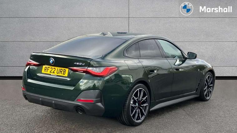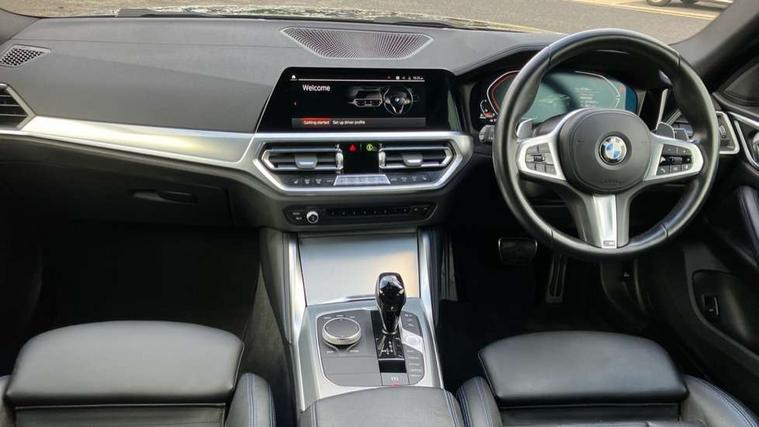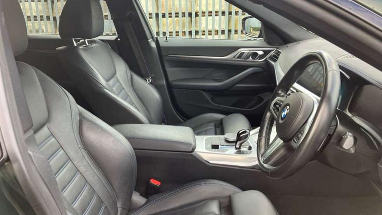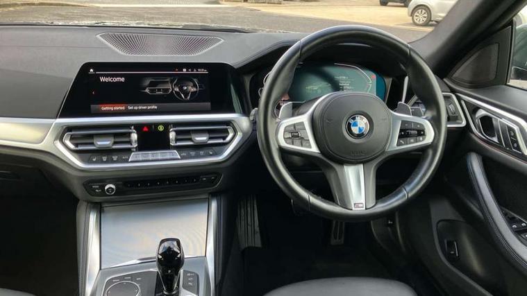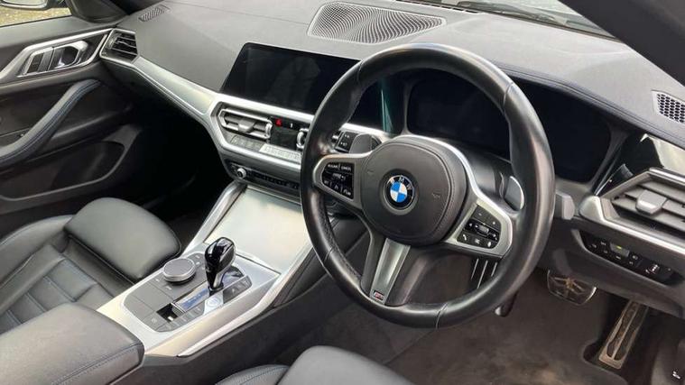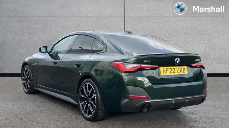 Active guard plus, Attentiveness assist, Auto start-stop, BMW ConnectedDrive online services, BMW iDrive controller on centre console, BMW Live Cockpit Professional Nav with 12.3" instrument display + 10.25" display, Intelligent Voice Assist, BMW OS 7, HDD, 2USB, 4G LTE connect, BMW service history, BMW Teleservices, Brake pad wear indicator in front and rear, Check Control warning system for monitoring of lights and door/luggage compartment open warning, Condition based service, Cruise control with brake assist, Electric bootlid, Electric power steering with Servotronic steering optimised at all speed ranges, Gearshift time display in manual mode, Instrument cluster with speedometer with mph readout, tachometer, fuel gauge and oil temperature gauge, Integrated owners handbook, Oil sensor for level and grade, warning by check control system, On board computer - average speed, fuel consumption, outside temp display with acoustic warning, clock/date, service interval, odometer/trip meter, Optimum shift indicator, Variable sport steering, 48V Mild hybrid technology, 8 speed automatic steptronic transmission with gearshift paddles, Diesel particulate filter, Drive performance control - ECO PRO, comfort and sport modes, Electronic differential lock control (EDLC), Incorrect fuelling protection, Low centre of gravity, M sport suspension, Stroke dependent dampers, xDrive system permanent all-wheel drive variable torque distribution, DAB tuner, Electronic service booklet, 3rd brake light, Acoustic glazing, Automatic headlight beam throw control with load dependent regulating reaction, dynamic compensation of braking dive and acceleration squat, Automatic windscreen wipers and automatic headlight, Automatically dimming electrochromatic rear view mirror, BMW emblem on engine compartment lid and tailgate, BMW kidney grille with mesh grille front side of the nuggets in matt aluminium and frame in chrome high gloss, Body colour fuel filler flap, Body colour M sport rear spoiler, Body colour roof fin, Brushed aluminium inserts in the front door sill finishers with BMW designation, Dynamic brake lights, Electric windows - front and rear, with open/close fingertip control, anti trap facility and comfort closing function all round, Exhaust tailpipe - split left and right, Exterior mirrors - electrically folding with anti-dazzle, Fading support, Follow me home headlights, Front and rear bumper system, Front apron plastic in body colour, Green tinted heat protection glazing, High gloss shadow line exterior trim, Illuminated bow type door handles in body colour drivers side with door lock, Interior rear view electrochromatic mirror with automatic anti dazzle function, LED daytime running lights, LED front fog lights, Licence plate panel integrated into front bumper and tailgate, Lightweight engineering, M designation on front side panels, left and right, One piece front bumper cover including towing eye cover in body colour, Preparation for high beam assistant, Rear side wing doors, Rear wiper, Reversing light, Side frame decorative moulding black matt, Two part LED tailights in L-shape with components in smoked glass, brake light, LED turn indicator and rear fog light, Visible VIN plate, Welcome lights in interior and door handle area, Widened track and increased camber values for max transverse dynamics, agility and steering precision, Window recess cover black high gloss, Windscreen wipers with integrated heated washing jets, xDrive designation on left tailgate, 12V power socket in front centre console, 2 front cupholder in centre console with clamping elements and matt black inlay, 3 rear headrests, 3 seat bench in 2nd row, 3 spoke M sport leather multifunction steering wheel, 3 zone automatic air conditioning, 4 pieces lashing eyelets in luggage compartment, 40:20:40 split folding rear seat and rear centre armrest with two cupholders, Ambient lighting with welcome carpet light, Anthracite headlining, Armrest integrated in front and rear door trim + front centre console armrest, Driver seat backrest width adjustment, Four grab handles integrated in roof lining, Front and rear door pockets, Front and rear footwell lights, Front and rear reading lights, Front headrests, Front sport seats, Heated driver and front passenger seats, Height adjustable mechanically and infinitely variable steering column, Illuminated armrest storage compartment, Illuminated glove compartment with separate small compartment, Luggage compartment light, Make-up mirror lights, Single front passenger seat, Storage compartment in rear centre console, Sunvisors with vanity mirrors and ticket pocket, Toolkit located in luggage compartment, Velour front floor mats, Vernasca leather upholstery, Connected professional package - 4 Series, M sport exterior styling pack - 4 Series, Park assist pack - 4 Series, 3 point seatbelts on all seats, Battery safety cut-off, BMW emergency call, Brake energy regeneration, Braking pre-tensioning, Child proof locking system in rear door, Child seat ISOFIX attachment for the two outer rear seats, Coasting in idle in ECO PRO mode, Cornering brake control (CBC), Crash sensor activating of airbags, Unlocking doors, hazard warning lights, interior light, safety battery terminal, Driver and front passenger side airbags, integrated in the door side seat backrest bolsters for all seat variants, Driver/Front Passenger airbags, Dry braking, Dynamic brake control, Dynamic stability control + (DSC+) - Anti-lock Braking System (ABS) with brake assist and cornering brake control + Automatic Stability Control (ASC), Dynamic Traction Control - DTC, Electric parking brake including automatic hold function and automatic release of the parking brake when driving off, Front and rear ventilated brake disc, Front passenger manual airbag deactivation, Head airbags for all 4 outer seats, Hill start assistant, Seat belt security check for driver and front passenger, Seat belt with belt stopper, pyrotechnic belt tensioners and be