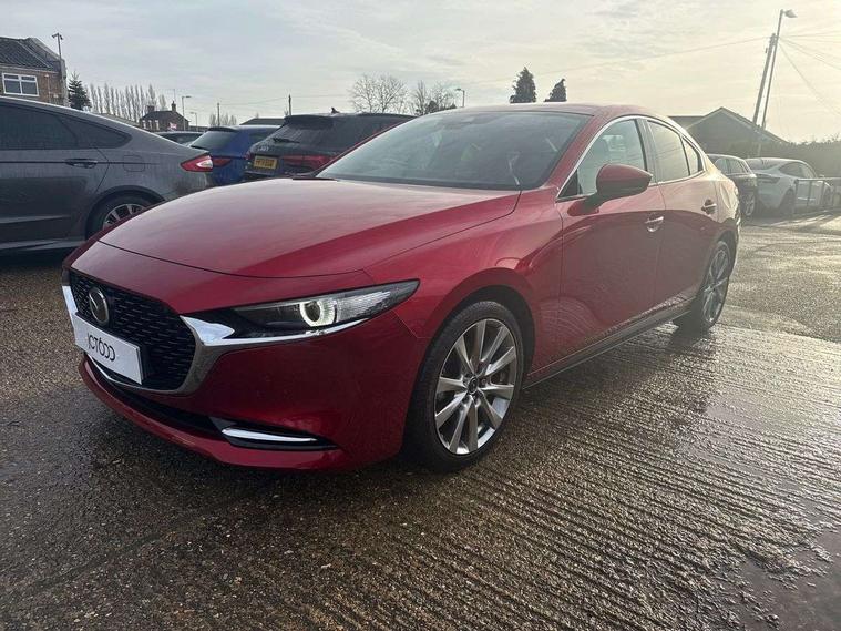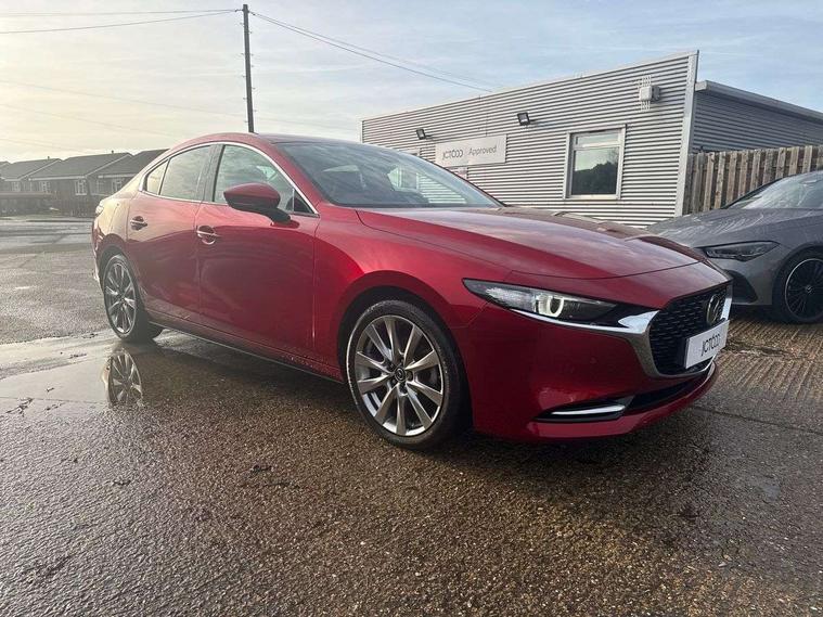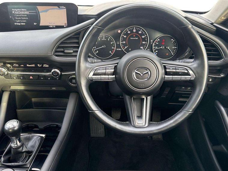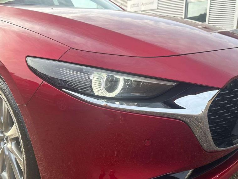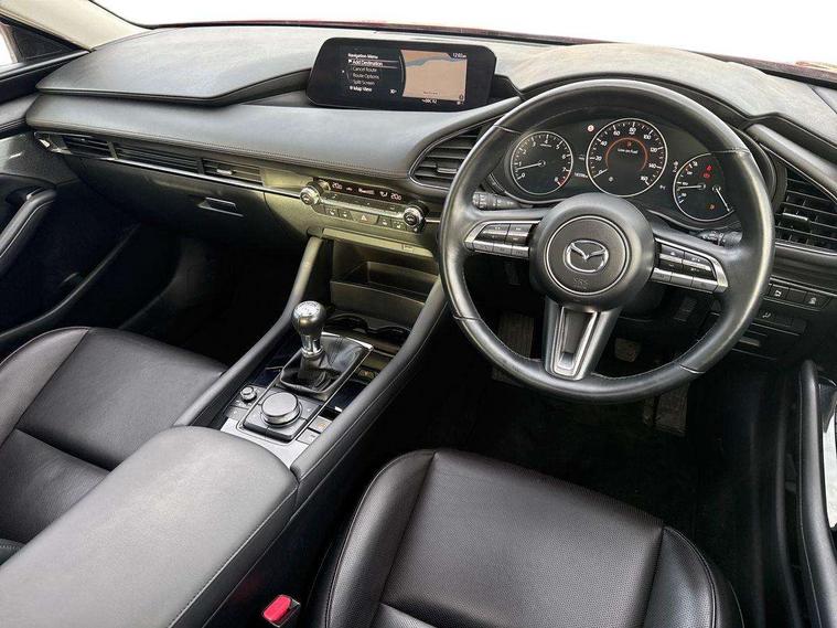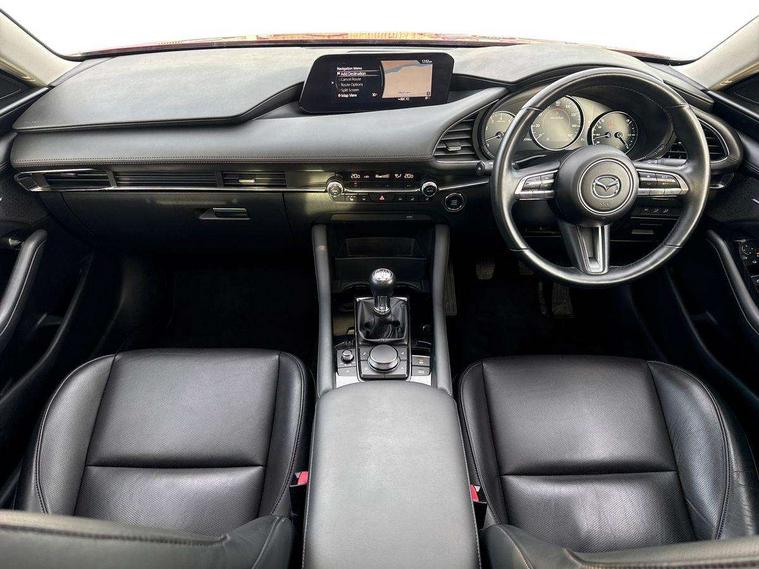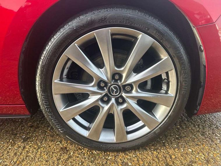 7" colour TFT display, 8.8" Colour centre touch screen display with Mazda Connect infotainment, Apple car play/Android Auto, Audio transfer from bluetooth devices, Blind spot monitoring with rear cross traffic alert, Colour active driving display inc Windscreen projected, Traffic Sign Recognition, turn-by- turn navigation and Mazda Radar Cruise Control information, Digital instrument cluster, Driver attention alert system, E-call with GPS, Emergency stop signalling system, Engine start/stop button, Front and rear parking sensors, Head up Display, Integrated bluetooth with steering wheel mounted controls, Intelligent speed assist, Lane keep assist system (LAS) with Lane departure warning system (LDWS), Mazda Navigation System with european mapping, Mazda Radar Cruise Control, Mobile App interface, Multimedia Commander, PAS, Reversing camera, Service indicator, Trip computer, i-stop, Mazda Multimedia System with AM / FM / DAB radio with 12 Speaker Bose sound system, bose centerpoint, bassmatch+audiopilot technology, Adaptive LED Headlights, Auto dimming door mirrors, Chrome finished signature wing, Coming/leaving home lighting function, Daytime running lights, Door mirrors with adjustable memory and tilt-down function when reversing, Dusk sensing headlights, Electric front/rear windows with one touch/auto up/down, Electrically adjustable/heated/auto power folding door mirrors with integrated indicators, Frameless auto dimming interior rear view mirror, Front body coloured bumper with black/bright lower bezel, Gloss black mesh grille, LED headlamps with auto levelling, LED indicator lights, LED third brake light, Piano black window garnish, Power tilt and slide sunroof, Privacy glass with dark tinting on rear side windows and rear window, Rain sensing front wipers, Rear fog lights, Signature LED lights, Signature LED rear combination lights with LED rear turn lights, 2 x USB input, 60/40 split fold down rear seats, Chrome interior trim accents with steering wheel centre bezel, surround of engine start / stop button and glove box handle, Driver grab handle with coat hooks, Driver seat power slide, recline, height and lumbar adjustment with driver door mirror memory, Driver, Front passenger and two rear grab handles with coathooks, Driver/passenger sunvisors + vanity mirrors (drivers side with ticket holder), Dual zone climate control air conditioning, Electrical power outlet, Folding rear centre armrest with two cup holders, Front and rear courtesy lamps, Front armrest, Front centre console with storage box with tray, lid + 2 cupholders, Front head restraints, Front passenger seatback pocket, Front passengers seat manual slide, recline and height adjustment, Gear shift indicator, Heated steering wheel, Illuminated glovebox, ISOFIX child seat anchorage points attached on outer rear seats, Leather wrapped gear shift knob, Leather wrapped steering wheel, Leather/vinyl upholstery + front heated with 3 stage setting, LED interior light, Luggage compartment light, Power outlet in luggage compartment, Reach adjustable steering wheel, Storage - glovebox, driver and front passenger door pockets and roof mounted sunglasses holder, Three height adjustable rear head restraints, Tilt/height adjustable steering wheel, 3 point ELR front seatbelts with pretensioners, 3 rear 3 point seatbelts with ELR, Anti-lock braking system (ABS), Drivers knee airbag, DSC - Dynamic Stability Control, Dual front airbags, EBD - Electronic brakeforce distribution, Electronic parking brake with auto disengage function and auto hold function, Front and rear curtain airbags, Front passenger airbag cut-off switch, Front side airbags, Front smart city brake support, G-Vectoring control plus, Hill launch assist, Intelligent Traction Control system, Mild Hybrid system with regenerative braking, Seatbelt reminder for driver/front passenger and rear seats, Tyre pressure monitoring system (TPMS), Auto door lock when driving, Remote central locking + deadlocks, Smart keyless entry, Thatcham accredited alarm and immobiliser, 18" Bright alloy wheels, Emergency tyre repair kit,