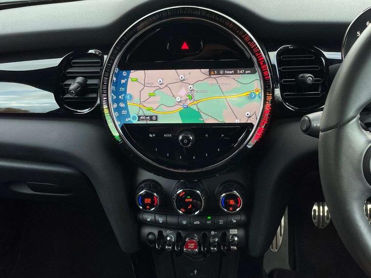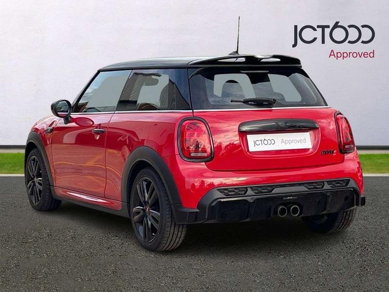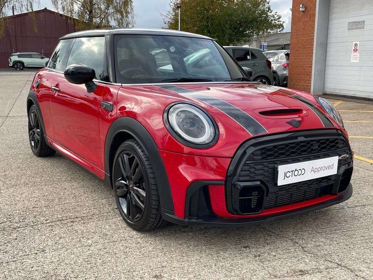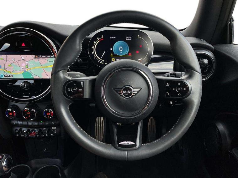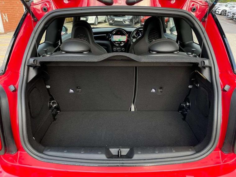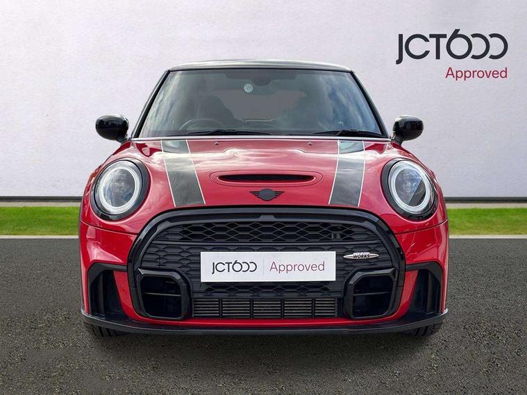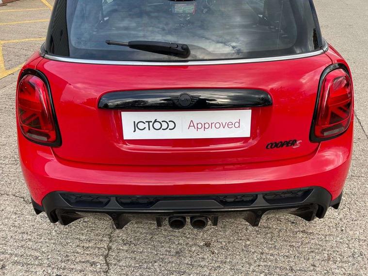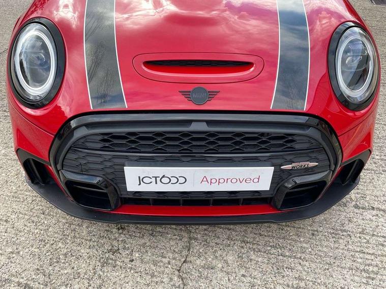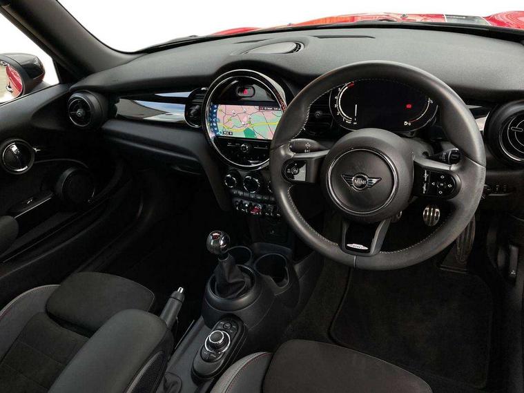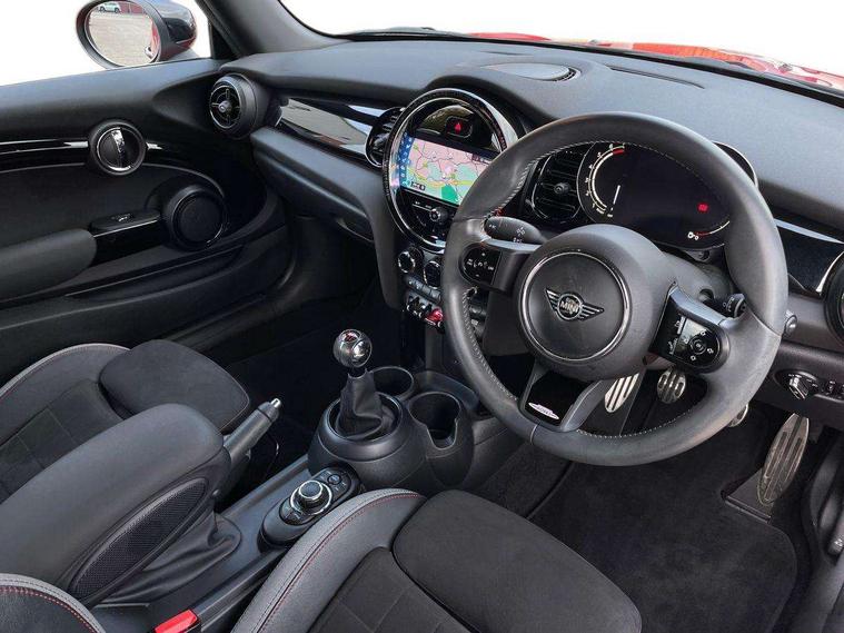 Apple CarPlay, Automatic start/stop function with brake energy recuperation, Compatible mobile phone bluetooth with audio streaming, Cruise control with brake assist, Electro-mechanical speed dependant steering assistance, Flexible car sharing preparation, Instrument cluster, MINI Driving Modes - centre toggle switch to control driving setting (sport, mid and green), Mini E-call, MINI TeleServices, On board computer, Rear park distance control, Service interval indicator, 6 Speed manual transmission including gear change indicator display, Double Vanos system, Fully variable valve control, High precision injection, Intelligent adaptive suspension, Performance Control, 8.8" touchscreen with LED ring, FM tuner and DAB digital radio, 3rd brake light, Automatic headlight activation switch, Bonnet scoop, Dynamic brake lights, Electric front windows, Heated rear window, Heated windscreen washer jets, JCW Aerodynamic kit - Front and rear bumpers with sporty JCW styling and part-painted side sills with MINI John Cooper Works door sill finishers, John Cooper Works rear spoiler, LED headlight with closed ring and daytime driving lights, Metal door sill strips with Cooper S, Model logo Cooper S on right of tailgate, Radiator grille chrome border with honeycomb structure including S Badge, Rain sensor window wipers, Rear fog lights, Rear LED lights with union jack design, Rear window wiper, Side scuttle panel with integrated indicator, Sun/heat protection glass, Two central exhaust tailpipes with chrome finisher, White indicator lenses, 12V Accessory socket in centre console, 2 seat bench in 2nd row, 4 lashing eyes in luggage compartment, 60/40 split folding rear seat, Anthracite headliner including grab handles and clothes hooks, Carbon black colour line - Knee roll and door armrest, Chrome interior highlights, Cupholders, Front and rear isofix with front passenger airbag deactivation, Front floor mats in velour, Glove compartment, Height and length steering column adjustment, Interior lighting with 12 different colours across the dashboard, underneath door bezel with illuminated laser-engraved design on central display, JCW Sport seats with integrated headrests, adjustable thigh support and John Cooper Works logo, Leatherette gearshift lever and handbrake gaiters, LED reading lights, vanity mirror lights, front foot well light and spotlight on front seats, Manual air conditioning, Mechanical seat adjustment - forward/back & backrest for front seats and driver seat height adjust, Multifunction steering wheel, Passenger seat height adjuster, Single front passenger seat, Storage compartments in doors, Storage pocket on back of front seats, Sunvisors with vanity mirrors, Walknappa leather steering wheel with grey seam and John Cooper Works badge on Piano Black lower steering wheel spoke, Piano black exterior pack - Mini Hatchback Cooper S, 3 point seatbelts on all four seats, 6 Airbags - front, side, head and seat belt tensioners, Anti-lock braking system (ABS), DSC - Dynamic Stability Control, Front and rear disc brakes, Two tone horn, Tyre pressure monitoring system, Alarm system with tilt sensor, monitoring doors, bonnet interior and tailgate, Electronic vehicle immobiliser, Start/stop toggle with keyless go, Piano black interior trim, Tool kit,