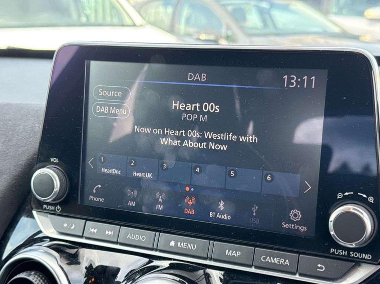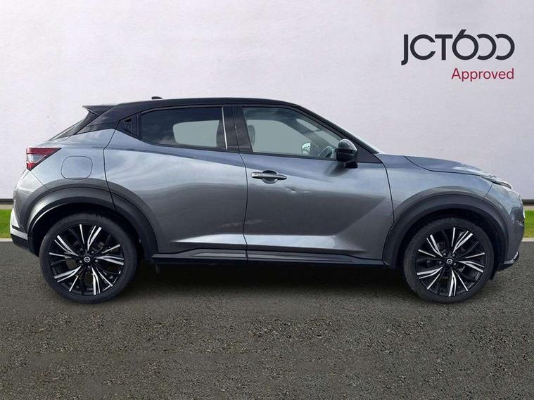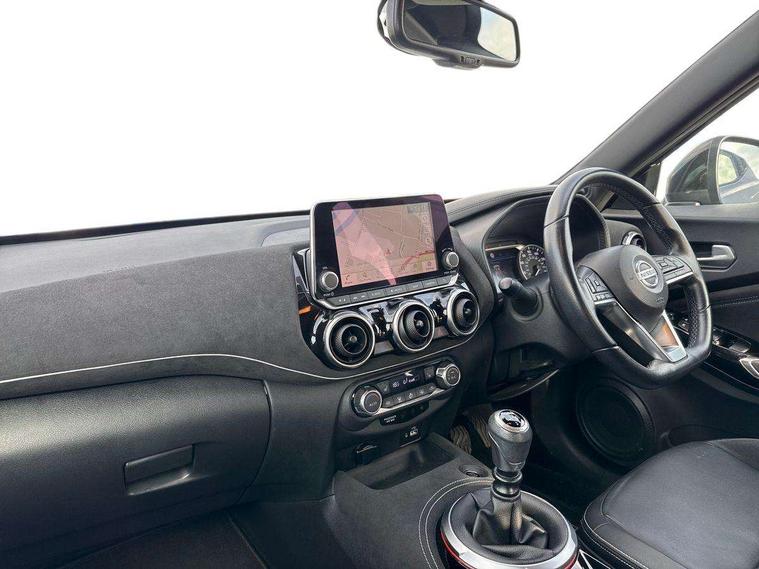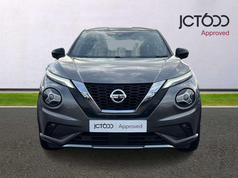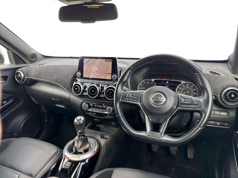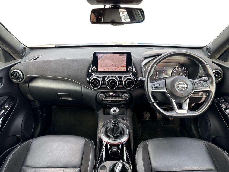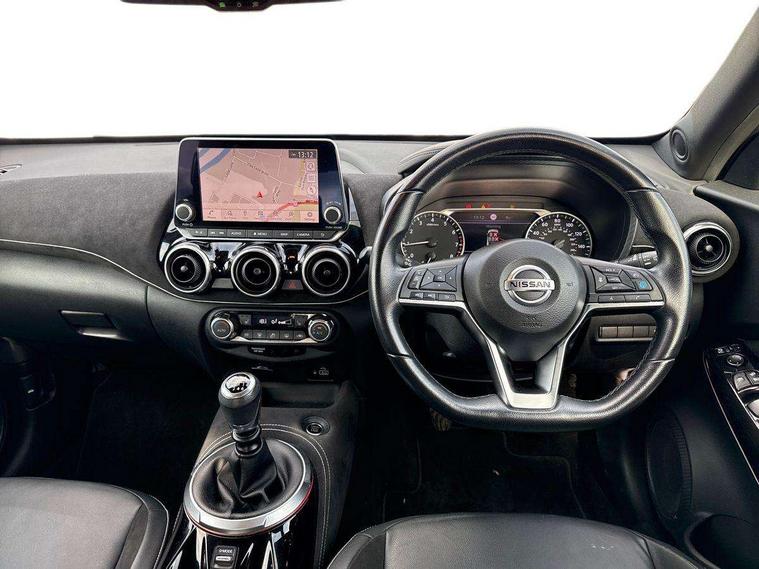 7" full colour TFT screen combimeter, 8" infotainment colour display with touch screen, Apple CarPlay and Google Android auto, Drive modes select (Eco, normal and sport), Emergency and breakdown call, Front parking sensor, Idle start/stop system, Intelligent lane intervention, Lane departure warning system, Nissan connect nav with TomTom traffic, Nissan connect services and Wifi connection, Outside temperature sensor, Power Steering, Rear parking sensor, Traffic sign recognition, Trip computer, Gasoline particulate filter, Bluetooth system, USB, Aux-in and 12V socket, Bose personal plus audio system with 8 speakers(4 speakers and 2 headrest speaker for driver and passenger seats), Bose personal sound stage control, DAB Digital radio, Front lower bumper painted in silver finisher, Rear console USB port, Auto dimming interior rear view mirror, Automatic hazard signal with emergency stop signal, Body colour bumpers, Body colour door handles, Electrically adjustable door mirrors with integrated indicators, Follow me home headlights, Front and rear electric window with one touch driver window, Heated and auto folding door mirrors, High beam assist, LED daytime running lights, LED front fog lights, LED headlamps, LED rear fog lamp, LED rear lamps, Rain sensor windscreen wipers, Rear privacy glass, Rear wiper, Thermaclear heated windscreen, Three blink turn signal, 3 height adjustable rear headrests, 60/40 split folding rear seat, Automatic climate control, Card holder on driver sunvisor, Door ambient lighting, Driver and passenger sliding and reclining seats, Driver seat back pocket, Driver side rear coat hanger, Driver/passenger sunvisors and vanity mirrors, Front and rear cabin lights, Front armrest, Front door pockets with bottle holders, Front head restraints, Front passenger isofix child seat anchorage point, Front/rear passenger grab handles, Gear console ambient circle lighting, Grey synthetic leather kneepad, Heated front seats, Height adjustable driver's seat, Height adjustable passenger seat, Internal chrome door handles, Leather gearshift knob, Leather steering wheel, Luggage board, Luggage space lighting, Monoform sporty seats, Multifunction steering wheel, Passenger seat back pocket, Rear door bottle holders, Telescopic steering wheel adjustment, Two cupholders in front centre console, Two rear isofix child seat anchorage points with top tether, Voice recognition switch on steering wheel, Welcome light and console tray ambient lighting, Advanced safety shield pack - Juke, ABS with EBD and brake assist, Active ride control, Active Trace Control, Driver and passenger airbags, Driver and passenger side airbags, Electric handbrake with auto hold function, Electronic Stability Programme (ESP), Front and rear curtain airbags, Height adjustable seatbelts, Hill start assist, Intelligent emergency braking with pedestrian and cyclist recognition, Seatbelt reminder for driver/front passenger and rear seats, Single tone horn, Three 3 point rear seatbelts, Traction control, Tyre pressure monitoring system, VDC Dynamic Vehicle Control, Ventilated rear brake discs, Alarm, Immobiliser, Intelligent Key with push button starter, Remote central locking, 19" Akari alloy wheels,