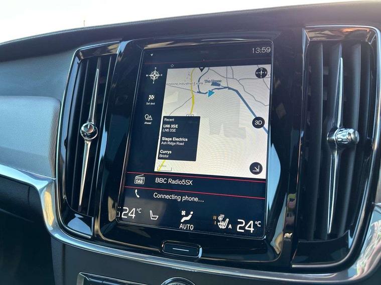 12.3" Active TFT crystal driver's instrument display, 9" centre console touch screen, Adaptive cruise control with pilot assist, Adjustable steering wheel force, Bluetooth Handsfree Phone Connection, Drive mode selector, Lane keep assist with driver alert control, Oncoming Lane Mitigation, Road Edge Detection, Sensus navigation with European mapping and traffic information, Service interval indicator, Speed limiter, Speed sensitive steering, Touch screen display, Trip computer, Voice activated control for key functions, Volvo on call, 8 speed automatic transmission with start/stop + manual change functions, DAB Radio (Digital Audio Broadcasting), Steering wheel mounted audio controls, Active bending headlights with adaptive shadow technology, Adaptive brake lights, Auto dimming exterior mirrors, Auto dimming interior mirror, Automatic headlamp levelling, Body coloured bumpers, Dark tinted windows for rear side windows and cargo area, Dual integrated exhaust pipes with high gloss black surround, Electric adjustable/heated/folding door mirrors, Front and rear electric windows, High gloss black lower front bumper, High gloss black mesh front grille with silk metal surround, High level LED brake light, Home safe and approach lighting, Illuminated side steps, LED front fog lights with static cornering light function, LED Headlights + Active high beam incorporating daytime running lights, Matt silver finish door mirrors, Puddle lights in exterior door handles, Rain sensor windscreen wipers, Roof antenna, Roof spoiler, Silver matt window frame surround, Silver roof rails, Visible VIN plate, 12V socket in front tunnel console, 60/40 split folding rear seat, A-pillar parking ticket holder, Ambient door and instrument panel lighting, B Pillar ventilation, Black headlining, Bright metal luggage threshold, Centre armrest storage illumination, Centre console cupholder, Centre console storage, Drivers side dashboard storage, Extended front seat cushions, Front and rear aluminium tread plates, Front and rear door pockets, Front footwell and side step illumination, Front headrests, Front tunnel storage net, Front/rear reading lights, Gearshift paddles, Grocery bag holder-luggage area, Heated front seats, Height/reach adjustable steering column, Illuminated front and rear tread plates, Illuminated front cupholder, Illuminated glovebox with lock, Illuminated luggage compartment, Illuminated tailgate, Illuminated vanity mirrors + ticket holder, Isofix system on outer rear seats, Load cover, Multi directional lumbar support, Multicolour theatre lights, Perforated leather gearknob, Perforated Leather Key Integrated Remote, Perforated leather steering wheel, Pollen filter, Power driver seat with memory + exterior mirrors memory, Power Folding Rear Seat Backrests and Headrests, Rear armrest with storage + cupholders, Rear footwell and side step illumination, Ski hatch, Sport pedals, Sports floor mats, Underfloor cargo storage, 3x3 point rear seatbelts, Active bonnet, City safety with steering support with Pedestrian + cyclist + large animal detection + front collision warning with full auto brake, Drivers knee airbag, Dual stage driver/passenger airbags, Electronic parking brake with auto hold, Fasten seatbelt reminder, Front and rear curtain airbags, Front seats SIPS airbags, Hill start assist, IC (Inflatable Curtains) - Full Length, Passenger airbag cut-off device, Run off Road Mitigation, Run off Road Protection, Seatbelt pre-tensioners, SIPS (Side Impact Protection System), Stability and Traction Control with Spin control, Engine Drag Control and Corner Traction Control, Tyre pressure monitoring system, Vehicle deceleration control with Anti-lock Brake System, Electronic Brake Distribution and Emergency Brake Assist, Warning triangle and first aid kit, WHIPS whiplash protection system - front, Anti-theft alarm including immobiliser/volume sensor + level sensor, Key integrated remote control central locking + fuel flap with deadlocking system and auto open/close power windows, Keyless Drive (includes Keyless Entry and Keyless Start) with Remote Tag plus Handsfree Tailgate Opening/Closing, Locking wheel nuts, Private locking for tailgate, Tailored Instrument Panel and Door Tops with Contrast Stitching, Tempa spare wheel and jack,