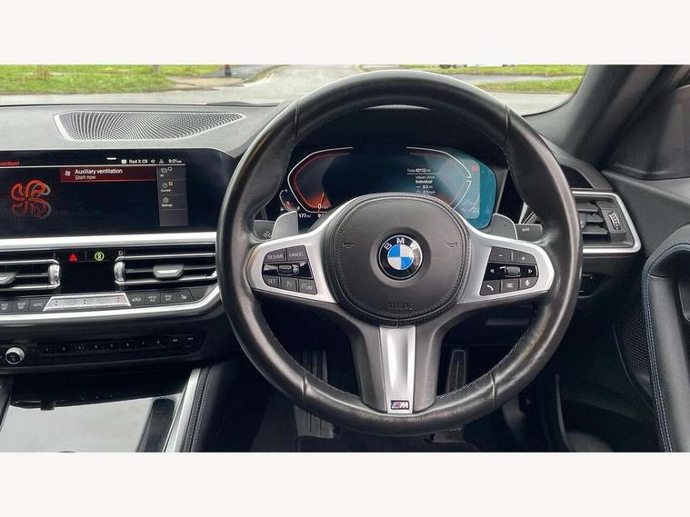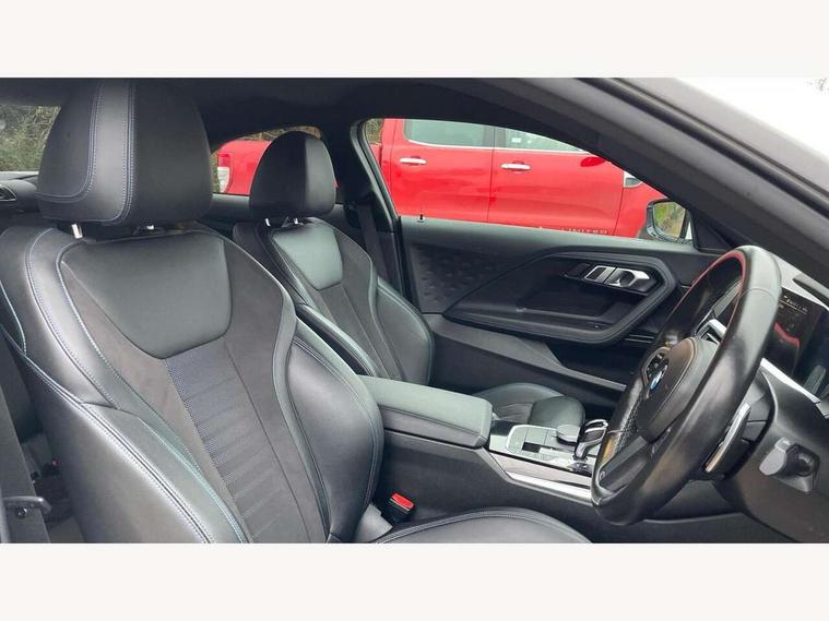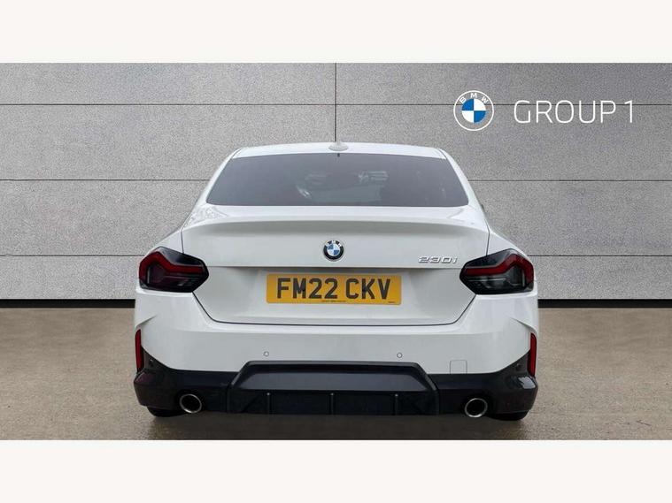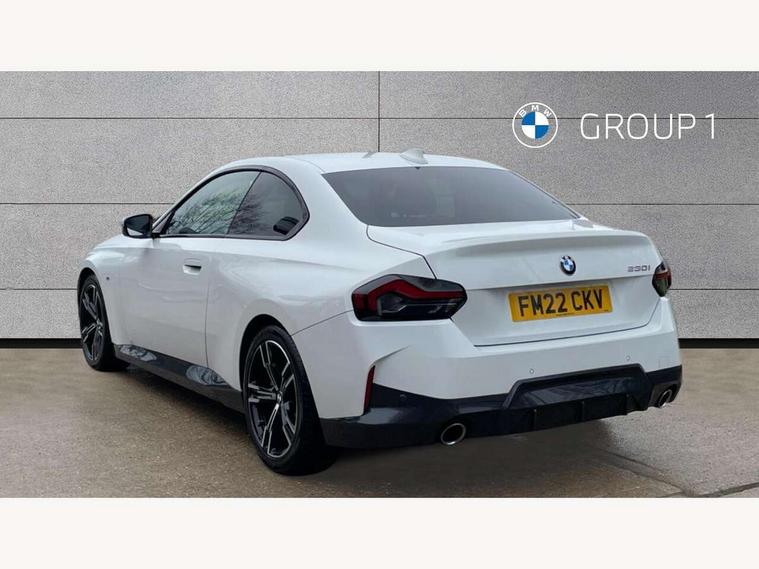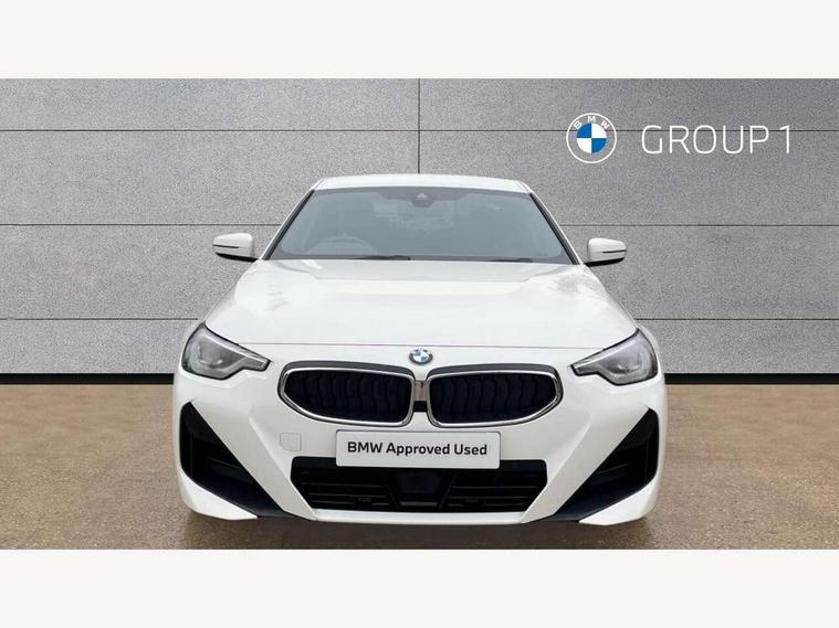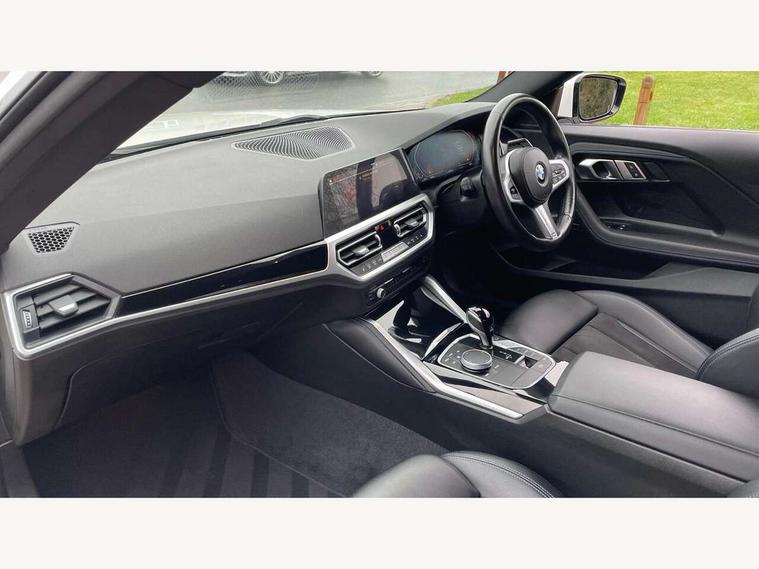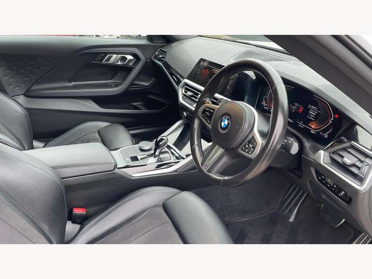 Attentiveness assist, Auto start-stop, Bluetooth, BMW ConnectedDrive online services, BMW Teleservices, Check Control warning system for monitoring of lights and door/luggage compartment open warning, Direct selection buttons, Drive off assistant, Eco pro mode, Electric power steering, Front/rear Parking distance control, iDrive controller with turn and press function, Integrated owners handbook, Intelligent functions, Live cockpit plus with nav function 12.3" instrument cluster and 14.9" centre display, Oil sensor for level and grade, Optimum shift indicator, Personal Profile, Touch operation on control display, Variable sport steering, Widescreen multi-media display, Aluminium lightweight construction, Balancer shaft, BMW TwinPower Turbo four-cylinder petrol engine, Double VANOS, Drive performance control with ECO PRO comfort + sport mode, Electronic differential lock, High precision injection, M sport suspension, Petrol Particulate Filter, Sport automatic steptronic transmission with gearshift paddles, manual gearshift time display, launch control, coasting idle ECO PRO/COMFORT modes, Twin scroll turbocharger with Valvetronic, DAB tuner, Acoustic windscreen wipers for reduced driving noise, Adaptive LED Headlights, Automatic windscreen wipers and automatic headlight, Automatically dimming rear view mirror, Body colour door handles flush with door surface, Body colour door mirrors, Body colour front and rear bumpers, Daytime running lights, Electric windows - front and rear, with open/close fingertip control and trap release, Exhaust tailpipes x2 - 90mm in left and right, Fading support, Front and rear bumper system with replaceable deformation elements, Front door sill finishers in black plastic with BMW designation, Front windscreen wipers with integrated washer jets, Green tinted heat protection glazing, High beam assistant, High gloss shadowline exterior trim in mirror triangle cover, mirror cover panel, mirror bezel and window border, High level third brake light, Indicators integrated int mirror housing, LED registration plate light, LED technology rear tail lights, brake lights and turn indicators, Lightweight engineering, Model designation on right side of tailgate, One piece kidney grille with hight gloss chrome surround, Rear boot, Rear fog lights, Reversing light in rear light cluster, Shark fin antenna, Single part LED rear lights with smoked glass components, Trailer stabilisation logic, Visible VIN plate, 12V power socket in front centre console with blanking plug, 2 cupholders in front centre console, 3 zone automatic air conditioning, Ambient lighting, Compartment in front of cupholder, Conditioned based service, Driver seat backrest width adjustment, Front and rear side armrests integrated into door trim, Front armrest, Front door pockets, Front head restraints, Front sport seats, Heated front seats, Illuminated glove compartment with separate small compartment, M headliner Anthracite, M sport leather steering wheel, Manually adjustment steering wheel column, Rear seat backrest with manual 40:20:40 split folding, Rear seat centre foldable armrest with integrated cup holder, Single front passenger seat, Storage compartment between rear seats, Storage tray and compartment with cover in centre console, Sun visors with vanity mirrors and insert tab, Through loading system with 40/20/40 split folding 2 rear seat in 2nd row, Two folding rear seat headrests, Velour floor mats, Additional storage compartment pack without USB - 2 Series Coupe, Connected pack professional - 2 Series Coupe, Interior and exterior mirror pack - 2 Series Coupe, M Sport exterior styling aerodynamics pack - 2 Series Coupe, 2 tone horn, Anti lock braking system (ABS) with cornering brake control, Automatic Stability Control (ASC), BMW emergency call, Brake drying, Child seat ISOFIX attachment for the two outer rear seats, Crash sensor activating of airbags, Unlocking doors, hazard warning lights, interior light, safety battery terminal, Deactivation of fuel pump in the event of a crash, Driver and front passenger airbags, Driver and front passenger side airbags, integrated in the door side seat backrest bolsters for all seat variants, Dynamic brake control, Dynamic stability control + (DSC+), Dynamic Traction Control - DTC, Electrically operated hand brake including automatic hold function and automatic release when driving off, Front and rear disc brakes, Front passenger airbag deactivation, Head airbags for all 4 outer seats, Manual deactivation of front passenger airbag, Seat belt security check for driver and front passenger, Seatbelt warning, Side impact protection, Three point seat belts on 4 seats including front belt stopper, pyrotechnic belt tensioners and belt force limiters, Tyre pressure sensor, Warning triangle and first aid kit, Alarm system (Thatcham 1) with remote control and electronic engine immobiliser, Central locking switch for all doors, fuel filler cap and luggage compartment, Deadlocking function system to all doors, Drive away locking system on all doors and luggage compartment, Locking wheel bolts, Start/Stop button (illuminated) in centre console with keyless engine start and Auto Start-Stop deactivation button, Two remote control key with integrated key - one button for open and close doors/fuel flap/tailgate and separate button for unlock luggage compartment, BMW mobility tyre sealing system, Electrically powered 12V compressor, Reduced rolling resistance tyres,