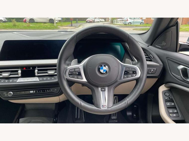 Active guard plus, Attentiveness assist, Auto start-stop, BMW ConnectedDrive online services, BMW Intelligent Personal Assistant, BMW Live Cockpit Professional with 10.25" high resolution instrument and control display, BMW Online services, BMW operating system with 7.0 mid interface, BMW Teleservices, Characteristic map controlled oil pump system, Check Control warning system for monitoring of lights and door/luggage compartment open warning, Cruise control with braking function, iDrive controller with 7 short cut favourite buttons on centre console, Integrated navigation data with map data via USB +features such as 3D landmarks and micro city models, Integrated owners handbook, Intelligent voice assistant, Lane departure warning system, M Sports steering, On board computer - average speed+fuel consumption, service interval, clock/date, odometer/trip meter, outside temperature display and ice warning, Optimum shift indicator, Personal Profile, Pull away assistant, Speed limiting function, 2 balance shafts, 7 speed sport automatic transmission with double clutch technology and sportier application, Aluminium lightweight construction, BMW TwinPower twin-scroll Turbo four-cylinder petrol engine, Double VANOS, Drive performance control with ECO PRO comfort + sport mode, Electronic differential lock, High precision injection, Larger fuel tank capacity (50 litres), M Sport suspension with stiffer spring/damper set-up and vehicle lowered by 10mm + twin tube gasfilled shock absorbers and Anti roll bars, Performance Control, Petrol Particulate Filter, VALVETRONIC engine management, 2x USB Type C ports (for charging and data transfer), 4G LTE Connectivity with hard wied 4G network sim card, DAB digital radio, MP3 players and RDS double tuner, Auto wipers, Automatically dimming rear view mirror, Body colour door handles, Body colour mirror caps, Chrome 'M' logo side designation, Chrome exhaust single tailpipe, round, Direction indicator side lights integrated exterior mirrors, Electric windows - front and rear, with open/close fingertip control and trap release, Exterior mirrors - electrically folding with anti-dazzle, Fading support, Follow me home headlights, Front and rear bumper system with replaceable deformation elements, Front door sill finishers in black plastic with M designation in metallic look, Heated, electrically adjustable exterior mirror aspheric on driver side, convex on passenger side, High gloss black B pillar finish, High gloss shadow line exterior trim, High level third brake light, LED daytime running lights, LED front fog lights, Lightweight engineering, Model designation on right side of tailgate, Preparation for high beam assistant, Rain sensor with automatic headlight activation, Rear boot, Rear fog lights, Rear side wing doors, Reversing light in rear light cluster, Welcome lighting, 12V power socket in centre console, 2 cupholders in front centre console, 3 rear seat head restraints, 3 rear seats, 3 spoke M sports design leather steering wheel finished in nappa leather with specific M badge, Anthracite finished floor mats with contrasting surround, Anthracite headlining, Automatic two zone climate control air conditioning, Child seat ISOFIX attachment for two outer rear seats and front passenger seat with anchorage points, Conditioned based service, Driver and front passenger seat heating, Front and rear door pockets including bottle trays, Front and rear side armrests integrated into door trim, Front armrest foldable with integrated storage compartment, Front centre interior light over interior mirror and rear centre automatic interior light when door is opened/ignition switched off or via remote key, Front head restraints, Front passenger seat, Front sports seats with electric side bolster adjustment, Glove compartment, Glovebox with light, Luggage compartment lighting, Manually adjustment steering wheel column, Multi-function controls for steering wheel, Sun visors with vanity mirrors and insert tab, Through loading system with 40/20/40 split folding rear seat, Two lashing eyes, Additional interior lighting pack - 2 Series Gran Coupe, Connected pack professional - 2 Series Gran Coupe, Extended storage pack - 2 Series Gran Coupe, M Sport exterior styling aerodynamics pack - 2 Series Gran Coupe, 2 tone horn, Airbag - Front driver and passenger, front and rear head, front side, curtain head protection, manual deactivation of front passenger airbag possible, Anti lock braking system (ABS) with cornering brake control, BMW emergency call, Brake drying, Braking readiness, City braking function, Crash sensor activating of airbags, Unlocking doors, hazard warning lights, fuel cut off, interior lighting+activation of safety battery terminal clamp, Dynamic stability control + (DSC+), Dynamic Traction Control - DTC, Electrically operated hand brake, Rear brake discs, Rear child proof door locks, Seat belt security check for driver and front passenger, Seatbelt warning, Side impact protection, Three point seat belts on all seats including front belt stopper, pyrotechnic belt tensioners and belt force limiters, Trailer stability control, Tyre pressure monitoring system, Ventilated front disc brakes, Warning triangle and first aid kit, Central locking switch for all doors, fuel filler cap and luggage compartment, Deadlocking function system to all doors, Drive away locking system on all doors and luggage compartment, Locking wheel bolts, Start/Stop button (illuminated) in centre console with keyless engine start and Auto Start-Stop deactivation button, Thatcham Cat.1 alarm and immobiliser, Two remote control key with integrated key - open/close doors/fuel flap/tailgate +1 button for unlock compartment with M design high gloss black inlay, Contrast stitching on instrument panel, 18" Burnished M double spoke bi-colour alloy wheels finished in orbit grey - style 819M, Reduced rolling resistance tyres,