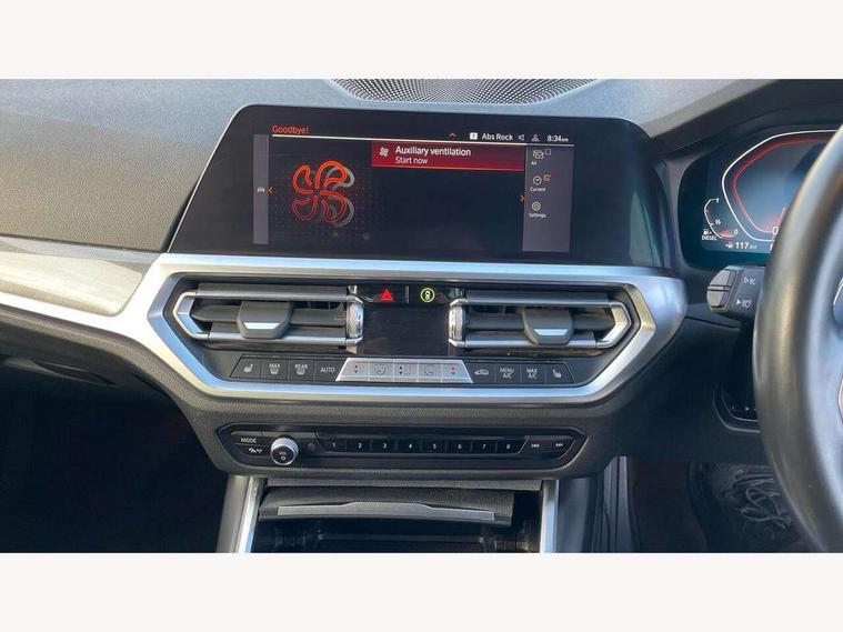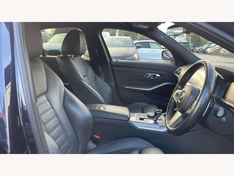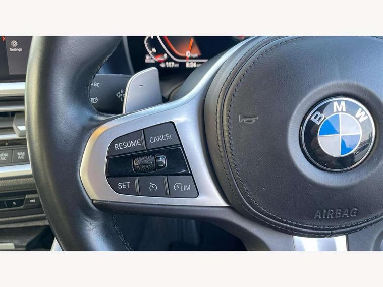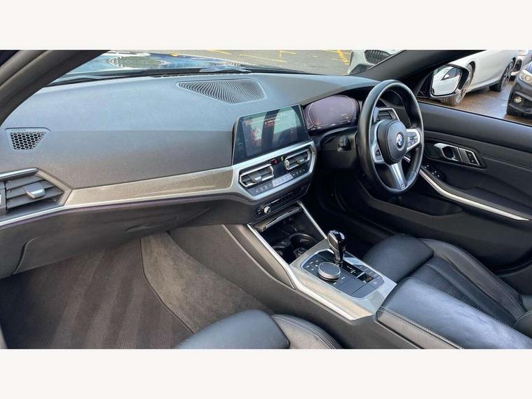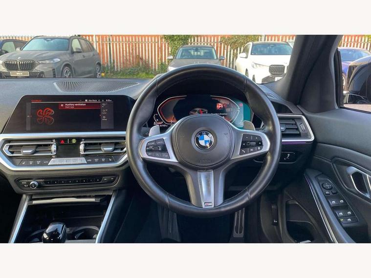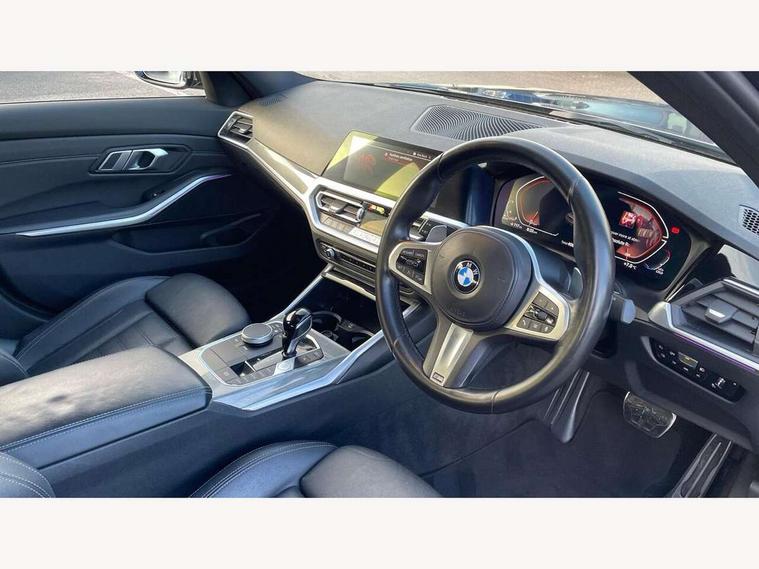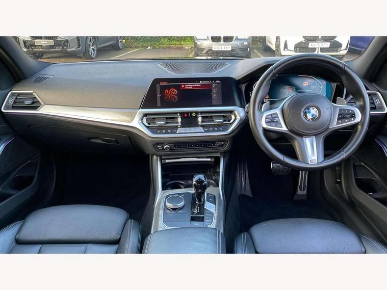 Active guard plus, Attentiveness assist, Bluetooth hands free facility with USB audio interface with audio streaming, BMW iDrive controller on centre console, BMW Live Cockpit Professional Nav with 12.3" instrument display + 10.25" display, Intelligent Voice Assist, BMW OS 7, HDD, 2USB, 4G LTE connect, BMW service history, BMW Teleservices, Brake pad wear indicator in front and rear, Check Control warning system for monitoring of lights and door/luggage compartment open warning, Condition based service, Cruise control with brake function + speed limiter, Electric power steering with Servotronic steering optimised at all speed ranges, Instrument cluster with speedometer with mph readout, tachometer, fuel gauge and oil temperature gauge, Integrated owners handbook, Oil sensor for level and grade, warning by check control system, On board computer - average speed+fuel consumption, service interval, clock/date, odometer/trip meter, outside temperature display and ice warning, Optimum shift indicator, Personal Profile - automatic lock when driving away selectable, Variable sport steering, 48V Mild hybrid technology, Adaptive M suspension, Balanced 50/50 weight distribution, Battery cut-out switch, Diesel particulate filter, Drive performance control - ECO PRO, comfort and sport modes, Incorrect fuelling protection, Larger capacity fuel tank, M Sport differential, Stroke dependent dampers, DAB tuner, Electronic service booklet, Acoustic glazing, Active airstream chrome frame kidney grille with 8 high gloss black vertical slats, Automatic headlight beam throw control with load dependent regulating reaction, dynamic compensation of braking dive and acceleration squat, Black mirror caps, Black roof mouldings, BMW Individual high gloss shadow line with extended contents, BMW individual lights shadow line, BMW Unique paint, Body colour door handles, Body colour front and rear bumpers, Body colour fuel filler flap, Dynamic brake lights, Electric windows - front and rear, with open/close fingertip control, anti-trap facility and comfort closing, Exhaust tailpipe - split left and right, Exterior mirrors - electrically folding with anti-dazzle, Fading support, Front and rear bumper system with replaceable deformation elements, Front black door sill finishers with BMW designation, Green tinted heat protection glazing, High gloss shadow line exterior trim, Interior rear view electrochromatic mirror with automatic anti dazzle function, LED daytime running lights, LED front fog lights, LED third brake light, Lightweight engineering, M designation on front side panels, left and right, M Sport spoiler, Matt black exterior B pillar, Model designation on right side of tailgate, Rain sensor with automatic headlight activation, Rear boot, Rear side wing doors, Shark fin antenna, Sun protection glass, Two part LED tailights in L-shape with components in smoked glass, brake light, LED turn indicator and rear fog light, Visible VIN plate, Welcome lights in interior and door handle area, Windscreen wipers with integrated washing jets, 12V power socket in front storage compartment, 2 front cupholder in centre console with clamping elements and matt black inlay, 3 rear seats with non folding headrests with 3 point seat belts, 3 seat bench in 2nd row, 3 zone automatic air conditioning, 4 pieces lashing eyelets in luggage compartment, 40:20:40 split folding rear seat with loading system, Ambient lighting with welcome carpet light, Anthracite headlining, Armrest integrated in front and rear door trim + front centre console armrest, Backrest width adjustment, Centred top Luggage compartment lights, Four grab handles integrated in roof lining, Front and rear door exit lighting (left / right), Front and rear door pockets, Front and rear reading lights, Front and rear velour floor mats, Front head restraints, Front sport seats, Heated front seats, Height adjustable mechanically and infinitely variable steering column, Illuminated armrest storage compartment, Illuminated glove compartment with separate small compartment, Interior lighting - front centre over interior mirror with soft light, rear centre and front and rear footwell lighting, M sport leather steering wheel, Make-up mirror lights, Rear centre armrest with 2 cupholders, Rear centre console with storage compartment and ventilation grille, Single front passenger seat, Sunvisors with vanity mirrors and ticket pocket, Toolkit located in luggage compartment, Connected pack professional - 3 Series Saloon/Touring, M sport exterior styling pack - 3 Series Saloon/Touring, Parking assistant pack - 3 Series, 2 tone horn, BMW emergency call, Brake energy regeneration, Braking pre-tensioning, Child proof locking system in rear door, Child seat ISOFIX attachment rear outer seats, Coasting in idle in ECO PRO mode, Crash sensor activating of airbags, Unlocking doors, hazard warning lights, interior light, safety battery terminal, Driver and front passenger side airbags, integrated in the door side seat backrest bolsters for all seat variants, Driver/Front Passenger airbags, Dry braking, Dynamic brake control, Dynamic stability control + (DSC+) - Anti-lock Braking System (ABS) with brake assist and cornering brake control + Automatic Stability Control (ASC), Dynamic Traction Control - DTC, Electric parking brake including automatic hold function and automatic release of the parking brake when driving off, Front passenger manual airbag deactivation, Head airbags for all 4 outer seats, Hill start assist, M sport seatbelt, Seat belt security check for driver and front passenger, Side impact protection, Three 3 point seat belts on all seats including front belt stopper, pyrotechnic belt tensioners and belt force limiters, Tyre pressure monitoring with three level warning strategy, Ventilated front and rear disc brakes, Warning triangle and first aid kit, Alarm system (Thatcham 1) with remote control and electronic engine immobiliser, Central locking switch for all doors, fuel filler c