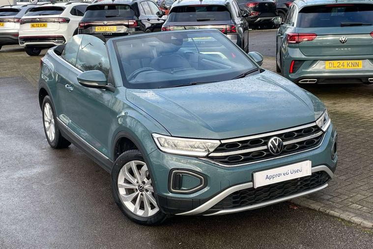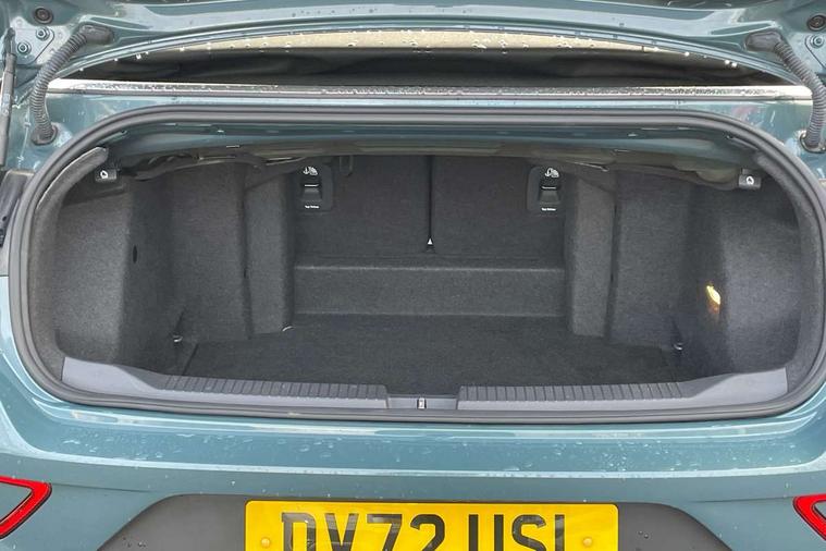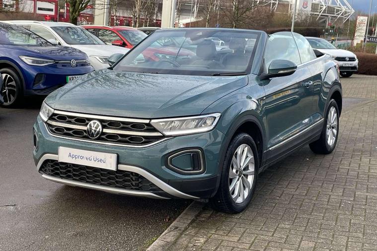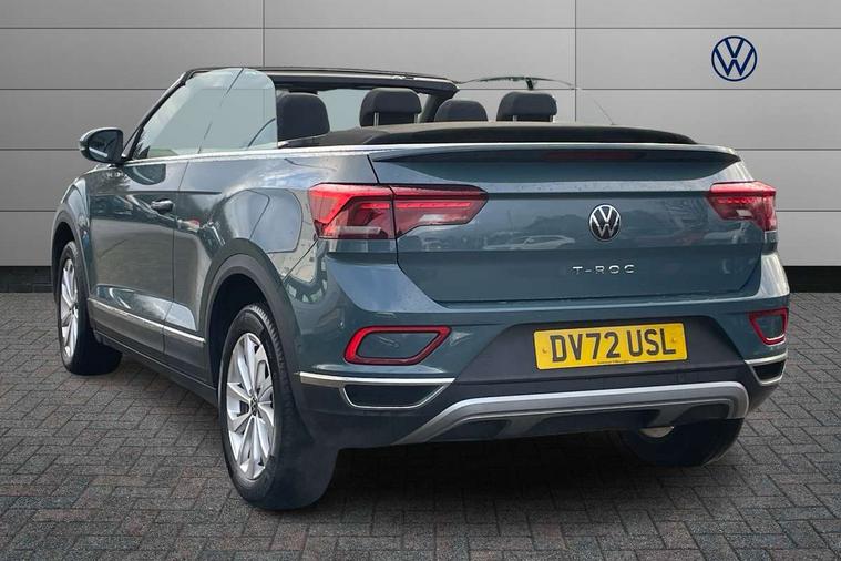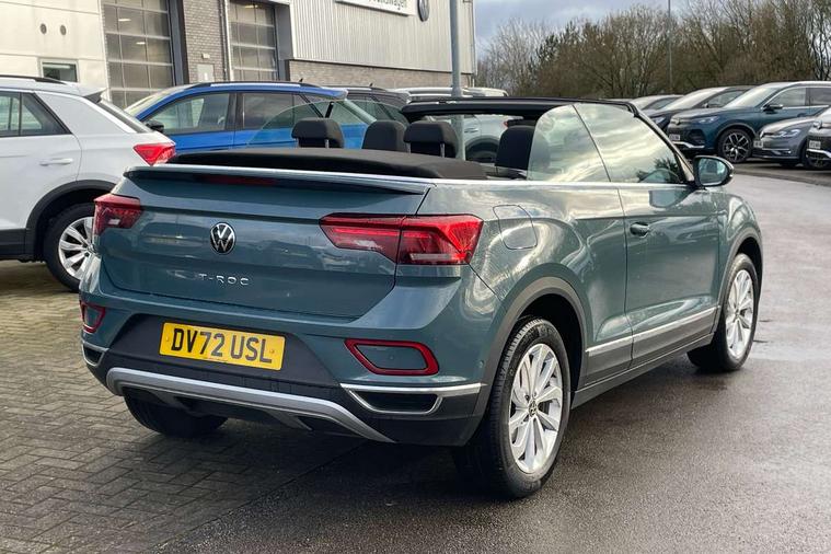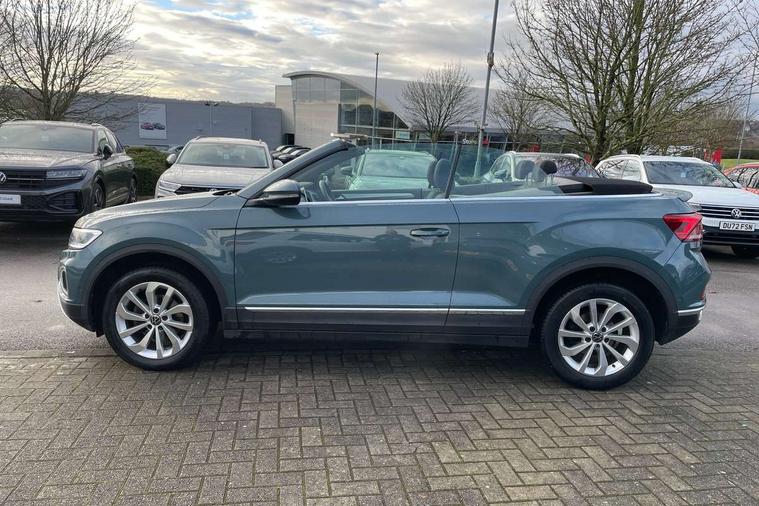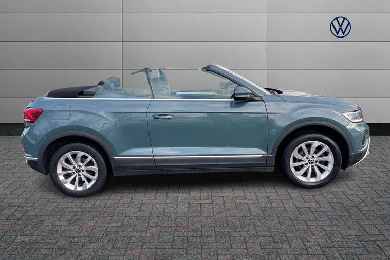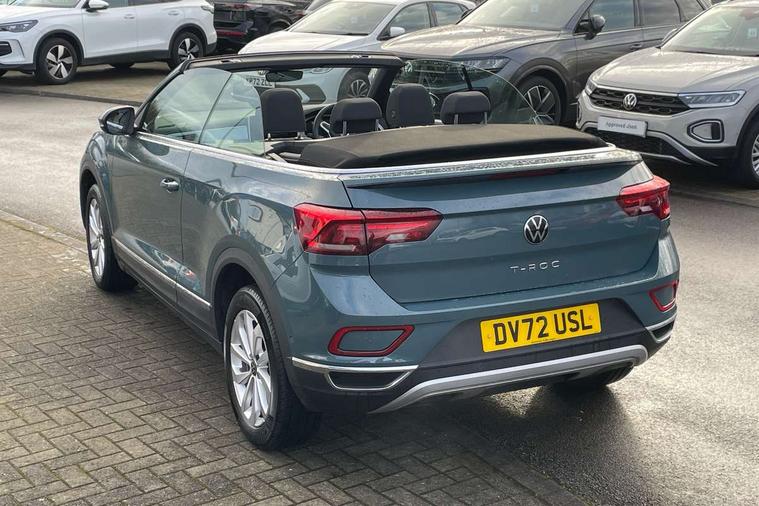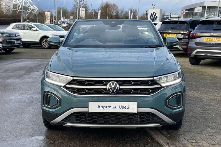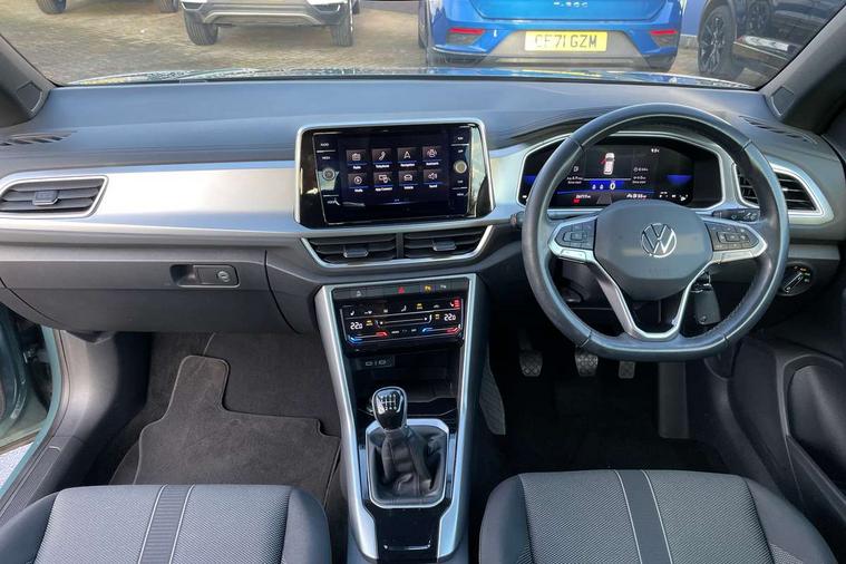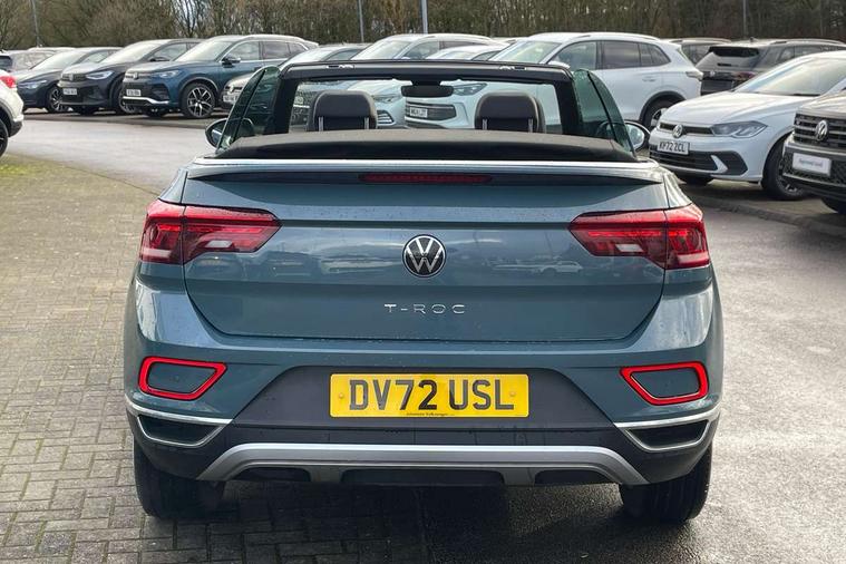 Adaptive cruise control and speed limiter, Bluetooth mobile phone interface, Brake pad wear indicator, Car information display, Driver alert system with fatigue detection, Driver tips and journey analysis, Emergency call service, Modified key software - reduce switch off time for key status change to Long no motion, Multifunction computer with visual gear change recommendation for fuel consumption, Multifunction front facing camera, Park assist including front and rear parking sensors, Speedo and rev counter, electronic odometer, trip, service interval display and exterior temperature gauge, Start/stop system with brake energy recovery, Tailgate/trunk lid release from outside, Warning sound and light for front seatbelts unfastened, Diversity antenna for FM reception, Music playback - MP3, WMA and AAC files, SMS functionality - read, compose and send SMS messages using touch-screen display, Title and cover art display, USB-C Interface and USB charging socket, We Connect and We Connect Plus functionality, Ambient lighting with logo projection, Auto dimming interior rear view mirror, Automatic hazard lights activation under emergency braking, Automatic headlight control with LED separate daytime running lights with coming/leaving home function, Black roof, Body colour door handles, Body colour rear spoiler, Body coloured bumpers and radiator grille with chrome trim and front fog lamps with chrome bezel, Chrome effect left and right trapezoid exhaust tailpipe fascia surround, Dark red rear combination lamps in LED technology, Dusk sensor, Exterior mirrors aspherical on driver side, convex on front passenger side, Headlight range control, Heat insulating glass windscreen, High level 3rd brake light, LED Headlights, LED rear number plate lights, Power operated canvas convertible top, Power windows with comfort operation and circuit breaker, Rain sensor, Rear boot, Rear exhaust tailpipe, Rear fog light on one side and reversing lights on both sides, Remote electrically foldable door mirrors, puddle lights and reverse activated passenger door mirror, Volkswagen roundel, Windscreen wiper with intermittent wipe light, Without exterior ambient lighting, 12V socket in centre console storage area, 2 LED front reading lights, 2 seat bench in 2nd row, 50:50 Split folding rear seat backrests with fixed rear seat bench, Air care climatronic air conditoning system with active combination filter and 2-zone temperature control, Black door lower parts with chrome trim, Chrome plated surround to light, mirror and window switch, Door and side trim panel with leatherette insert, Easy entry backrest release, Front and rear carpet mats with black stitching, Front centre armrest, Front cupholders x 2, Front door pockets, Front seat back storage pockets, Heated multi function steering wheel, Height/reach adjust steering wheel, Instrument lighting, white adjustable panel illumination, Interior light delay, Interior light in footwell, Interior lighting with switch off delay and contact switches on all doors, Interior white ambient lighting and surround lighting, Isofix child seat preparation, Lockable glove compartment with light, Luggage compartment lighting, Rear head restraints, Single front passenger seat, Sun visors with illuminated vanity mirrors, Driver assistance pack without proactive passenger protection - T-Roc cabriolet, 2 x 3-point seatbelts/outer rear seats with ECE label, Driver and front passenger airbag with front passenger airbag deactivation, Driver and front passenger safety-optimised head restraints, Drivers seatbelt reminder, Electronic parking brake, Electronic Stability Control (ESC) including ABS, ASR and EDL, Front and rear disc brakes, Front assist with autonomous emergency braking, Pedestrian monitoring, Predictive pedestrian protection, Rigid safety cell with front and rear crumple zones, Side airbag/thorax airbag system, for front passengers, Single tone horn, Three point height adjust front seatbelts + pretensioners, Tyre pressure loss indicator, Volkswagen roadside assistance, Anti-theft alarm system with interior protection and central locking system with SAFELOCK, radio remote control and 2 remote control folding keys, Electronic engine immobiliser, Trims for alloy wheels,