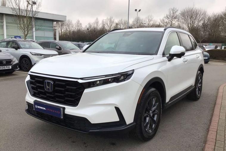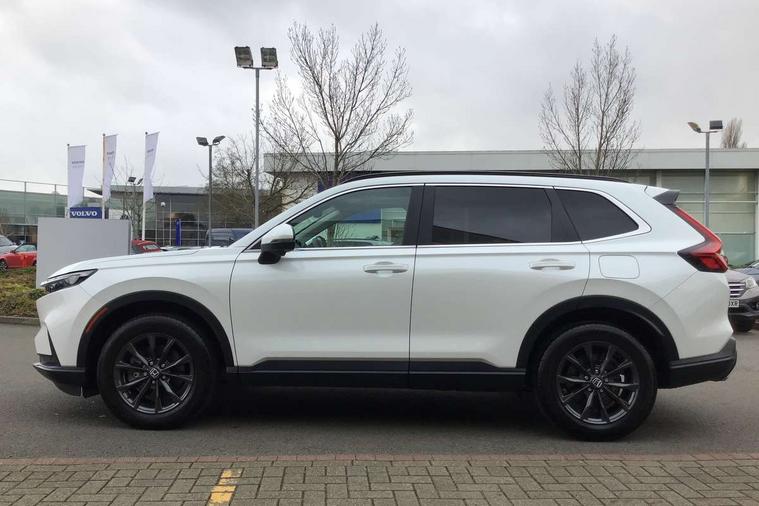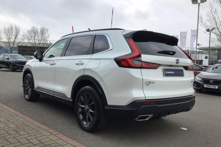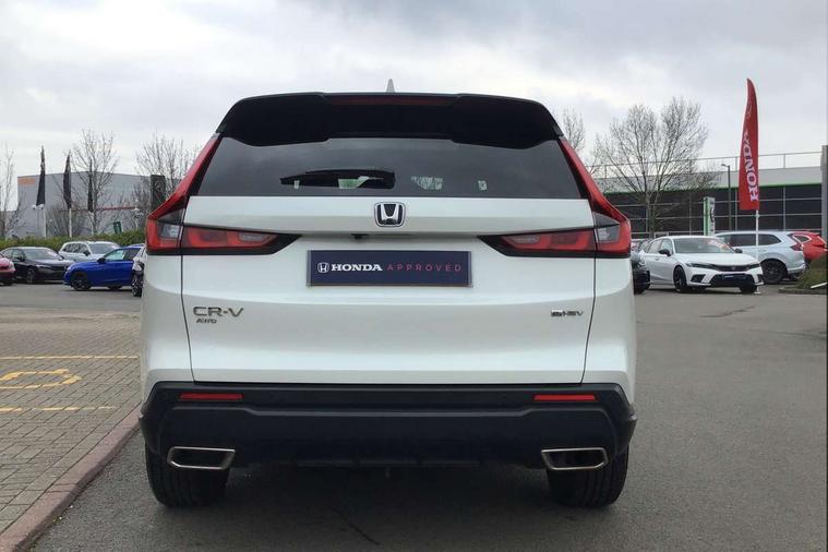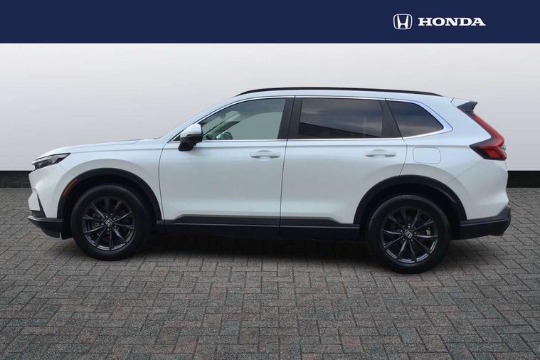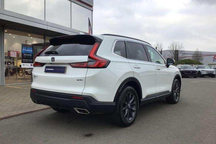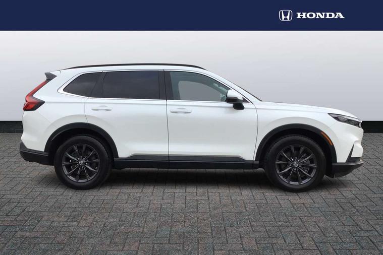 10.2" Multi information display, 4 x front and 4 x rear parking sensors, Active lane change assist, Adaptive cruise control with Cornering speed assist, Adjustable speed limiter, Agile handling assist, BLIS (Blind Spot Information System) with Cross Traffic Monitor, Bluetooth hands free telephone connection, Crossing traffic warning front, Drive mode (Econ, Normal, Snow, Sport), Driver attention monitoring system, E-call, eCall emergency call system, Electric power steering, Emergency stop signalling system, Forward collision warning, Handfree power tailgate with kick sensor and walk away close, HEV mode, Honda 360 sensing, Honda CONNECT with Navigation 9" touchscreen, AM/FM/DAB, Apple Carplay and Android Auto, live traffic info, Intelligent speed limiter, Lane change collision mitigation, Lane departure warning system, Lane keep assist system, Lane watch, Lead car departure notification system, Low speed following, Power meter, Rear view camera, Road departure mitigation, Traffic jam assist, Traffic sign recognition, Wireless apple carplay, Wireless charging, Amplitude reactive damper, Vehicle stability assist, 1X USB (A/2.5A) and 1x Charger (C/3A) on Front, 8 Speakers, DAB+ radio, Dashboard centre speaker, Front tweeters, Premium audio speakers, Rear USB 2x Charger (C/3A), Steering wheel mounted controls, Auto dimming rear view mirror, Auto headlights, Auto wipers, Body colour bumpers, Body colour door handles, Body colour plus material colour roof spoiler, Body coloured shark fin antenna, Chrome + black paint grille, Electrically adjustable and heated door mirrors, Electrically folding door mirrors, Exhaust pipe finisher, Exterior mirror tilt for reverse, Front and rear electric windows, Front LED Indicator lights, Front turn type led with sequential, Headlight auto on/off timer, High beam assist, LED 3rd brake light, LED daytime running lights, LED front fog lights, LED Headlights, LED rear lights, Low gloss black window garnish, Panoramic opening glass sunroof, Privacy glass, Rain sensor, Rear side wing doors, Rear wiper, Roof rails, Trailer stability assist, Welcome home function, 3 seat bench in 2nd row, 4 way driver lumbar support, 4 way electrically adjustable passenger seat without height adjust, 60/40 split folding rear seat, 8 way electrically adjustable drivers seat, Accessory sockets in Front & Trunk, Air conditioning - Rear vent, Ambient light in roof, Cargo net hooks, Courtesy lights, Driver and front passenger seat armrests, Driver/passenger front seatback pockets, Driver/passenger sunvisors and vanity mirrors, Driver/passenger sunvisors with illuminated vanity mirrors, Dual zone automatic climate control, Film hairline interior panels, Footwell ambient interior light front and rear, Front and rear ambient light (door handle&door line) and front cup holder, Front centre armrest, Front map lights, Genuine leather steering wheel, Heated front seats, Heated steering wheel, Hybrid emblem, I-Size ISO Fix Points, Instrument panel with garnish wood film, Leather upholstery, Light roof lining, Luggage floor box, Meter illumination, Normal pedals, Platinum chrome interior door handles, Rear centre armrest, Rear headrests, Rear reading lights, Reclining rear seats, Single front passenger seat, Sunglasses holder, Synthetic headrest, Tilt/telescopic adjustable steering wheel, Tonneau cover, Trunk light, Exclusive styling pack - CR-V, 5 x 3 point seatbelts, ABS/EBD, Anti-whiplash front headrests, Brake assist function, Collision mitigation braking system, Deflation detection system, Driver airbag, Driver SRS airbag (single stage inflation), Electronic parking brake with auto hold, Front and rear collision mitigation throttle control, Front and rear curtain airbags, Front and rear seat belts with emergency locking retractor (ELR), Front centre airbag, Front passenger airbag, Front side airbags, Hill descent control, Hill start assist, Knee airbags (DR) and (AS), Low speed brake system, Manual child lock in rear doors, Paddle deceleration control, Passenger SRS airbag with cut off switch, Rear side airbags, Honda super locks, Immobiliser, Mirrors and windows key fob operation, Remote central locking with 2 key fobs, Security alarm, Selectable door unlock, Smart entry + Smart start, Tilt sensors, Ultrasonic security sensor, Flat tyre solution temper tyre/repair kit,