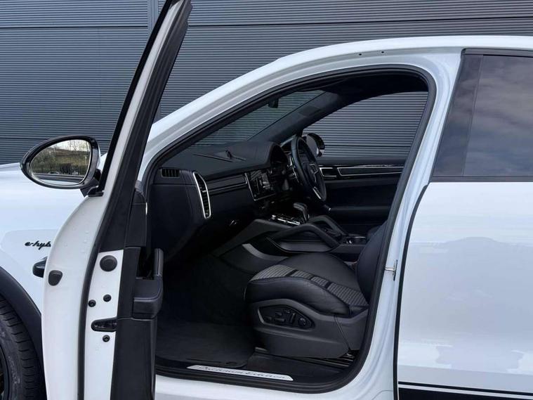 Android Auto, Apple car play, Auto start/stop function and coasting, Brake pad wear indicator, Central analogue rev counter with black dial face, power meter and pointers in acid green, Driver personalisation for climate, audio and communication, assistance systems and other customisable car systems, E-call, Energy recuperating braking system, Head up Display, High resolution 12.3-inch touchscreen display in full HD resolution, Individual mode for individual selection of vehicle drive settings, Instrument cluster with two high-resolution displays, Mobile phone preparation with Bluetooth interface for telephone and music, Porsche Communication Management (PCM) including online navigation module, mobile phone preparation, audio interfaces and voice control system, Power steering plus, Power tailgate, Vehicle electrical system recuperation, Warn and brake assist including pedestrian protection, 75 litre fuel tank, 8 Speed Tiptronic S hybrid transmission, Aluminium cylinder heads and engine block, Charge port, Direct fuel injection (DFI) with central injector position, Front and rear aluminium multi link axles, Gasoline particulate filter, Lightweight battery, Panoramic roof with fixed glass panel, Power electronics, battery manager and electrically powered auxiliary units, Sport mode, Supply cable for blue industrial electrical socket (240V, 32A, 1ph), Supply cable for domestic electrical socket (13A, 3 pin), Turbocharger, VarioCam Plus, Water cooled with thermal management, AM radio, Digital radio, Two USB charge ports in rear compartment, Two USB charging and connectivity ports in the front centre console storage compartment, Active air intake flaps, Air intake slats with inlays in satin platinum, Automatic dimming interior rear view mirror, Automatic headlight activation including welcome home functionality, Bumper system with high strength cross members and two deformation elements + Two receptacles with screw threads towing lug + onboard tool kit, E-Hybrid logo on front wings with acid green border, Electric windows + anti trap protection + one touch open/close drivers side, Electrically adjustable, folding , heated and automatically dimming exterior mirrors, aspherical on drivers side including courtesy lights, Extensive aerodynamic underbody protection, Four point signature LED daytime running lights, Front end with integrated air intakes and airblades for the side air intakes, Front light modules including position lights and direction indicators in LED light guide technology, Front windscreen wipers with two speeds, intermittent wipe and rain sensor, Fully galvanised steel / aluminium hybrid lightweight bodyshell and Aluminium bonnet, tailgate, doors, side panels, roof and front wings, Heated rear window with automatic switch off, Heated windscreen, LED High level third brake light integrated into roof spoiler, Porsche active aerodynamics (PAA) with adaptive roof spoiler, Porsche lettering integrated into rear taillight strip in satin platinum, Preparation for the roof transport system, Rear side wing doors, Rear window wiper with intermittent function and washer jet, Satin platinum model designation on tailgate with acid green surround, 2 seat bench in 2nd row, Ambient lighting, App-controlled remote parking pre-climatisation, B-pillar clothes hooks on driver and passenger's side, Charge air cooling, Double sun visors for driver and front passenger, Driver/passenger sunvisors and vanity mirrors, Elevated centre console with handles, Front and rear bottle holders in door panels, Front head restraints, Height adjustable rear headrests, Isofix fastening system for child seats on outer rear seats, LED interior light with switchoff delay function, footwell + glove compartment light, ashtray + ignition lock illumination, front + rear reading light, Manual height adjust for driver and front passenger seat belt, Particle/pollen filter with active carbon filter, Rear seat split folding design 40:20:40, Fold out centre armrest with integrated cup holder, manual fore/after adjust and backrest angle adjust, Rigid integrated and removable parcel shelf, Sideskirts in black plastic, Single front passenger seat, Storage compartments - Cooled glove compartment, front centre console, door and map pockets on front seat backrests + side luggage compartment, Three 12V power sockets - front below the glove compartment, centre console and at side of luggage compartment, Two integrated cup holders in front and rear with variable diameter, 3 point automatic seatbelts with front and outer rear seats pretensioners and front force limiter, 4 piston aluminium monobloc fixed caliper brakes at rear and internally vented brake discs, 6-piston aluminium monobloc fixed caliper brakes at front, internally vented brake discs, Active bonnet, Auto hold function, Brake discs with diameter 360 mm at front, 358 mm at rear, Curtain airbags along roof frame and side glazing from the A-pillar to the C-pillar, Distance warning, Electronic parking brake, Front passenger airbag deactivation function for front seat mounting of child seat, Front side airbags integrated into seat, Full size driver and front passenger airbags, Knee driver and passenger airbags, Manual child lock in rear doors, Mounting points on passenger seat for ISOFIX child seat mounting system, Multi-Collision braking, Porsche hill control (PHC), PTM Porsche Traction Management active all-wheel drive with an electronically variable, map-controlled multi-plate clutch, ABD and anti-slip regulation, Rollover detection for activation of curtain airbags and seat belt pretensioners, Seat belt warning system for driver and front passenger and rear seat system, Side impact protection in doors, Tyre pressure monitoring system, Vehicle stability system, Porsche stability management (PSM) including ABS, ASR, ABD, MSR and trailer stability management, Alarm system with ultrasonic interior sensor and two stage locking, Engine immobiliser with key transponder, Keyless entry