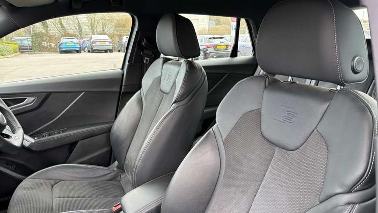Audi drive select, Audi smartphone interface, Automatic start/stop system with recuperation, Bluetooth interface includes bluetooth audio streaming, Cruise control, Driver's information system - 3.5" colour display, Instrument dials with S logo, MMI SD card integrated nav with 3D map display, dynamic route guidance with TMC, MMI search, natural voice recognition and myAudi special destinations, Power operated tailgate, Progressive steering, Service interval indicator, S sports suspension with lowered by 20mm, 2 x SDXC card reader, Audi music interface - apple iPod, apple iPhone, USB storage media, compatible MP3 players, 2 x USB charging points and 1 x Aux-in, CD Drive, DAB digital radio and AM/FM radio, MMI radio plus with 7" colour MMI screen and MMI controller, Black window trims, Electrically adjustable and heated door mirrors with integrated LED side indicators, Front and rear electric windows, Front windscreen with grey tinted sunband, Headlight washers, Interior mirror, LED headlights with LED rear lights + dynamic rear indicators, LED indicator lights, Manual folding door mirrors, Rain and light sensors, Rear wiper, S design body styling - underbody protection, SQ2 - front bumper with S design inlets, rear diffuser in silver and roof spoiler, S design radiator grille with horizontal struts and SQ2 logo, S specific dual branch tailpipes on left and right in chrome finish, 3 spoke flat bottomed high multi-function leather sport steering wheel with gearshift paddles, 60/40 split folding rear seat bench, Black cloth headlining, Dual zone electronic climate control, Floor mats with contrast stitching, Front centre armrest, Front headrests, Front sport seats with S embossed logo, Height/reach adjust steering wheel, Illuminated door sill trims with S logo, ISOFIX child seat mounting for front passenger with airbag deactivation and outer rear seat including top tether attachment point for outer rear seats, Manual seat adjustment including seat height adjustment for front seats, Stainless steel pedals, Storage compartments - Glovebox, cupholder compartment in centre console, storage compartment in rear centre console, front and rear door pockets, Three rear headrests, Extended interior upholstery pack - Q2, Non smoking pack - Q2, 3x3 point rear seatbelts, 6 airbags - Front, curtain and front side airbags, Electromechanical parking brake, Electronic stabilisation control including ABS, ASR and EDL, Extended and proactive pedestrian protection, Hill hold assist, Multi collision brake assist, Pre-sense front with pedestrian recognition, S model enhanced braking system, Seatbelt monitoring, Tyre pressure warning light, Warning triangle and first aid kit, Anti theft alarm, Anti theft wheel bolts, Central locking system with remote control key, Electronically operated child locks, Aluminium interior element,