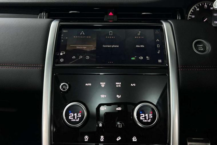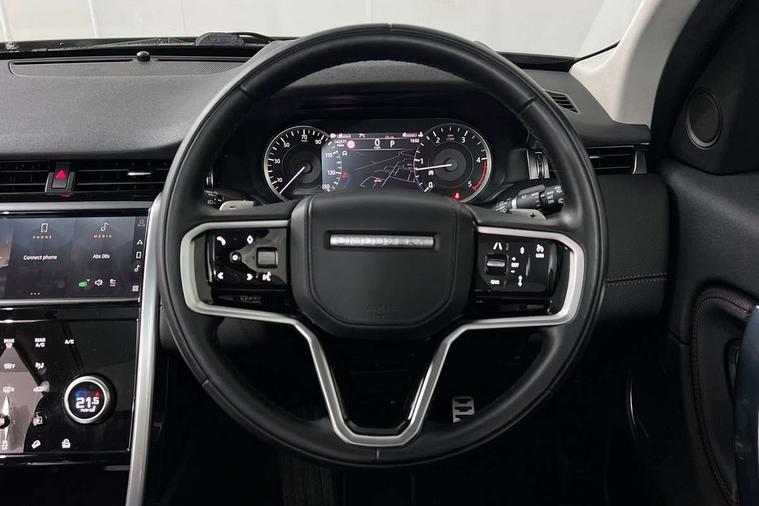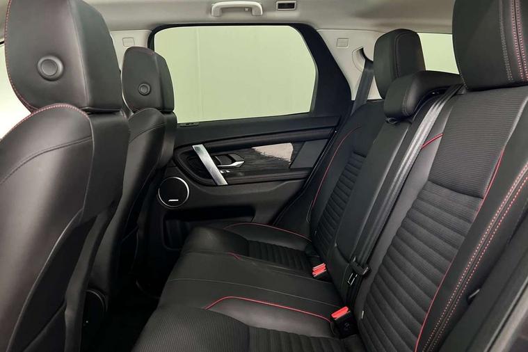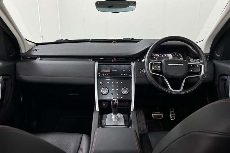 10" touch screen, Adaptive cruise control, Android Auto, Apple CarPlay, Blind spot assist, Clear exit monitor, Driver condition monitor, eCall emergency call system, Front and rear parking aid, InControl remote premium, Lane keep assist, Locking fuel flap, PAS, Pivi Pro connected navigation system with upgraded Infotainment, Powered tailgate/boot lid, Push button start, Rear collision monitor, Rear traffic monitor, Service interval indicator, Traffic sign recognition with adaptive speed limiter, Trip computer, Wade Sensing, All terrain progress control, Coil suspension system, Diesel particulate filter, Dynamic stability control, Terrain Response 2, Bluetooth connectivity including audio streaming, Digital Audio Broadcast radio-DAB, Steering wheel mounted audio controls, 3rd brake light, Automatic headlight levelling, Automatic headlights, Electric front/rear windows, Electric heated/power fold door mirrors with approach lights and auto dimming driver side, Fixed panoramic sunroof with powered sunblind, Front and rear recovery eyes, Heated rear window, Heated windscreen including heated washer jets, No badges, Privacy glass, R Dynamic badge, Rain sensing windscreen wipers, Rear fog lights, Rear side wing doors, Rear wing door, Rear wiper, 5 seats, Bright metal pedals, Centre console with armrest, Footwell lights, Front and rear grab handles, Front passenger isofix child seat attachment, Loadspace cover, Loadspace light, Overhead lighting console, Overhead stowage for sunglasses, Rear headrests, Satin chrome gearshift paddles, Sunvisors with illuminated vanity mirrors, Tilt/reach adjustable steering wheel, Black exterior pack - Discovery sport R-Dynamic SE/HSE, Online pack with data plan - Discovery, 3 point seatbelts on all seats, ABS, Brake hold function, Child locks on rear doors, Collision mitigation braking system, Cornering brake control (CBC), Driver/Front Passenger airbags, Drivers knee airbag, Electronic brake force distribution, Electronic parking brake, Emergency brake assist, ESP + traction control, Hill descent control, Hill launch assist, Pedestrian airbag system, Rear seat ISOFIX, Roll stability control, Side and curtain airbags for front and 2nd row seats, Trailer stability control, Tyre pressure monitoring system, Battery Back Up System (BBUS) with tilt sensor, Global lock and unlock switch on driver door, Intrusion sensor, Keyless entry, Locking wheel nuts, Centre stack rails in noble chrome,