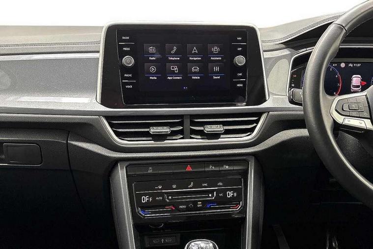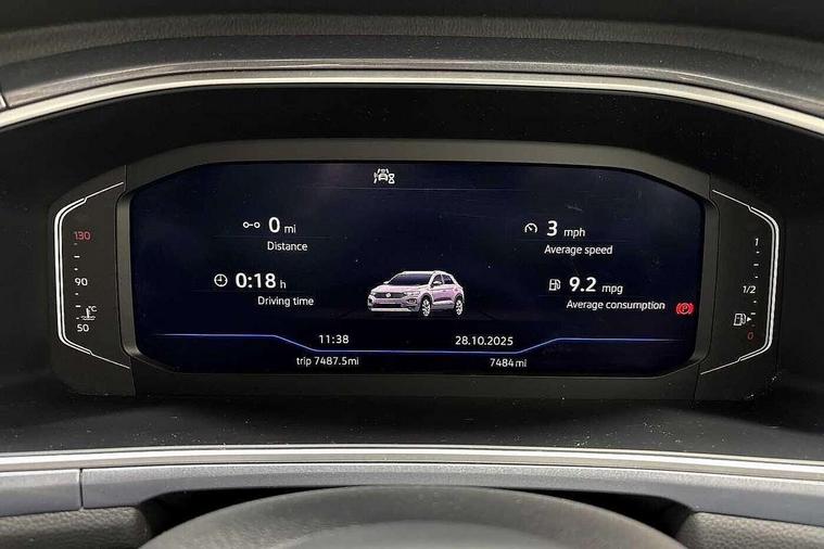 10.25" Digital cockpit pro, Advanced driver attention and drowsiness monitor, Emergency call service, Lane keeping system Lane Assist, Mobile phone interface, Modified key software - reduce switch off time for key status change to Long no motion, Online services, Park assist including front and rear parking sensors, Power assisted speed sensitive steering, Service interval indicator, Tailgate/trunk lid release from outside, Think blue trainer driver tips and journey analysis, Warning sound and light for front seatbelts unfastened, Wireless app connect, Wireless Smartphone charger, Battery regeneration during braking, Start/stop function with battery regeneration, DAB Digital radio, Diversity antenna for FM reception, Front and rear 6 speakers, Music playback - MP3, WMA and AAC files, Premium USB cable in choice of either Apple or Android smartphone compatibility, SD card slot, Simultaneous pairing of 2 compatible mobile devices, Title and cover art display, We Connect and We Connect Plus functionality, Auto dimming interior rear view mirror, Automatic hazard lights activation under emergency braking, Automatic headlight control with LED separate daytime running lights with coming/leaving home function, Body colour sports bumpers with silver metallic underbody fascia, Dynamic headlight range control with self adjusting whilst driving, Electrically adjustable and heated door mirrors, Extended roof spoiler, Exterior mirrors aspherical on driver side, convex on front passenger side, External USB type C socket and charging sockets, Front windscreen wiper with intermittent wipe and 4 position delay, Heated rear window, LED 3rd brake light, LED rear combination lamps, LED rear number plate lights, Light mode for poor weather, rain, fog or snow, Power windows with comfort operation and circuit breaker, Rain sensor, Rear exhaust tailpipe, Rear fog light on one side and reversing lights on both sides, Rear side wing doors, Rear wash/wipe with intermittent wipe setting, Remote electrically foldable door mirrors, puddle lights and reverse activated passenger's door mirror, 12V power socket in centre console, 3 rear head restraints, 3 seat bench in 2nd row, 4 load lashing points in luggage compartment, Air care climatronic air conditoning system with active combination filter and 2-zone temperature control, Chrome plated radiator grille inserts, air vent surrounds and light switch surrounds, Door and side trim panel with leatherette insert, Drawer under drivers seat, Front + rear carpet mats, Front centre armrest, Front comfort sports seats, Front cupholders x 2, Front footwell illumination, Front seat back storage pockets, Glove compartment door with light, Instrument lighting, white adjustable panel illumination, Interior ambient lighting and surround lighting, Interior light delay, Isofix child seat preparation, Leather gearshift handle, LED interior light with switch off delay/dimmer and 2 front/rear LED reading lights, Load-through provision with cup holder when folded down ('Unsplit rear seat bench, split folding backrest, with centre armrest), Luggage compartment lighting, Non-folding front passenger seat backrest, Single front passenger seat, Storage compartment in left and right luggage area, Storage compartment in rear doors, Storage compartments in driver and front passenger doors, Sunvisors with illuminated vanity mirrors, Variable boot floor, height adjustable and removable, Driver assistance pack without proactive passenger protection - T-Roc, 3 point height adj front seatbelts + pretensioners, 3 point seatbelts in outer rear with ECE label, ABS, Child locks on rear doors, City emergency braking and pedestrian monitoring, Driver and front passenger airbag with front passenger airbag deactivation, Driver and front passenger safety-optimised head restraints, Drivers seatbelt reminder, Electronic parking brake, Electronic Stability Control (ESC) inc EDL (Electronic Differential Lock) and ASR (Traction Control), Front and rear passengers curtain airbag system including front side airbags, Predictive pedestrian protection, Rear disc brakes, Two tone horn, Tyre pressure loss indicator, Volkswagen roadside assistance, Trims for alloy wheels,