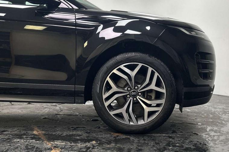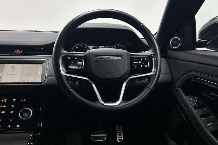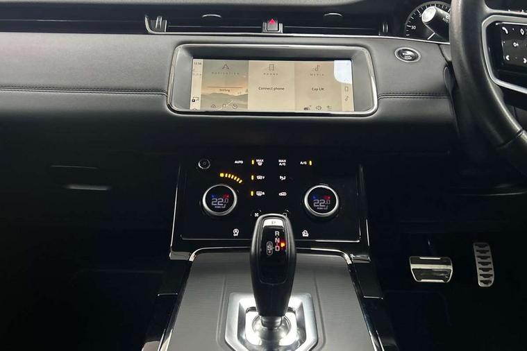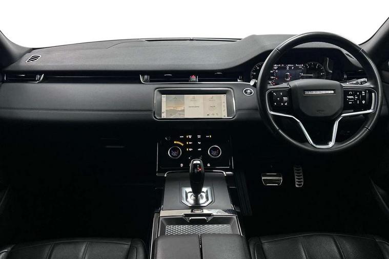 Adaptive cruise control, Android Auto, Apple car play, Blind spot assist, Bluetooth connectivity, Brake pad wear indicator warning light, Driver condition monitor, eCall emergency system, Electronic power assisted steering (EPAS), Front and rear parking aid, InControl remote, Land Rover InControl apps, Lane keep assist, Pivi pro connected includes upgraded infotainment, connected navigation pro, Nuance speech licence, Push button starter, Rear collision monitor, Rear traffic monitor, Traffic sign recognition with adaptive speed limiter, Voice control system, All terrain progress control, Efficient Driveline, Passive suspension, Terrain Response 2 Auto, Digital Audio Broadcast radio-DAB, Steering wheel mounted controls, Auto headlights, Automatic headlight levelling, Electric windows with one touch open/close and anti trap, Evoque and R-Dynamic badge, Flush deployable exterior door handles, Heated rear window with timer, Heated washer jets, Heated windscreen, Power fold, auto-dimming, heated door mirrors with approach lights and auto dimming driver side, Rain sensing windscreen wipers, Rear fog lights, Rear side wing doors, Rear wiper, Tailgate spoiler, Third brake light, 40:20:40 split folding rear seats with centre headrest and armrest, Ambient interior lighting, Bright metal pedals, Isofix system on outer rear seats, Overhead lighting console, Overhead stowage for sunglasses, Passive front head restraints, Rear air vents, Rear centre headrest, Rear head restraints, Satin chrome gearshift paddles, Single passenger seat, Sunvisors with illuminated vanity mirrors, Twin sliding front centre armrest, 3 rear 3 point seatbelts, Anti-lock braking system (ABS), Customer configurable autolock, DSC - Dynamic Stability Control, Electronic brake force distribution, Electronic parking brake, Electronic traction control, Emergency braking, Front and rear seatbelt reminder, Hill descent control, Hill launch assist, Low traction launch, Power operated child locks, Roll stability control, Six airbags - Driver and passenger airbags/driver knee airbag/front side airbag and curtain airbags, Torque vectoring brake, Tyre pressure monitoring system, Alarm, Immobiliser, Intrusion sensor, Keyless entry, Locking wheel nuts,