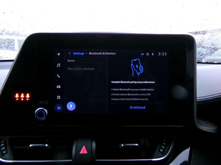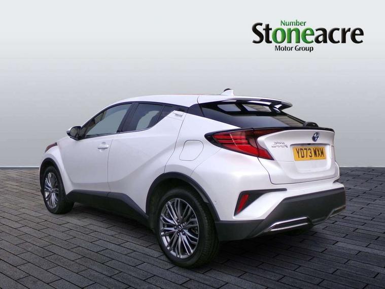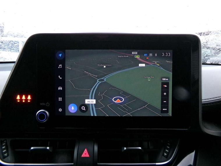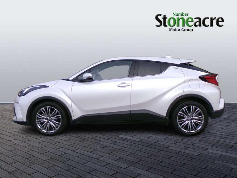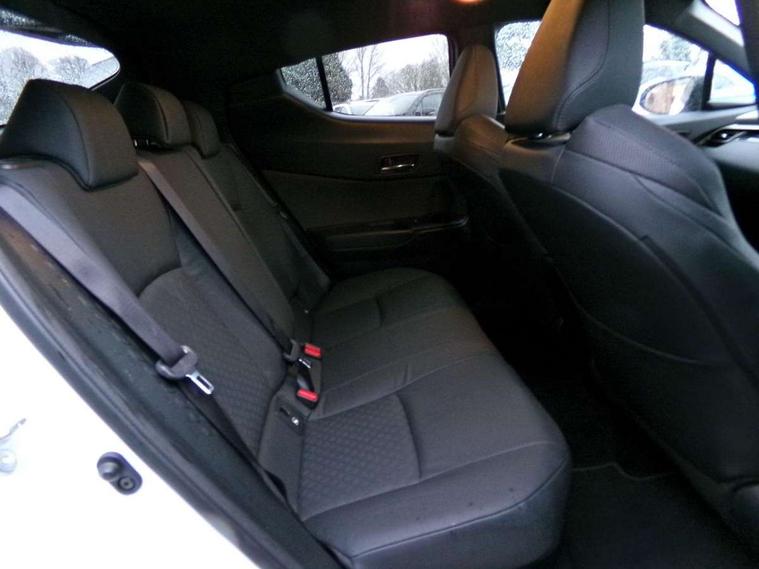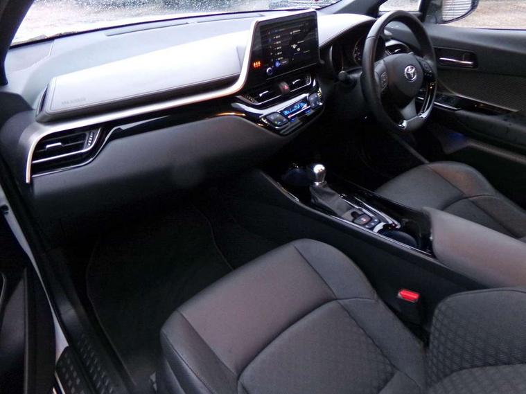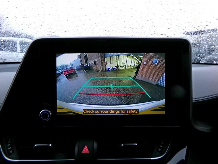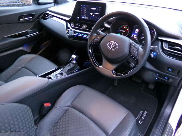 4.2" coloured TFT screen for multi-information display, Adaptive cruise control, Apple car play and Android auto, Bluetooth connectivity, E-call, Electric power steering, Hybrid system indicator, Lane departure alert with steering control, Lane trace assist, Push button tailgate release, Remote boot door release in cabin, Remote boot door release in key, Reversing camera, Road sign assist - RSA, Simple Intelligent parking assist, Smart voice assist, Touch 2 Go navigation system, Trip computer, Voice recognition, Wireless smartphone integration, Vehicle Stability Control (VSC), 6 speakers, AM/FM radio, DAB Radio (Digital Audio Broadcasting), Toyota touch 2 multimedia system with 8" display, USB connector, Wi-fi connectivity, Adaptive front light system, Adaptive LED Headlights, Anti-jam protection on power windows, Auto high beam, Auto up and down function on all power windows, Automatic headlight levelling, Automatic headlights, Automatic headlights cut-off, Black and body coloured rear bumper, Black lower front grille, Black upper front grille, Body colour door handles, Body colour door mirrors, Body colour front spoiler lip, Body coloured front bumper, Boot door release with push button, Electric heated door mirrors, Follow me home headlights, Front and rear power windows, Headlight cut off reminder, Honeycomb lower front grille, LED daytime running lights, LED fog lights, LED front light guide, LED High mounted stop light, LED rear brake lights, LED rear combination lights, Noise reduction layer on front windows and windscreen, Power adjustable door mirrors, Privacy glass, Rain sensor, Rear sequential indicators, Rear side wing doors, Rear spoiler, Rear tailgate, Rear window defogger, Rear window wiper, Shark fin antenna, UV-filter on driver and passenger windows, UV-filter on rear windows, Variable front intermittent wipers, 12v power outlet - front, 3 rear headrests, 3 seat bench in 2nd row, 3 spoke leather steering wheel, 60/40 split folding 2nd row rear seats, Adjustable rear headrests, Adjustable speed limiter switch on steering wheel, Assist grips front and centre pillar, Audio and telephone switches on steering wheel, Black front door assist grips, Blue ambient lighting on front cup holders, Blue ambient lighting on front doors, Boot light, Chrome interior door handles, Driver and front passenger personal light, Driver and front passenger Whiplash Injury Lessening seats, Driver and passenger seatback pockets, Dual zone automatic air conditioning, Floor mats, Front cupholders, Front head restraints, Front sports seats, Glovebox with internal light, Hard tonneau cover, Heated driver and front passenger seats, Heated steering wheel, Hooks for luggage holding net, Humidifying Nanoe air purifier, Illuminated entry system, Isofix attachments on outer rear seats, Leather gearshift, Leather wrapped steering wheel, Light on driver sun visor, Light on passenger sun visor, Manual telescopic steering wheel, Manual tilt steering wheel, Microphone on front personal light, Mirror on driver sun visor, Mirror on passenger sun visor, Multimedia switches on steering wheel, Pollen filter, Power adjustable lumbar support on driver seat, Power tilting cushion on driver seat, Shopping bag hooks, Single front passenger seat, Slow opening on lower glovebox, Voice recognition switch on steering wheel, Leather pack - C-HR, Tech with parking sensor pack - C-HR, 16 Disk front wheel brake, 3x3 point rear seatbelts, ABS+EBD+Brake assist, Electronic parking brake, Front and rear seatbelt reminder, Front passenger airbag on/off switch, Hill start assist control (HAC), Pre collision system with pedestrian detection, Pre-tensioners and force limiters, Rear door child safety locks, SRS Airbags - Driver + Front passenger, front side, front and rear curtain and driver's knee airbags, Toyota safety sense, Tyre pressure monitoring system, Tyre pressure warning system, Acoustic vehicle alert system (AVAS), Glass-breaking alarm sensors, Immobiliser, Intrusion alarm, Intrusion sensor, Motion sensor alarm, Power door locks, Power passenger window lock, Remote central locking, Black lower dashboard, Dark brown upper dashboard, Piano black console, Silver deco line on upper dashboard, Tyre repair kit,