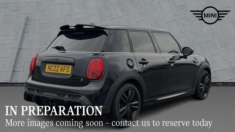 Apple CarPlay, Automatic start/stop function with brake energy recuperation, Compatible mobile phone bluetooth with audio streaming, Cruise control with brake assist, Electro-mechanical speed dependant steering assistance, Flexible car sharing preparation, Instrument cluster, MINI Driving Modes - centre toggle switch to control driving setting (sport, mid and green), Mini E-call, MINI TeleServices, On board computer, Rear park distance control, Service interval indicator, 6 Speed manual transmission including gear change indicator display, Adaptive suspension, Double Vanos system, Fully variable valve control, High precision injection, Performance Control, 8.8" touchscreen with LED ring, FM tuner and DAB digital radio, 3rd brake light, Automatic headlight activation switch, Bonnet scoop, Dynamic brake lights, Electric front+rear windows, Heated rear window, Heated windscreen washer jets, JCW Aerodynamic kit - Front and rear bumpers with sporty JCW styling and part-painted side sills with MINI John Cooper Works door sill finishers, John Cooper Works rear spoiler, LED headlight with closed ring and daytime driving lights, Metal door sill strips with Cooper S imprint, Model logo Cooper S on right of tailgate, Radiator grille chrome border with honeycomb structure including S Badge, Rain sensor window wipers, Rear fog lights, Rear LED lights with union jack design, Rear side wing doors, Rear window wiper, Side scuttle panel with integrated indicator, Sun/heat protection glass, Two central exhaust tailpipes with chrome finisher, White indicator lenses, 12V Accessory socket in centre console, 3 seat bench in 2nd row, 4 lashing eyes in luggage compartment, 60/40 split folding rear seat, Anthracite headliner including grab handles and clothes hooks, Carbon black colour line - Knee roll and door armrest, Chrome interior highlights, Cupholders, Front and rear isofix with front passenger airbag deactivation, Front and rear velour floor mats, Glove compartment, Height and length steering column adjustment, Interior lighting with 12 different colours across the dashboard, underneath door bezel with illuminated laser-engraved design on central display, JCW Sport seats with integrated headrests, adjustable thigh support and John Cooper Works logo, Leatherette gearshift lever and handbrake gaiters, LED reading lights, vanity mirror lights, front foot well light and spotlight on front seats, Manual air conditioning, Mechanical seat adjustment - forward/back & backrest for front seats and driver seat height adjust, Multifunction steering wheel, Single front passenger seat, Sport leather steering wheel with speed limiter and audio/communication controls, Storage compartments in doors, Storage pocket on back of front seats, Sunvisors with vanity mirrors, Tool kit, Walknappa leather steering wheel with grey seam and John Cooper Works badge on Piano Black lower steering wheel spoke, Piano black exterior pack - Mini Hatchback Cooper S, 3 point seatbelts on all five seats, 6 Airbags - front, side, head and seat belt tensioners, Anti-lock braking system (ABS), Child locks on rear doors, DSC - Dynamic Stability Control, Front and rear disc brakes, Hill start assist, Two tone horn, Tyre pressure monitoring system, Alarm system with tilt sensor, monitoring doors, bonnet interior and tailgate, Electronic vehicle immobiliser, Start/stop toggle with keyless go, Piano black interior trim,
