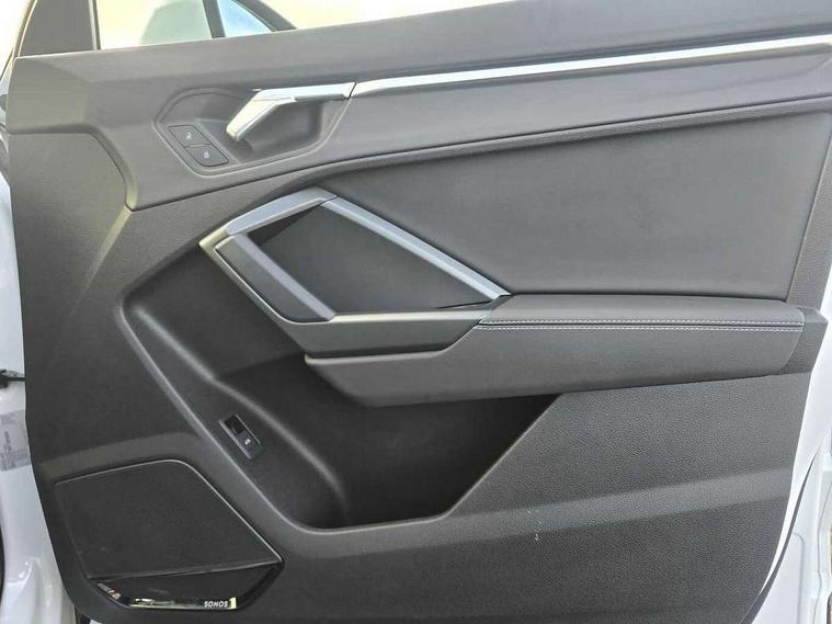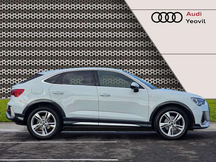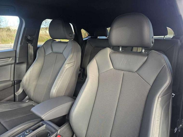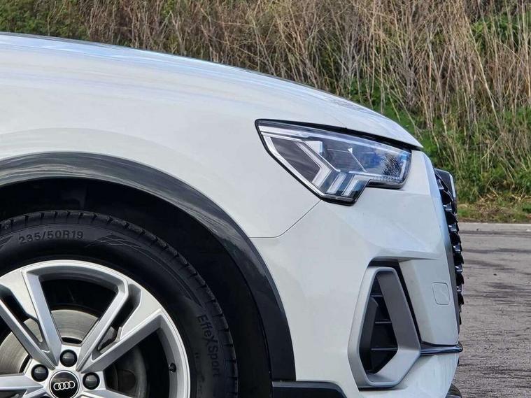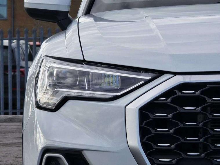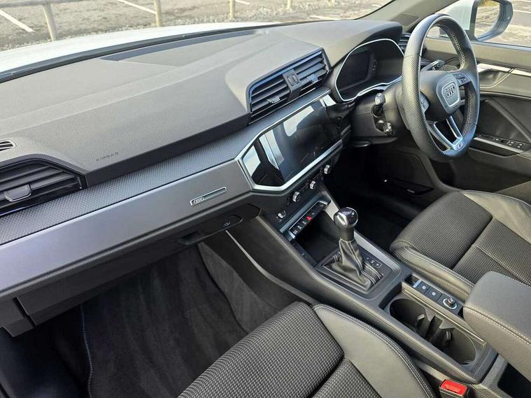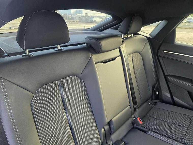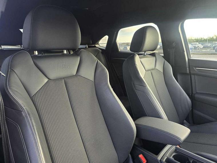 Audi drive select, Audi lane departure warning, Audi Virtual Cockpit - 10.25" display, Bluetooth interface, Camera based traffic sign recognition, Legal emergency call, MMI Navigation Plus with high resolution 10.1 inch touchscreen colour display, Power operated tailgate, Progressive steering, Service interval indicator, Smartphone interface includes wireless Apple carplay/Android Auto, Start stop system with recuperation, Voice control system with natural language interaction, Sports suspension, 2 USB-C ports with charge and data functions, 6 passive loudspeakers, DAB digital radio module, Acoustic windscreen, Aluminium window trim, Auto dimming frameless rear view mirror, Diffuser grille in grained matt black, Diffuser trim in selenite silver, Electrically folding, adjustable and heated door mirrors with integrated LED side indicators and kerb view function for passenger side, Front and rear electric windows, Front fog lights, Front side air inlets in selenite silver, Front underbody protection in manhattan grey paint finish, Grille surround in aluminium silver matt, High gloss black finish B and C pillars, LED Dynamic rear indicators, LED headlights with LED daytime running lights, LED rear lights, LED third brake light, Privacy glass dark tinted rear and rear-side windows (from B-pillar backwards), Radiator grille in anthracite black with inlay in matt aluminium silver, Rain and light sensors, Rear side wing doors, Rear underbody protection in matt black, Rear wiper, S line badges on front wings, S line front and rear bumpers and side skirts in contrasting Manhattan grey paint finish, Side skirt insert in matt Platinium grey, Variable front intermittent wipers, 12V socket in rear centre console, 3 seat bench in 2nd row, 3 spoke leather multifunction steering wheel features S badging and grips in perforated leather with contrast stitching, 40:20:40 folding with manual adjustment for 60:40 forwards/backwards position and backrest angle, Adjustable rear seat bench/backrest with centre armrest and cupholder, Black cloth headlining, Dual zone electronic climate control, Front and rear black floor mats with contrast stitching, Front and rear headrests, Front and rear roof module including reading lights, Front centre armrest, Glove compartment lighting, Height and reach adjustable steering wheel, Illuminated door sill trims with S logo, ISOFIX child seat mounting for front passenger with airbag deactivation and outer rear seat including top tether attachment point for outer rear seats, Luggage compartment light right in white, Luggage compartment sill protection in stainless steel, Manual front seats with height adjustment, Perforated leather gearknob, Single front passenger seat, Stainless steel pedals, Ambient lighting pack - Q3, Non smoking pack - Q3, 3x3 point rear seatbelts, 6 airbags - Driver, front passenger, curtain and side windows, Audi pre-sense front with pedestrain and cyclist recognition, Electrically operated child locks on rear doors, Electromechanical parking brake, Electronic stabilisation control including ABS, ASR and EDL, Front seatbelt reminder, Hill descent control, Hill hold assist, Pre sense basic, Seatbelt monitoring, Tyre pressure warning, Warning triangle and first aid kit, Anti theft alarm, Anti theft wheel bolts, Immobiliser, Remote central locking, Aluminium look interior elements, Black dashboard, Dark matt brushed aluminium inlay, Detail dashboard around MMI touch colour display in glass look, black with surround in aluminium look, Leatherette door armrest,