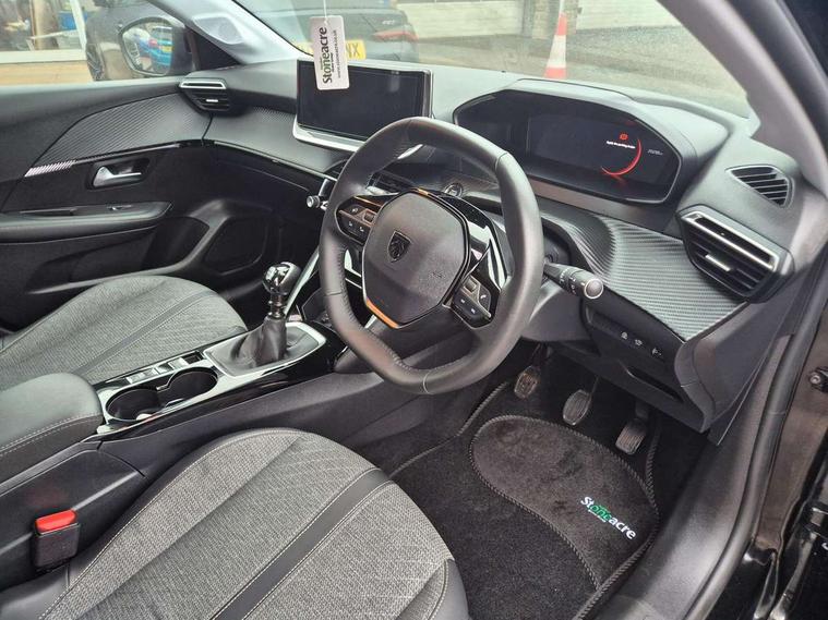 Bluetooth telephone facility, Drive mode selection(Eco/Normal), Driver attention warning, Emergency call service, Exterior temperature indicator with ice warning, Front and rear parking sensors, Multi function trip computer, PEUGEOT i-Cockpit with 10" configurable colour head up instrument panel, PEUGEOT i-Cockpit with 10" HD capacitive colour touchscreen, PEUGEOT i-Cockpit with compact steering wheel, PEUGEOT SOS and assistance, Push button start, Smart phone docking station, Speed limit recognition and recommendation, Start/stop system, Wireless mirror screen with apple carplay and android auto, 6 Speakers - 2 tweeters and 4 door speakers, DAB Digital radio, Peugeot i-connect infotainment system - 10in HD touchscreen, AM/FM/DAB digital radio, Wifi Mirroring, Bluetooth & 2 USB connection, USB-A socket (x1) and USB-C socket (x1) - rear, USB-C data and charge socket and USB-C charge socket in front, Voice recognition for radio, navigation and telephony features, 2 X Rear number plate lights, Acoustic windscreen, Antenna - Gloss Black 'fin' design, Automatic hazard light activation upon heavy brake application, Body coloured exterior door handles, Dark tinted rear side and tailgate windows, Diamond black rear spoiler (roof), Eco LED headlights with electric height adjustment, Electric heated and power folding door mirrors with courtesy floor lighting, Electrochrome rear view mirror, Gloss black B pillar, Gloss black door mirror shells, Gloss black front bumper grille with body colour accents, Gloss black rear cluster connecting strip, Headlights left on audible warning, LED 3 claw horizontal rear lighting signature with daylight function and LED brake lights, LED daytime running lights with distinctive 3 claw signature, LED Rear lighting with distinctive 3 claw horizontal signature with daylight function, LED third brake light, Model designation badges front and rear in basalt grey, One touch electric front/rear windows with pinch protection, Rear bumper with gloss black finish, Rear reversing lights, Rear side wing doors, Rear windscreen wiper triggered automatically in reverse gear, Roof spoiler, Tailgate with heated rear windscreen and wiper blade, Variable front intermittent wipers, 1/3 to 2/3 split folding rear seats, 12V socket, 3 seat bench in 2nd row, Automatic mono zone climate control air condition, Boot lighting, Driver and front passenger comfort seats, Driver and front passenger seat manual adjustment in longitudinal and back rest angle, Driver seat mechanical height adjustment, Electric power steering with reach and rake adjustable steering column, Front centre armrest with storage compartment, Front interior light with 2 reading spotlights, Gear shift indicator, High centre console with 2 cup holders, Map pockets on the backs of the front seats, Multifunction leather steering wheel, Piano keys gloss black plated toggle switches to access main functions of the vehicle, Quartz contrast stitching to front and rear door armrest, Rear centre headrest, Roof lining - light grey, Seatbelt unfastened on the move audible and visual alert for front and rear seats, Single front passenger seat, Tri material cloth/leather upholstery, Visibility pack - 208, 2x Isofix child seat fitting on outer rear seats, 3 rear 3 point seatbelts, ABS (Anti-lock Braking System) with EBD (Electronic Brakeforce Distribution) and EBA (Emergency Braking Assistance), Child locking functionality on rear doors, Driver and front passenger airbag with passenger airbag deactivation, Driver/front passenger side airbags, Electric parking brake, ESP with Hill Assist, Front and rear curtain airbags, Front and rear disc brakes, Front optimised safety headrests and 3 x rear retractable headrests with height adjustable, Front three point retractable seatbelts with force limiters, Remote plip(x2) for locking, unlocking, includes emergency key blade, Tyre pressure monitoring system, Acoustic vehicle alert system (AVAS), Alarm - Connected, volumetric , perimetric, anti lift sensor, Automatic door locking when moving off, Deadlock, Electronic code immobiliser, Remote central locking, Carbon effect Dashboard, front and rear door panel finish, 16" Noma two tone diamond cut alloy wheels, Tyre puncture repair kit,