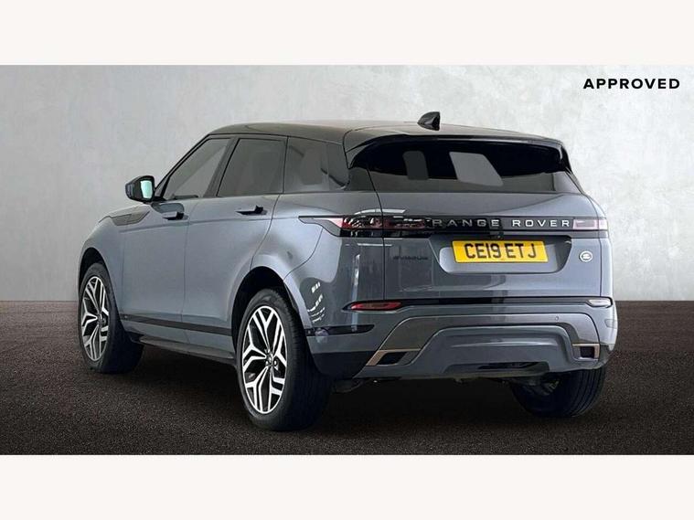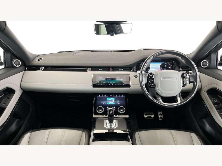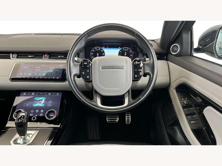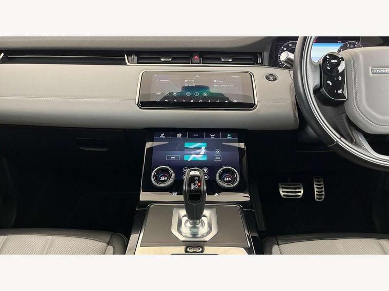 360 degree parking aid, Adaptive cruise control, Android Auto, Apple car play, Blind spot assist, Bluetooth connectivity, Brake pad wear indicator warning light, Clear exit monitor, Driver condition monitor, Duo touch pro, Electronic power assisted steering (EPAS), Head up Display, InControl remote, Interactive Driver display instrument cluster, Land Rover InControl apps, Lane keep assist, Navigation pro system, Park assist - Parallel, perpendicular and parking exit, Powered tailgate/boot lid, Pro services and wifi hotspot, Push button starter, Rear traffic monitor, Rear view camera, Smart settings, Traffic sign recognition with adaptive speed limiter, Voice control system, All terrain progress control, Efficient Driveline, Large fuel tank, Passive suspension, Terrain Response 2 Auto, Digital Audio Broadcast radio-DAB, Meridian sound system with 380W subwoofer and 10 speakers, Steering wheel mounted controls, Automatic headlight levelling, ClearSight interior rear view mirror, Electric windows with one touch open/close and anti trap, Evoque and R-Dynamic badge, Fixed panoramic sunroof with powered sunblind, Flush deployable exterior door handles, Front fog lights, Headlight power wash, Heated rear window with timer, Heated washer jets, Heated windscreen, Illuminated metal treadplates in loadspace and row 1 with First Edition script and non illuminated metal in row 2, Matrix LED headlights with signature DRL, intelligent high beam assist, signature Hi-Line tail lights and animated directional indicators, Metallic paint, Narvik black contrast roof with exterior mirror caps, No badge - Removes powertrain badge and specification pack badge, Power fold, auto-dimming, heated door mirrors with memory and approach lights, Privacy glass, Rain sensing windscreen wipers, Rear fog lights, Tailgate spoiler, 14 way electric heated front seats with memory, fore/aft, recline/height/tilt, 4way lumbar + manual headrest adj with rear centre armrest, 40:20:40 split folding rear seats, Black gearshift paddles, Bright metal pedals, Configurable Ambient interior lighting, Ebony morzine headlining, Electrically adjustable steering column, Extended leather upgrade, First Edition carpet mats, Heated steering wheel, Isofix system on outer rear seats, Overhead lighting console, Overhead stowage for sunglasses, Passive front head restraints, Perforated Duo-tone grained leather upholstery, Perforated soft grain leather steering wheel with Atlas bezel, Rear air vents, Rear centre headrest, Sunvisors with illuminated vanity mirrors, Twin front cupholders with cover, Twin sliding front centre armrest, Two zone climate control, Power socket pack 1 - Evoque, Anti-lock braking system (ABS), Customer configurable autolock, DSC - Dynamic Stability Control, Electronic brake force distribution, Electronic parking brake, Electronic traction control, Front and rear seatbelt reminder, High speed emergency braking, Hill descent control, Hill launch assist, Low traction launch, Power operated child locks, Roll stability control, Six airbags - Driver and passenger airbags/driver knee airbag/front side airbag and curtain airbags, Torque vectoring brake, Tyre pressure monitoring system, Alarm, Immobiliser, Intrusion sensor, Keyless entry, Locking wheel nuts, Gradated linear dark aluminium trim finisher with First Edition script, All season tyres, Tyre repair kit,