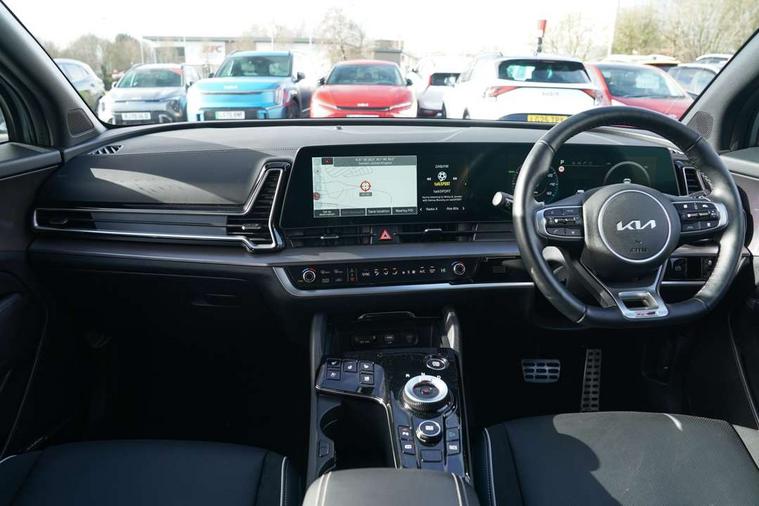 12.3" Driver display screen, 12.3" Touchscreen navigation system, 2 rear USB-C ports, 360 degree around view monitor, Apple car play/Android Auto, Blind spot collision avoidance assist, Blind spot view monitor, Drive mode selector, Driver attention warning, E-call, Emergency stop signalling system, Forward collision avoidance assist (FCA) - city/pedestrian/cyclist/junction covering, Front and rear parking sensors, Highway Driving Assist (HDA), Intelligent speed limit assist, Kia Connect (UVO), Lane Following Assist (LFA), Lane keep assist, Low washer fluid warning, Motor driven power steering, Parking collision avoidance assist (PCA), Rear cross traffic collision avoidance assist (RCCA), Remote smart parking assist, Reversing camera system integrated into centre fascia screen, Safe exit warning (SEW), Smart cruise control with stop and go functionality, Smart power tailgate, Speed limiter, Trip computer, Windscreen washer level indicator, Wireless Smartphone charger, 1x USB-C port in front, Bluetooth audio streaming, DAB Radio with MP3, Harman Kardon premium sound system with 8 speakers, Steering wheel mounted audio controls, USB C type charging ports on centre console, USB port for connection of a media device, All round electric windows with drivers and front passenger auto up/down function, Auto dimming rear view mirror, Automatic headlight control system, Automatic window defogger, Black and body coloured bumpers, Body colour exterior door handles, Body colour radiator upper garnish and door garnish, Dual LED headlights with adaptive driving beam, Electrically adjustable/heated/folding door mirrors with LED indicators, Front and rear chrome skid plates, Gloss black door mirrors, Gloss black radiator grille, Gloss black side sill and wheel arch body mouldings, Glossy black roof rack, GT-Line exterior styling, Heated rear window, High beam assist, Interior electrochromic mirror, LED daytime running lights, LED front fog lamps, LED High mounted stop light, LED rear combination lamp, Panoramic sunroof with tilting and sliding function with electric blind, Rain sensing wipers with aero blades, Rear fog lamp, Rear privacy glass, Rear side wing doors, Rear spoiler, Rear wiper, Satin finished beltline, Silver window surround, Tinted rear glass, Trailer stability assist, 12V power socket in front centre fascia and luggage compartment, 3 seat bench in 2nd row, 3 x passenger assist grips, 40/20/40 split folding rear seat, All-round height adjustable headrests, Alloy pedals, Automatic air conditioning, Black headlining, Centre console storage box, Cupholders in rear armrest, Customisable ambient lighting, Door courtesy lamps, Drink holder at centre armrest, Driver and front passenger side sunvisors with illuminated vanity mirrors, Drivers seat power lumbar support, Electric adjustable driver seat with memory function, Electric adjustable front passenger seat, Front and rear door storage, Front seat and rear pockets, Gear shift indicator, Glovebox illumination, GT-Line Interior Styling, Heated front and outer rear seats, Heated steering wheel, ISOFIX Child seat top tethers and anchor fixings outer rear seats, Leather steering wheel, LED front cabin light, LED interior personal lamp, LED lighting in overhead console, LED rear reading lights, Luggage area LED light, Luggage area load cover, Luggage area parcel shelf, Luggage board, Luggage compartment under floor storage, Luggage net with hooks, Manual adjust steering wheel, Metal paint interior door handles, Paddle shift controls, Rear air conditioning, Rear cabin light, Rear coat hooks, Single front passenger seat, Suede leather upholstery, Ventilated front seats, Ventilation ducts to rear compartment, Active front headrests, All round 3-point seatbelts, Anti-lock braking system (ABS), Dual front side airbags, Dual horn, Dynamic brake control, Electronic parking brake with auto hold function, Electronic stability control with downhill brake control, Front passenger airbag cut-off switch, Front seatbelt pretensioners + load limiters, Height adjustable front seatbelts, Hill start assist control (HAC), Impact sensing auto door unlocking, Multi collision brake assist, Rear airbags, Rear door child safety locks, Rear seat alert system, Seatbelt reminder warning, Traction control, Twin curtain airbags, Twin front airbags, Tyre pressure monitoring system, Vehicle stability management, Customisable automatic door locking, Customisable automatic door unlocking, Door deadlocks, Engine Start/Stop Button with Smart Entry System, Locking wheel nuts, Smart key with motion sensor, Speed sensitive auto door locking, Thatcham category 2 security alarm and immobiliser, Visible vehicle identification number, Aluminium pattern finish centre fascia and door garnish, 18" GT-Line alloy wheels, Tyre mobility kit,