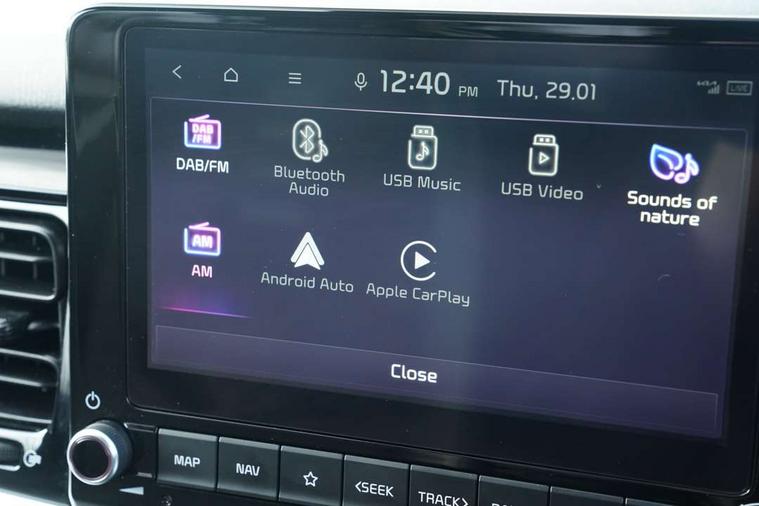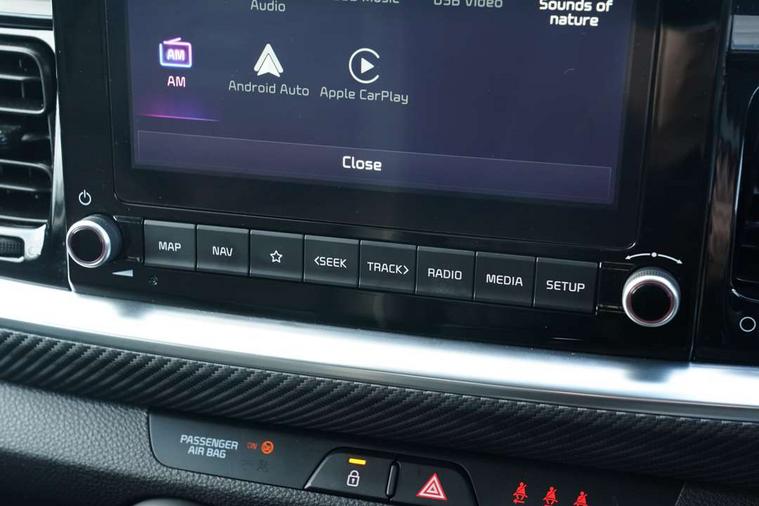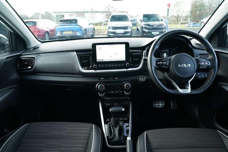 4.2" supervision colour cluster display, 8" touchscreen navigation, Apple car play/Android Auto with voice control, Blind spot collision avoidance assist, Blind spot collision warning, Drive mode selector, Electric power steering, Emergency call service, Emergency stop signalling system, External temperature display, Forward Collision-Avoidance Assist (FCA) - City/Pedestrian/Cyclist, Front parking sensors, Intelligent speed limit warning, Lane keeping assist system (LKAS), Driver attention warning (DAW) and High beam assist (HBA), Rear parking sensor, Reversing camera system, Smart cruise control, Trip computer, Intelligent Stop and Go, Audio system with 6 speakers, Bluetooth with music streaming, Front USB port, Steering wheel mounted controls, All round electric windows with drivers auto up/down function, Auto dimming rear view mirror, Automatic defog system, Automatic headlights control, Black side sill, door garnish and wheel arch trims, Black/body colour bumpers, Body coloured exterior door handles, Chrome side window trim, Electrically adjustable/heated/folding door mirrors with LED indicators, Front and rear silver skid plates, Gloss black door mirrors with matt black lower housing, GT-Line body kit, Headlight levelling device, Heated rear window, High gloss black and satin radiator grille, LED Bi-function projection headlights with static bending, LED daytime running lights, LED front fog lights, LED position light, LED rear combination lights, Privacy glass - Rear windows and tailgate, Rain sensing front wipers, Rear fog lights, Rear side wing doors, Rear wash/wipe, Roof coloured rear spoiler with high mounted braking light, Roof rails, Shark fin antenna, Solar windshield glass, Speed variable front aeroblade wipers, Tinted glass, Welcome and follow-me home light functionality, Windscreen Washer Level Warning, 12V power point front, 3 seat bench in 2nd row, 60/40 split folding rear seat, Air filter, All-round height adjustable headrests, Aluminium pedals, Automatic air conditioning, Centre armrest storage box, Centre console with cupholders, D-Cut perforated leather trimmed steering wheel, Dash illumination dimmer switch, Driver's seat height adjuster, Front and centre cabin lights, Front and rear door map pockets with bottle holder, Gear shift indicator, Glovebox illumination, GT-Line cloth/faux leather upholstery, Heated front seats, Heated steering wheel, ISOFIX Child seat top tethers and anchor fixings outer rear seats, Leather trimmed gearshift, Luggage area light, Luggage area parcel shelf, Luggage net, Luggage net with hooks, Overhead console lamp, Overhead console with sunglasses cases, Passenger front seatback pockets, Passenger seat height adjuster, Rear USB charging port, Satin chrome interior door handles, Single front passenger seat, Sunvisors with vanity mirror illumination (Driver and front passenger), Tilt/telescopic adjustable steering wheel, ABS with Electronic Brakeforce Distribution (EBD) and Brake Assist System (BAS), All round 3-point seatbelts, Electronic stability control (ESC) and vehicle stability management (VSM), Front passenger airbag cut-off switch, Front seatbelt pretensioners + load limiters, Height adjustable front seatbelts, Hill start assist control (HAC), Impact sensing auto door unlocking, Manual child lock in rear doors, Rear seat Occupancy alert, Seatbelt reminder warning, Twin curtain airbags, Twin front airbags, Twin front side airbags, Tyre pressure monitoring system, Alarm system, Door deadlocks, Engine immobiliser, Locking wheel nuts, Smart key with engine start/stop button, Speed sensitive auto door locking, Visible vehicle identification number, High gloss black centre fascia, 17" GT-Line alloy wheels, Tyre mobility kit,