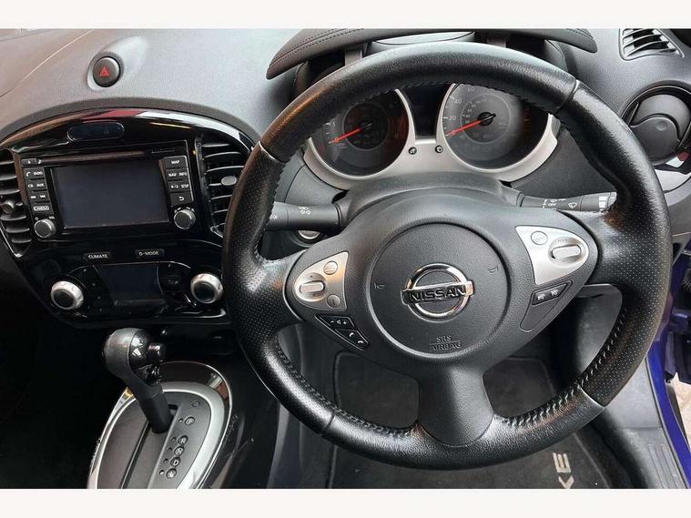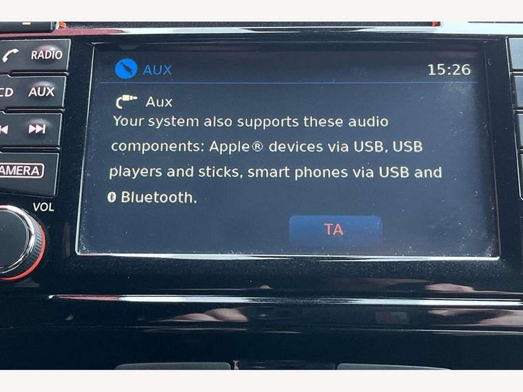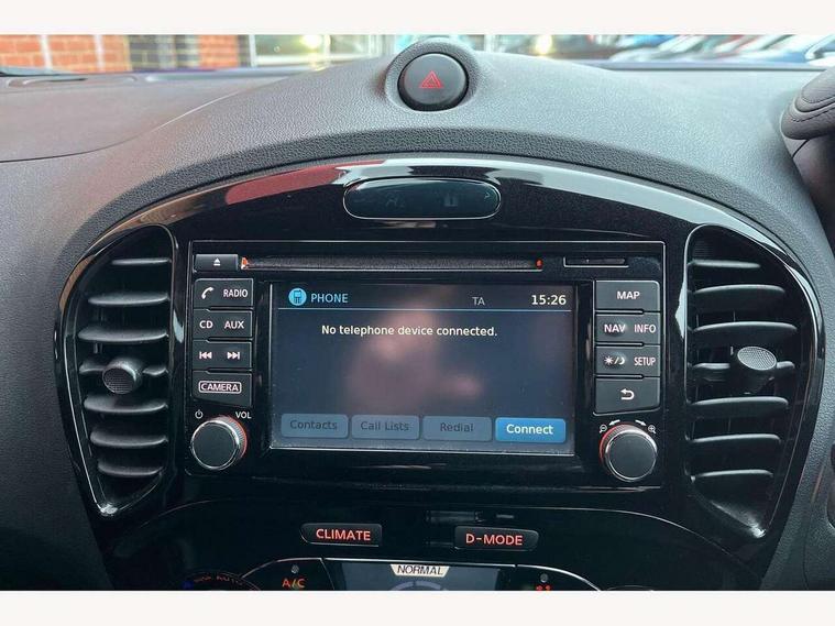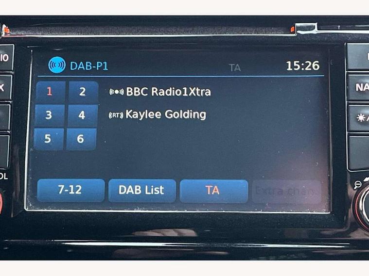 Bluetooth system, Colour rear view camera, Cruise control + speed limiter, Electric speed sensitive power steering, Nissan connect sat nav system, Push button starter, Service interval indicator, Trip computer, 6 speakers, Aux input, DAB Digital radio, Steering wheel mounted audio controls, Stereo radio/CD player and MP3 facility, USB port, 2 speed wipers+variable intermittent wipe, Automatic headlights, Body colour bumpers, Body colour door handles, Electric door mirrors, Electric folding door mirrors, Electric front/rear windows, Front fog lights, Heated door mirrors, LED daytime running lights, Privacy glass, Rain sensor, Rear wiper, 12V socket, 60/40 split folding rear seat, Artificial leather/suede upholstery, Climate control, Front armrest, Front cupholders x 2, Front door pockets with bottle holders, Front head restraints, Front seat belt pre-tensioners with load limiters, Gear shift indicator, Glovebox, Height adjustable driver's seat, Internal chrome door handles, Isofix child seat preparation, Leather steering wheel and gear knob, Luggage area under floor storage box, Map reading lamp, Passenger seat back pocket, Pollen filter, Rear headrests, Rear tonneau cover integrated into tailgate, Sports seats, Steering wheel rake adjustment, ABS + EBD + EBA, Child locks on rear doors, Driver and passenger airbags, Driver and passenger side airbags, ESP + traction control, Front and rear curtain airbags, Height adjustable front seatbelts, Passenger airbag deactivate switch, Three 3 point rear seatbelts, Tyre pressure monitoring system, VDC Dynamic Vehicle Control, Warning triangle and first aid kit, Alarm, Immobiliser, Intelligent Key, Remote central locking, 17" Sport alloy wheels, Tyre repair kit,