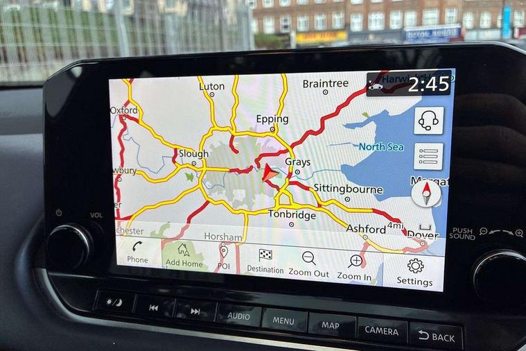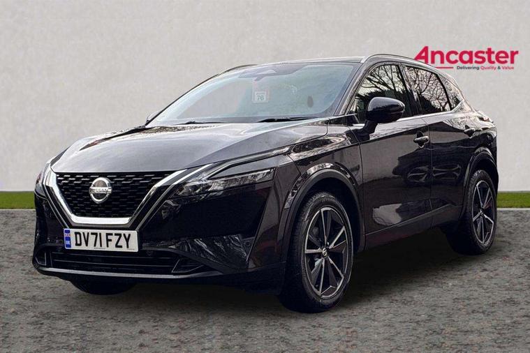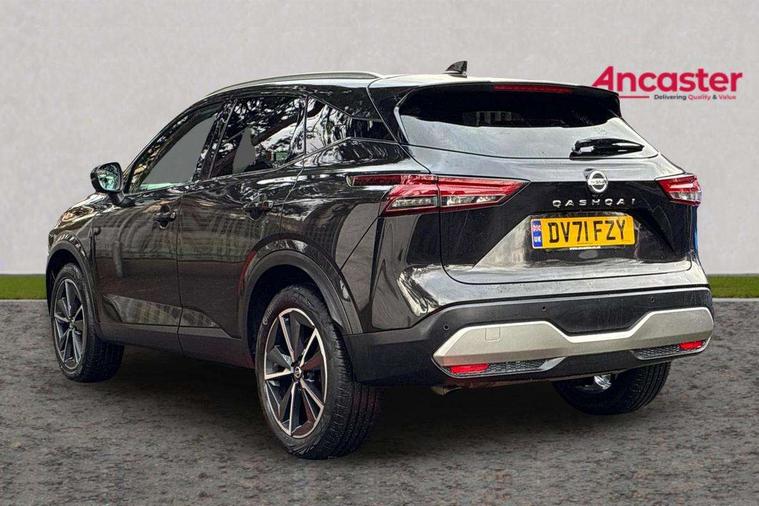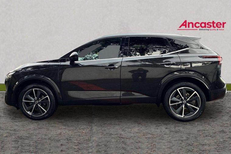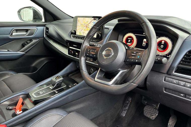 Blind spot warning, Drive modes (sport, normal, eco), Electric speed sensitive power steering, Emergency and breakdown call, Front and rear parking sensors, Full Digital 12.3" TFT Digital Combimeter, Hands free power tailgate, Idle stop/start system, Intelligent Cruise control (ICC), Intelligent driver alert system, Intelligent forward collision warning, Intelligent lane intervention, Lane departure prevention, Lane departure warning system, Moving object detection, Push button starter, Rear cross traffic alert, Traffic sign recognition with legal speed adjustment, Trip computer, 6 speakers, AM/FM audio system with DAB, Bluetooth audio streaming, Front USB connections (Type-A and Type-C), Rear USB charging only ports (Type-A and Type-C), Auto dimming rear view mirror, Auto rear wiper when reversing, Body colour mirror caps, Body coloured door handles, Bodyside mouldings, Chrome side window finisher, Electric auto folding door mirrors, Electrically adjustable and heated door mirrors with LED turn indicator, Fixed panoramic glass roof with electric sunshade, Follow me home headlights, Intelligent auto headlights, LED daytime running lights, LED signature rear lights, One touch front and rear electric windows with remote opening and closing, Partially body coloured bumpers, Privacy glass, Rear roof spoiler, Rear styling plate, Roof rails, Shark fin antenna, Splash free rain sensing wipers, Super UV and infrared cut glass, Three blink turn signal, 12v power socket in dashboard and luggage, 2 way electrical driver lumbar adjustment, 2x Rear coat hooks, 3 rear headrests, 4 grab handles, 6 Luggage hooks - 4 on floor, 2 on side, 60/40 split folding rear seat, 8 way electric adjustable drivers seat, Ambient lighting around centre console, Ambient lighting in front doors, Centre console storage tray, Chrome interior door handles, Cloth/syntech leather monoform upholstery, Dark headlining, Driver and front passenger sunvisors with illuminated vanity mirrors, Driver seat back pocket, Dual zone automatic climate control with pollen filter, Front centre console and armrest, Front cupholder, Front door with bottle holders, Glovebox with light, Hard trunk cover, Height adjustable front headrests, Leather steering wheel, Luggage board system, Luggage space lighting, Manual lumbar support on passenger seat, Manually adjustable passenger (slide recline + lifter), Multifunction steering wheel, Passenger seat back pocket, Rear armrest with 2 cupholders, Rear door bottle holders, Soft PVC kneepad, Steering wheel gearshift paddles, Steering wheel switches, Tilt/telescopic adjustable steering wheel, Two rear isofix child seat anchorage points with top tether, Welcome light and doors with console tray ambient lighting, Heat pack - Qashqai, Tech Pack (ProPILOT + HUD), 3x3 point rear seatbelt pretensioners + load limiters, ABS, ESP, EBD and brake assist, Active brake limited slip, Auto hold function, Child locks on rear doors, Curtain and front side, far side airbags, Driver and passenger airbags, Driver, passenger and 2nd row rear seat belt reminder, Electronic parking brake, Front seatbelt pretensioners + load limiters, Height adjustable front seatbelts, Hill start assist, Intelligent blind spot intervention, Intelligent front emergency braking with pedestrian, cyclist recognition and junction assist, Intelligent rear automatic braking, Tyre pressure monitoring system, Vehicle dynamic control, Capless fuel filler, Engine immobiliser, Nissan i-key, Remote central door locking with deadlocking, Thatcham Cat.1 alarm, 19" Alloy wheels,