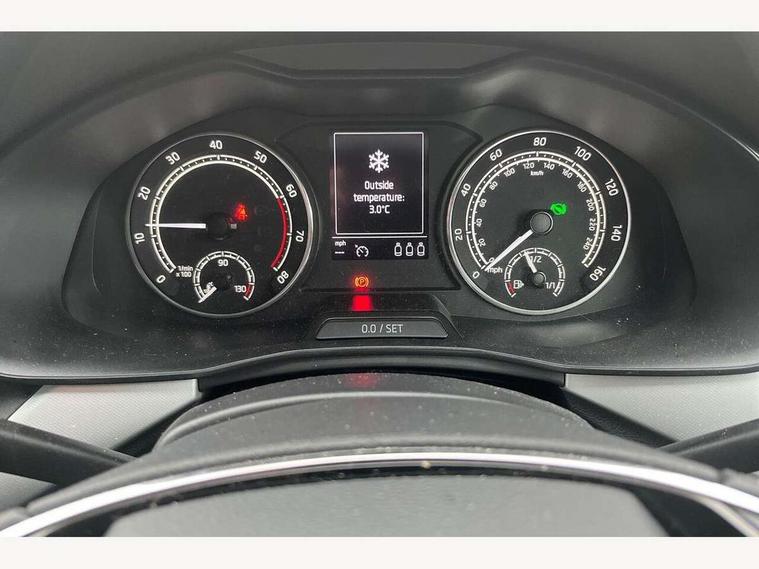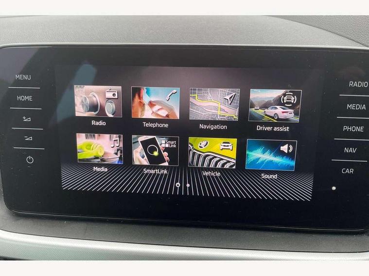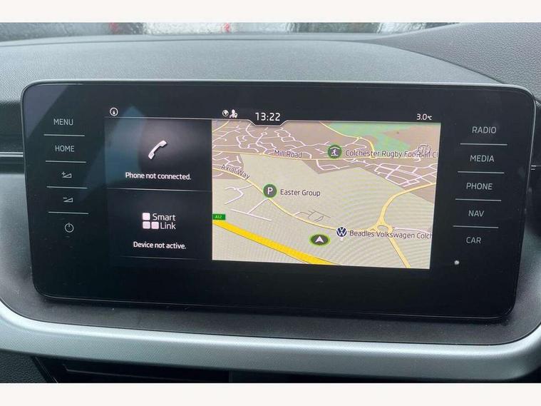 Amundsen satellite navigation with 9.2" glass colour touchscreen display, web radio, voice control and traffic sign recognition, Bluetooth system, E-call, Front assist system, Gesture control, PAS, Service indicator, Speed limiter, Wireless Smartlink for Apple CarPlay (wired for Android Auto), 8 Speakers, Auxiliary input socket, DAB Digital radio, Body colour bumpers, Body colour door mirrors and handles, Chrome grille surround, Dimming rear view mirror with black surround, Electrically adjustable and heated door mirrors, Front and rear electric windows, Headlight range control, Heated rear window, LED rear lights - low functionality, LED third brake light, Light sensors, Privacy glass, Rain sensor, Rear fog lights, Rear side wing doors, Rear wiper, 12V Accessory socket in centre console, 3 seat bench in 2nd row, Chrome inner door handles, Cloth upholstery, Front head restraints, Glove compartment with illumination, Height adjustable driver and front passenger seats - manual, Ice scraper, Isofix child seat fittings on outer rear seats, ISOFIX on front passenger seat, Manual lumbar support for front seats, Rake/reach adjustable steering wheel, Reading lights, Single front passenger seat, Sun visors with illumination on front passenger, Textile floor mats, Third rear headrest, Top tether for front passenger seat, Umbrella in driver's door, 3x3 point rear seatbelts, Airbags - driver and front passenger, ESP, Front passenger airbag deactivation switch, Front side airbags with curtain airbags, Hill hold control, Manual parking brake, Manual rear child locks, One tone horn, Rear disc brakes, Seatbelt reminder for driver an co-driver, Traction control, Tyre pressure monitor, Anti-theft alarm system with interior monitoring, backup horn, towing protection and remote central locking with SAFE system, Anti-theft wheel bolts, Electronic engine immobilizer, Silver haptic decorative insert on the dashboard with hot stamping in glossy black,