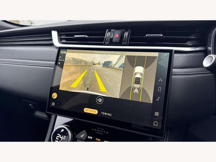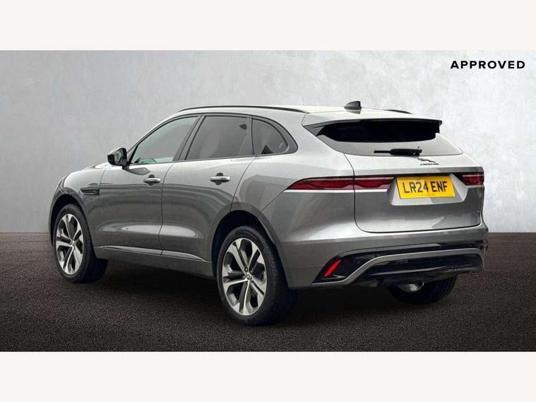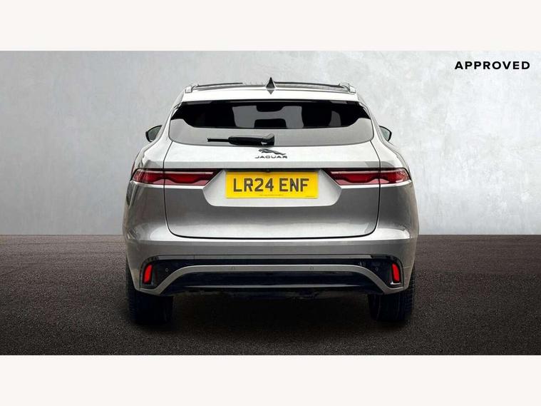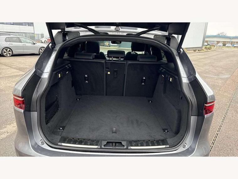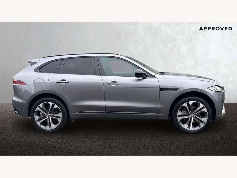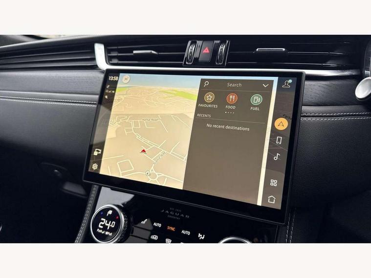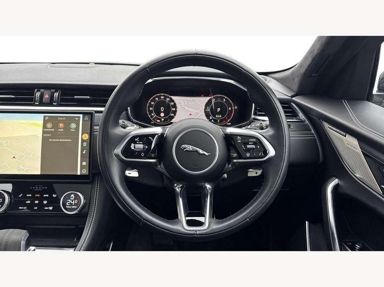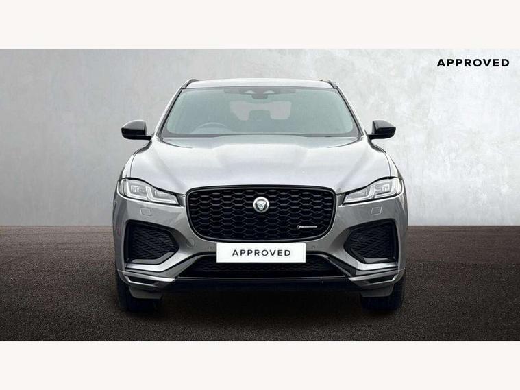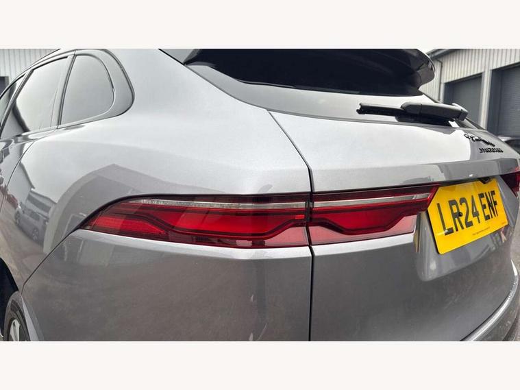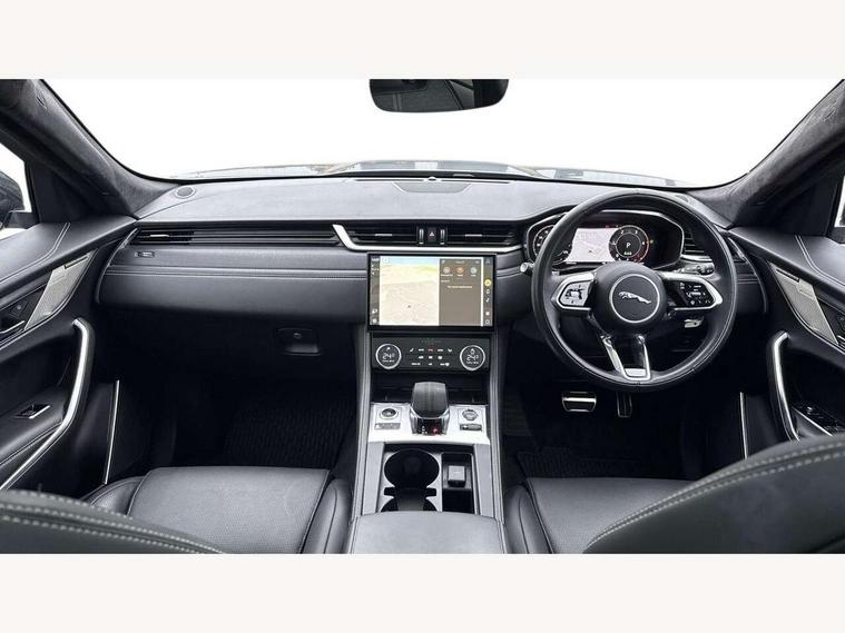 11.4" touchscreen, Adaptive cruise control with steering assist, Android Auto, Apple car play, Blind spot assist, Bluetooth connectivity, Clear exit monitor, Driver alert system, Driver condition monitor, eCall emergency call system, Eco driving style assistant, Electric power assisted steering, InControl remote, Interactive driver display digital with 12" TFT display, Jaguar Toggle shift selector, Lane departure warning system, Lane keep assist, Outside temperature gauge, Personalisation profile management, Pivi pro connected navigation system with app interface and media storage, Pro services and wifi hotspot, Push button starter, Rear collision monitor, Rear traffic monitor, Service interval indicator, Speed proportional steering, Start up sequence with movement in dials and lighting, Traffic sign recognition with adaptive speed limiter, Trip computer, Voice control system, Wireless device charging, 8 speed automatic transmission, Adaptive dynamics, All terrain progress control, All Wheel Drive (AWD), Configurable dynamics, Open differential with torque vectoring by braking, AM/FM radio, Bluetooth streaming, DAB Radio (Digital Audio Broadcasting), Dynamic volume control, InControl apps, InControl protect, iPod integration, 3 flash lane change indicators, AHBA and animated directional indicators, Approach Illumination, Auto dimming rear view mirror, Automatic headlights, Electric heated/power fold memory door mirrors with approach lights and auto dimming driver side, Electric windows with one touch open/close and anti trap, F-Pace and R Dynamic badge, Green tinted glass, Heated front windscreen + heated washer jets, Heated rear window with timer, Illuminated metal tread plates with Jaguar script, Jaguar script and leaper, LED High level third brake light, LED tail lights, Metal load space scuff plates, Non acoustic front windscreen, Privacy glass (rear side windows and rear screen), R Dynamic badge on side door, Rain sensor windscreen wipers, Rear fog lights, Rear metal tread plates, Rear side wing doors, Rear wiper, Trailer stability assist, Variable front intermittent wipers, 12V power point front, 3 rear headrests, 3 seat bench in 2nd row, Additional power sockets - Two additional USB sockets in rear centre console and one 12V socket in trunk, Air distribution speed, Bright metal foot pedals, Centre armrest console, Centre console with side storage, Configurable cabin lighting, Deletion loadspace storage rails, Door sill tread plates, Ebony suede cloth headlining, Electrically adjustable steering column, Fold flat front seats, Front centre armrest with storage compartment, Front door storage space, Glovebox finisher with jaguar script, Heated steering wheel, Hooks in loadspace, Illuminated glovebox, Interior front door handles with separate locking switches, ISOFIX on outer rear seats, Jaguar sense, Leather steering wheel, Luggage tie downs in loadspace, Mist sensing, Multifunction steering wheel, Overhead lighting console, Overhead stowage for sunglasses, Passive front head restraints, Premium carpet mats, Rear air vents, Rear armrest with twin cupholders, Rear centre headrest, Rear door storage space, Reversible boot floor, Satin chrome gearshift paddles, Shopping bag hook, Single front passenger seat, Sunvisors with illuminated vanity mirrors, Twin front cupholders with cover, Online Pack with data plan - F-Pace, 355mm front brakes and 325mm rear brakes, 3x3 point rear seatbelts, ABS, All surface progress control (ASPC), Brake pad warning light, DSC - Dynamic Stability Control, Electric parking brake (EPB), Emergency brake assist, Front airbags with passenger seat occupant detector, Front and rear seatbelt reminder, Front side airbags, Full length side window curtain airbag, Hill launch assist, Power operated child locks, Traction control, Tyre pressure monitoring system, Immobiliser, Keyless entry, Keyless Start, Locking wheel nuts, Perimeter alarm, Remote central locking, Valet mode,