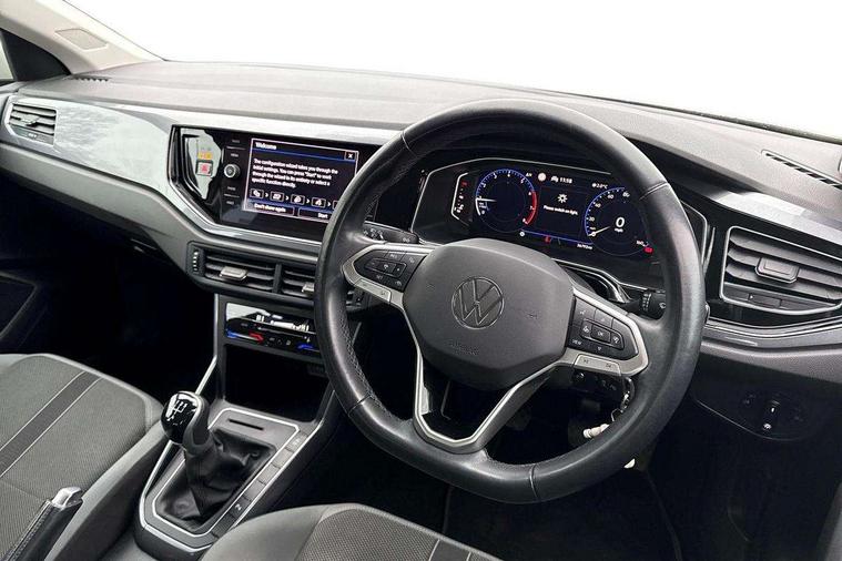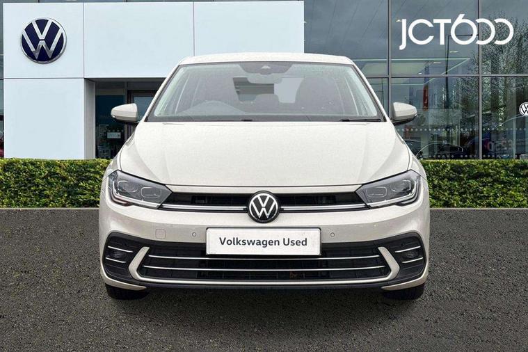 Adaptive cruise control without follow-to-stop and speed limiter, Bluetooth mobile phone interface, Digital Cockpit Pro with 10.25" Display, Driver alert system, Dynamic road sign display, Emergency call service, Power assisted speed sensitive steering, Preparation for We connect and We connect plus, Speedo and rev counter, electronic odometer, trip, service interval display and fuel gauge, Standard rear axle, Travel Assist - Lane keeping system and traffic jam assist, Travel assist including emergency assist, Trip computer, Warning signal and warning light for front and rear seatbelts not fastened, Washer fluid level indicator, Wireless app connect, Front wheel drive, Rear shock absorpion, Start-stop system with battery regeneration (recuperation - energy recovery during braking), DAB Digital radio, Diversity antenna for FM reception, Front and rear 6 speakers, Automatic dimming interior rear view mirror, Automatic headlights, Body colour door handles, Body coloured bumpers and radiator grille with chrome trims, Electric front windows, Heat insulating darkened glass in side and rear windows, Heat insulating glass windscreen, LED separate daytime running lights with coming/leaving home function, Power folding adjustable/heated exterior mirrors and front passenger exterior mirror lowering function, Rain sensor, Rear electric windows, Rear fog light, Rear side wing doors, Rear windscreen washer and wiper with interval delay, Third brake light, 12V power socket in centre console, 2 USB-C ports in the front, 2 USB-C charging sockets on the center console in the rear, 3 rear head restraints, 60/40 split folding rear seat and rear seat bench not split, Air care climatronic air conditoning system with active combination filter and 2-zone temperature control, Ambient lighting, Ceramique headliner, Chrome plated radiator grille inserts, air vent surrounds and light switch surrounds, Door and side trim panel, Driver and front passenger seat height adjustment, Driver/passenger sunvisors with illuminated vanity mirrors, Front + rear carpet mats, Front centre armrest, Front footwell illumination, Front seat backrest storage pockets, Front sports comfort seats, Handbrake lever handle in leather, Isofix child seat preparation easy-fit (for two outer rear seats, and front passenger seat) compatible with I-size, Leather trimmed gear knob, LED interior light with switch off delay and dimmer, 2 reading lights front and rear, Luggage compartment cover, Luggage compartment floor, Luggage compartment lighting, Lumbar adjustment for front seats, Multifunction steering wheel, Single front passenger seat, Standard pedal cluster, IQ LED matrix headlights pack - Polo, Light and vision pack - Polo, 3 point height adj front seatbelts + pretensioners, 3x3 point rear seatbelts, ABS, Driver and front passenger airbag with front passenger airbag deactivation, Drivers and front passengers safety optimised head restraints, ESC (Electronic stability control) + EDL (Electronic Differntial lock) and ASR (Traction control), Extended and predictive pedestrian/ cyclist protection, Front curtain and side airbags with center airbag, Front disc brakes, Hill hold control, Manual child lock in rear doors, Rear drum brakes, Single tone horn, Tyre pressure loss indicator, Alarm with interior protection, Anti-theft alarm system with interior monitoring, backup horn, and towing protection, Anti-theft wheel bolts, Electronic engine immobiliser, Chrome applications on rotary light, mirror adjustment, window regulator switches, outlet with frame in black, Deep iron gloss decorative inserts in dash and front door panels, Low rolling resistance tyres,