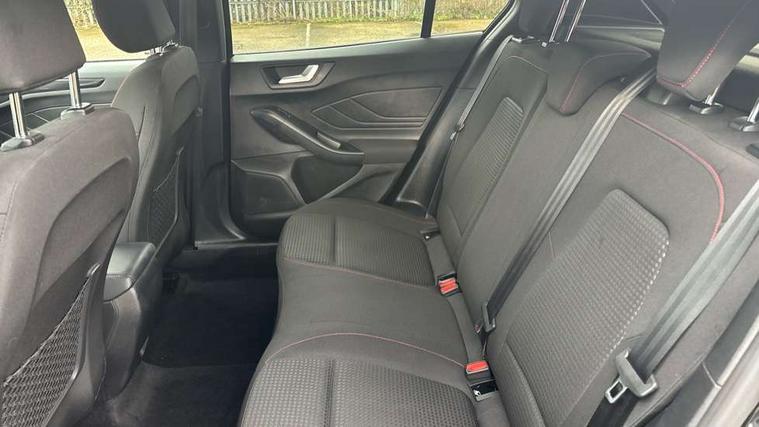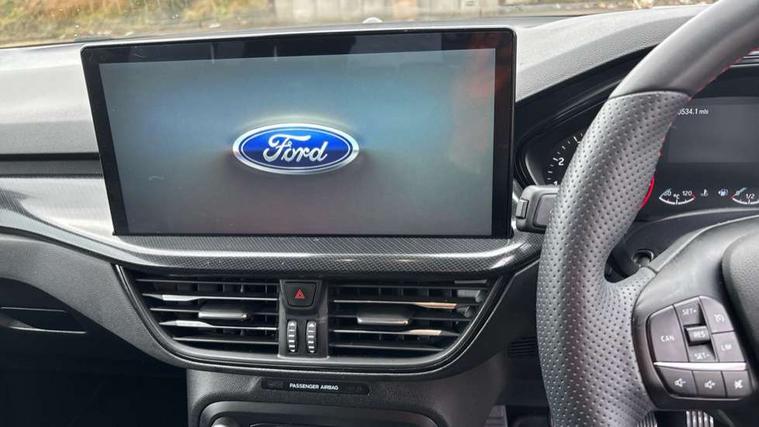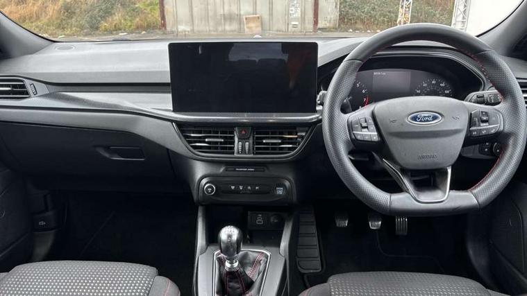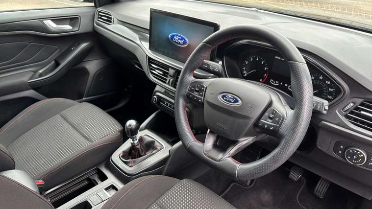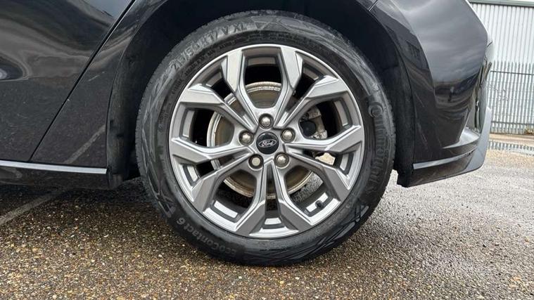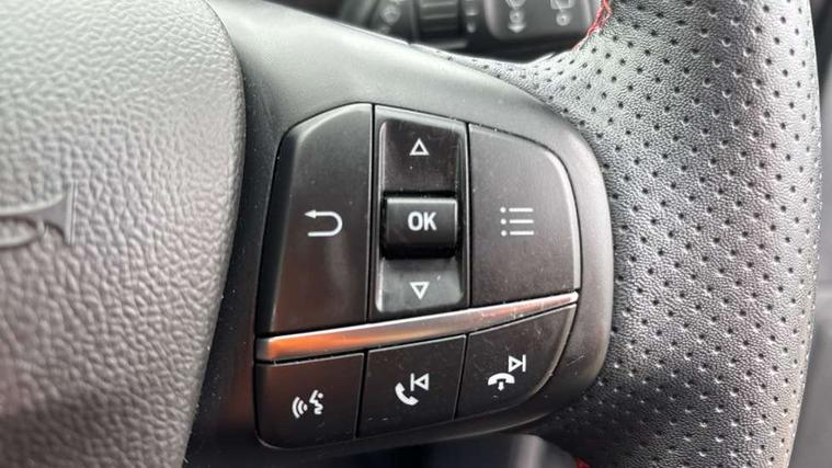 4.2" Colour TFT Ice blue illumination analogue cluster with trip computer, Bluetooth system, Digital clock, Easy fuel capless refuelling system, Eco mode, Ford SYNC 4 Navigation with 13.2'' touchscreen, DAB radio, Emergency Assistance, Apple Carplay & Android Auto, 6 speakers & FordPass Connect, Lane keeping system - lane keeping alert and lane keeping aid, PAS, Rev counter, Selectable drive mode, Service interval indicator, Sports tuned suspension, 2 USB ports, Auto headlamps (on/off), Body coloured door handles, Electrically operated front and rear windows with one touch opening and closing, Electrically operated heated power fold door mirrors with puddle lamp with side indicators, Front variable intermittent wipers with electric wash, Full fixed LED headlamps, Heated rear window, LED daytime running lamp, LED rear lamps, LED third brake light, Polished twin tailpipe, Privacy glass, Quickclear heated windscreen, Rain sensor, Rear side wing doors, Tailgate wash/wipe, Unique ST-Line grille, full bodystyling kit, and large body coloured rear spoiler, 3 rear headrests, 3 seat bench in 2nd row, Cloth upholstery, Dual zone electronic air temperature control, Height adjustable front headrests, Isofix child seat preparation, Reach + rake adjustable steering column, Single front passenger seat, 3x3 point rear seatbelts, ABS+Electronic Brake force Distribution, Auto hold function, Driver airbag, EDL traction control, Electronic parking brake, Electronic stability control, Front and rear seatbelt reminder, Front inertia reel height adjustable seatbelts with pre-tensioners, Front passenger airbag, Front side airbags, Passenger airbag deactivate switch, Post collision braking, Pre collision assist with autonomous emergency braking and pedestrian/cyclist detection, Remote/power child rear door locks, Side curtain airbags, Three rear inertia reel lap/diagonal seatbelts, Tyre pressure monitoring system, Keyless entry and keyless start, MyKey system, Remote central locking & engine immobiliser, Thatcham alarm with power door dead locks, 17" 5 spoke Rock mettalic finish alloy wheels with mini spare wheel,