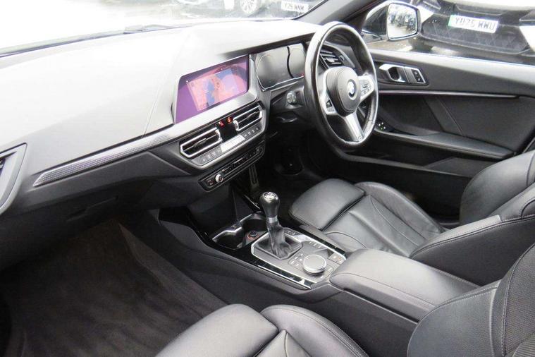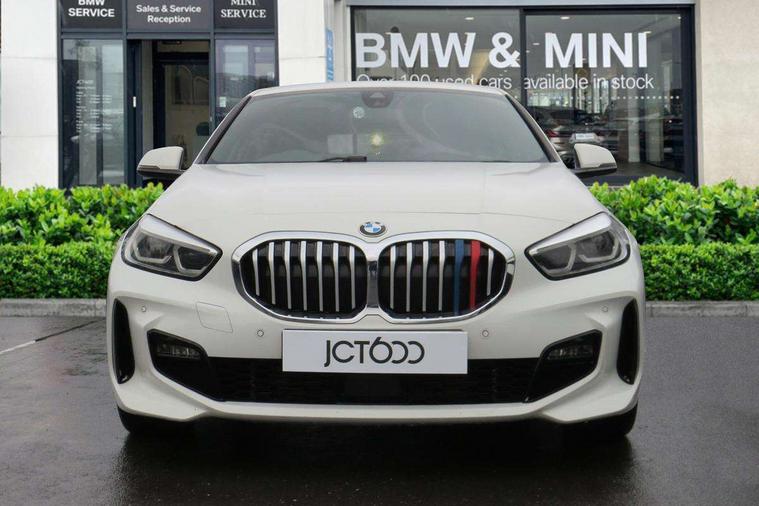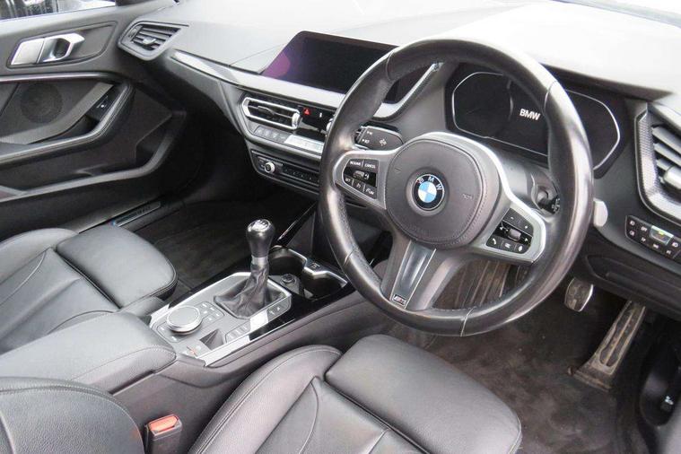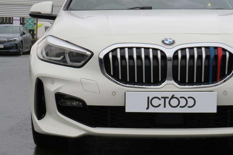 Active guard plus, Attentiveness assist, BMW Online services, BMW Teleservices, Check Control warning system for monitoring of lights and door/luggage compartment open warning, Connected eDrive Services, Cruise control with brake assist, Eco pro mode, Electric power steering with Servotronic steering optimised at all speed ranges, Integrated owners handbook, Lane departure warning system, Oil sensor for level and grade, On board computer, Optimum shift indicator, Personal Profile, Pull away assistant, Speed limiter, 6 speed manual transmission, Aluminium lightweight construction, Anti roll bar front and rear, Balancer shaft, Diesel particulate filter, Drive Performance Control, Electronic differential lock, Bluetooth audio streaming, DAB Digital radio, Auto dimming rear view mirror, Automatic headlight beam throw control, Body colour door handles, Body colour mirror caps, Chrome 'M' logo side designation, Chrome exhaust twin tailpipes round 90mm in left and right split, Chrome kidney grille frame with Satin Aluminium struts, Direction indicator side lights in exterior mirrors, Electric folding and anti dazzle exterior mirrors, Fading support, Follow me home headlights, Front and rear electric windows with open and close fingertip control, anti trap facility and comfort closing, Front door sill finishers in black plastic with BMW designation, Green tinted heat protection glazing, Heated, electrically adjustable exterior mirror aspheric on driver side, convex on passenger side, High gloss shadow line exterior trim, High gloss shadowline window frame, Recess cover mirror frames and B/C pillar embelisher trim, High level third brake light, LED daytime running lights, LED eyebrow turn indicators, LED front fog lights, Lightweight engineering, Matt black air guide grilles, Model designation on right side of tailgate, Nearside reverse light in rear light cluster, Preparation for high beam assistant, Rain sensor including auto headlights activation, Rear fog lights, Rear window wiper, Shark fin antenna, Visible VIN plate, Welcome lighting, Windscreen wipers with integrated washing jets, 12V power socket in centre console, 2 cupholders in front centre console, 3 rear seat head restraints, 3 spoke M sports design leather steering wheel finished in nappa leather with specific M badge, Anthracite headlining, Anthracite Velour floor mats, Child seat ISOFIX attachment for two outer rear seats and front passenger seat with anchorage points, Conditioned based service, Dakota leather upholstery with perforation and contrast stitching, Driver and front passenger seat heating, Driver side folding compartment in instrument panel, Folding rear clothes hook, Folding rear seats, Four grab handles integrated in roof lining, Front and rear door pockets, Front and rear side armrest integrated into door trim, Front Armrest foldable with integrated storage compartment, Front sports seats with electric side bolster adjustment, Gearshift lever with M designation, Glove compartment, Height adjustable front head restraints, Manual adjust steering wheel, Multi-function controls for steering wheel, Rear seat backrest with manual 60:40 split folding with 3 top tether clips integrated on rear of seat panels, Storage compartment in centre console, Sun visors with vanity mirrors and insert tab, Two zone automatic air conditioning, Connected pack professional - 1 Series, Extended Lighting pack - 1 Series, Extended storage pack - 1 Series, Interior lights pack - 1 Series, Luggage compartment pack - 1 Series, M Sport exterior styling aerodynamics pack - 1 Series, 2 tone horn, 3 point seatbelts on all seats, front pyrotechnic belt tensioners, stopper and belt force limiters, rear coded belt buckles, Airbags - Front driver and passenger, front and rear head, front side, curtain head protection, Anti lock braking system (ABS) with brake assist, BMW emergency call, Brake drying, Braking readiness, City braking function, Crash sensor activating central locking release, hazard warning lights, fuel cut off, interior lighting + activation of safety battery terminal clamp, Driver and front passenger seat belt security check, Dynamic stability control + (DSC+), Dynamic Traction Control - DTC, Electrically operated hand brake, Front and rear disc brakes, Front passenger manual airbag deactivation, Rear child proof door locks, Seatbelt warning, Side impact protection, Tyre pressure monitoring system, Warning triangle and first aid kit, Automatic drive away locking facility, Central locking switch for all doors, fuel filler cap and luggage compartment, Deadlocking function system to all doors, Incorrect fuel protection system, Locking wheel bolts, Remote control with integrated key with High-gloss Black inlay and M designation and 1 button for open/ close lock, window, open luggage compartment, Start/stop button with comfort go keyless engine start and auto start stop deactivation button, Thatcham Cat.1 alarm and immobiliser, Contrast stitching on instrument panel, Reduced rolling resistance tyres,