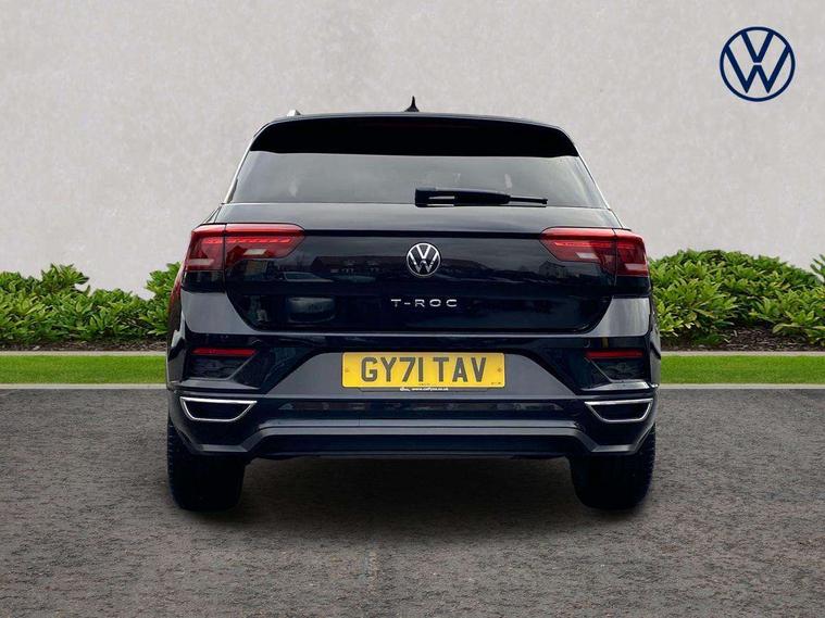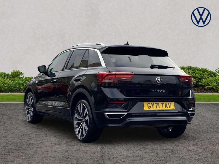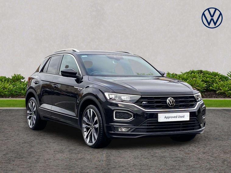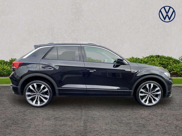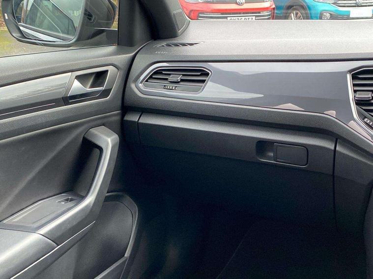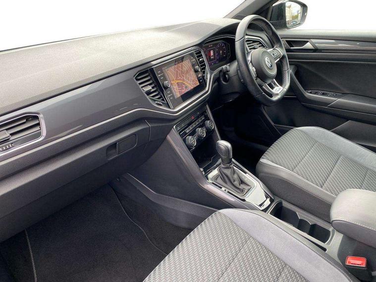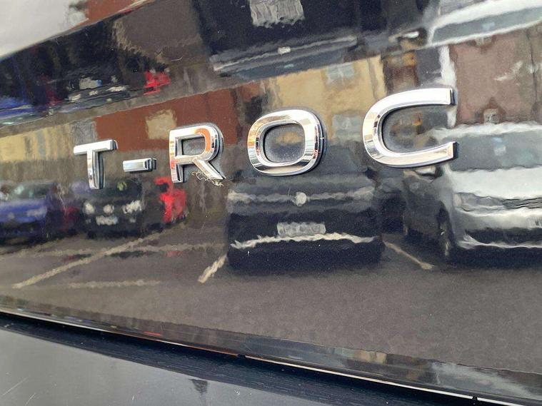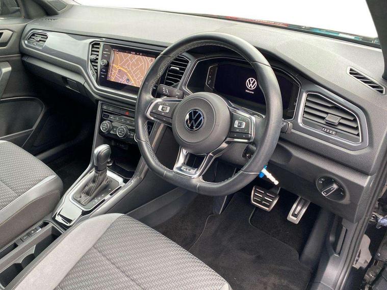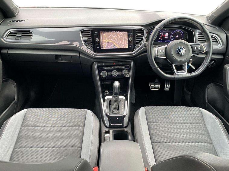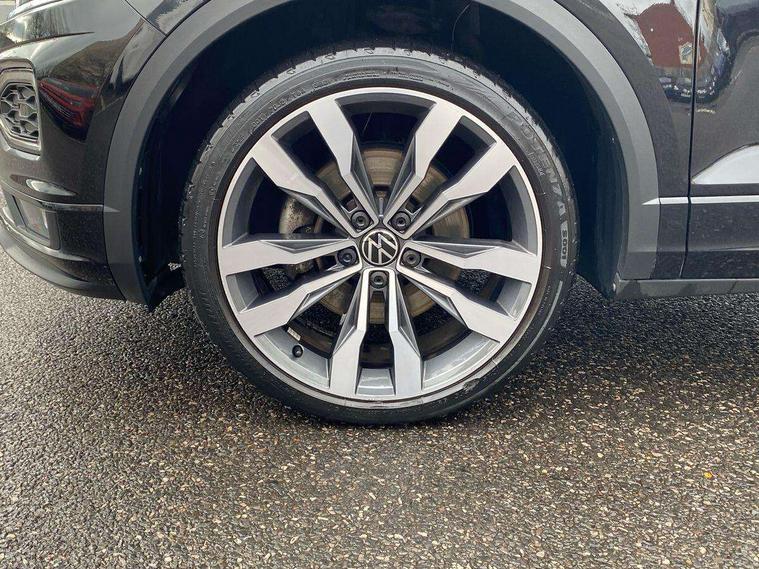 'Lights On' Reminder warning buzzer, Adaptive cruise control, Bluetooth telephone and audio connection for compatible devices, Car information display, Digital Cockpit Pro - Active info display, Driver alert system with audible and visual fatigue detection system, Driver tips and journey analysis, Emergency call service, Lane assist with warning text instrument cluster, Modified key software - reduce switch off time for key status change to Long no motion, Multifunction camera, Multifunction computer with visual gear change recommendation for fuel consumption, Navigation system discover media including streaming and internet, Service interval indicator, Think blue trainer driver tips and journey analysis, Traffic sign recognition, Voice activation, Warning sound and light for front seatbelts unfastened, Wireless app connect for apple carPlay, Battery regeneration during braking, Rear shock absorption for sports version, Start/stop function with battery regeneration, DAB Digital radio, Disk brakes in front, Diversity antenna for FM reception, Music playback - MP3, WMA and AAC files, Premium USB cable in choice of either Apple or Android smartphone compatibility, SD card slot, Simultaneous pairing of 2 compatible mobile devices, SMS functionality - read, compose and send SMS messages using touch-screen display, Storage compartment with longitudinal and height adjustable in armrest and two rear air vents, Three route options - Fast, Short, Eco, Title and cover art display, USB-C Interface and USB charging socket, Auto dimming interior rear view mirror, Automatic coming/leaving home lighting function and daytime running lights, Automatic hazard lights activation under emergency braking, Black grained lower door protectors, Body colored door lower parts, Body colour door handles, Body colour rear roof spoiler, Chrome effect left and right trapezoid exhaust tailpipe fascia surround, Chrome plated moldings, Chrome trim on upper and lower radiator grille, Dusk sensor, Dynamic headlight range control with self adjusting whilst driving, Electrically foldable, adjustable and heated door mirrors with puddle lights and reverse activated kerb-view adjustment on passenger's door mirror, External USB type C socket and charging sockets, Front and rear electric windows, Front fog lights with static cornering function, Front windscreen wiper with intermittent wipe and 4 position delay, Fully galvanised body, Heated rear window, Heated windscreen washer jets, High level 3rd brake light, LED darkened rear light clusters, LED headlamps with automatic range adjustment and unique signature LED separate daytime running lights, LED rear number plate lights, LED tail lamp rear comination lamps, Privacy glass, R-Line design body coloured bumpers, Rain sensor, Rear tinted glass from B-pillar backwards approx 65% tinted, Rear wash/wipe with intermittent wipe setting, Silver anodised roof rails, Volkswagen roundel, 12V socket in centre console storage area, 3 rear head restraints, 4 load lashing points in luggage compartment, Aluminium pedals, Black roof lining and sun visors, Branded points of interest, Carbon flag cloth upholstery, Chrome plated radiator grille inserts, air vent surrounds and light switch surrounds, Climate control - 2 zone electronic air conditioning with automatic air recirculation and allergy filter, Door and side trim panel, Door and side trim panel in foam film, insert in leatherette, Drawer under drivers seat, Front + rear carpet mats, Front centre armrest, Front cupholders x 2, Front seat back storage pockets, Front sports seats with R-Line logo on seat backrest, Glovebox, Heated front seats, Height adjustable front seats, Height/reach adjust steering wheel, Instrument lighting, white adjustable panel illumination, Interior light delay, Interior light in footwell, Isofix easy fit child seat preparation for 2 outer rear seats, Leather gearshift knob, Leather multi function sport steering wheel with gear change selection via paddle shift on steering wheel, LED interior light with switch off delay/dimmer and 2 front/rear LED reading lights, Load through provision with single cup holder when folded down, Luggage compartment cover, removable, Luggage compartment lighting, R Line badge, Scuff plates in door apertures, Split folding rear seat backrests with centre armrest, Stainless steel pedals, Storage compartment in left and right luggage area, Storage compartment in rear doors, Storage compartments in driver and front passenger doors, Sunvisors with illuminated vanity mirrors, Unique R Line door sill protectors, White ambient lighting, R line styling pack - T-Roc, Winter pack - T-Roc, 3 rear three point seatbelts, ABS, Curtain airbags, Driver and front passenger safety-optimised head restraints, Drivers and front passengers airbags with passengers deactivation switch, Drivers seatbelt reminder, Electronic parking brake with auto hold, Electronic stability control (ESC) includes ASR, EDL, EDTC and trailer stabilisation function, Front assist with city emergency braking and pedestrian monitoring, Front seat side impact airbags, Hill start assist, Predictive pedestrian protection, Rigid safety cell with front and rear crumple zones, Single tone horn, Three point height adjust front seatbelts + pretensioners, Tyre pressure loss indicator, Ventilated front and rear disc brakes, Volkswagen roadside assistance, Alarm with remote central locking and interior protection, Electronic engine immobiliser, Remote central locking with SAFELOCK, radio remote control with 2 remote control folding keys, Shadow grey decorative inserts in dash, centre console and door panel, 19" Suzuka alloy wheels with low rolling resistance tyres and anti wheel bolts,