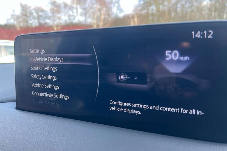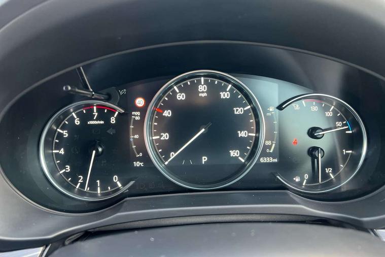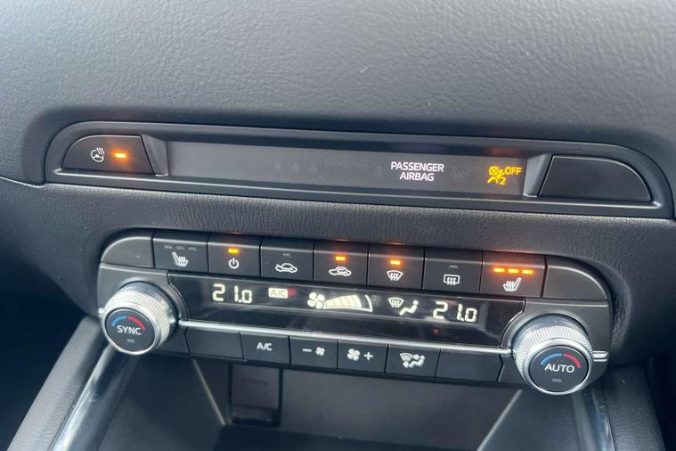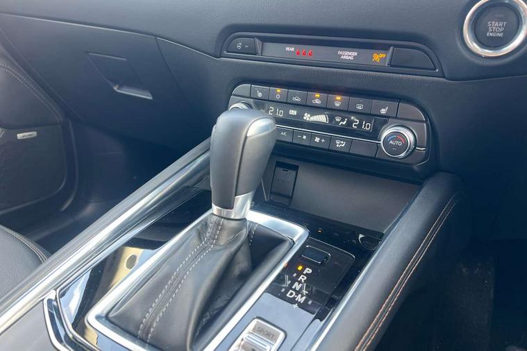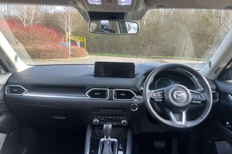 10.25" display with Mazda Connect infotainment, 7" colour TFT display, Advanced blind spot monitoring, Bluetooth connectivity with voice control, Collision prevention assist, Connected services, Cruising Traffic Support, Drive mode selector, Electric power steering, Emergency stop signalling system, Engine start/stop button, Forward collision warning, Front and rear parking sensors, Integrated navigation system, Intelligent speed assist, Lane departure warning system, Lane keep assist, Power liftgate, Qi wireless phone charging, Radar cruise control with Stop and Go, Rear cross traffic alert, Reversing camera, Service indicator, Traffic sign recognition (TSR), Trip computer, Windscreen projected colour active driving display (HUD) with memory, Wireless apple car play/android Auto, Cylinder Deactivation, i-stop, AM/FM radio, Bluetooth audio streaming, Bose premium sound system with 10 speakers, DAB Digital radio, Multimedia Commander including separate volume dial, Steering wheel mounted audio controls, Adaptive front lighting system, Auto dimming rear view mirror, Automatic headlights, Black inlay dashboard panel, Body colour door mirrors, Body colour roof spoiler, Body coloured front and rear black lower bumper mouldings, Coming/leaving home lighting function, Door mirror integrated indicators, Dual chrome tailpipes, Dusk sensitive headlamps, Electric front/rear windows with one touch auto up/down, Front grille in gloss black finish, Front grille in gloss black finish with chrome signature wing, Gloss black B and C pillars garnish, High beam assist, Intermittent rear wash/wipe, LED auto levelling, LED daytime running lights, LED front fog lights, LED Headlights, LED third brake light, Power folding and heated door mirrors, Power tilt/slide sunroof, Privacy glass (rear side windows only), Rain sensing front wipers, Rear side wing doors, Satin black side mouldings, Scuff plates, Shark fin antenna, Signature LED rear combination lights, Variable intermittent front wash/wipe, Vinyl with wood grain metal inlay door trim panel, Windscreen wiper de-icer, 12v electrical power outlet, 3 seat bench in 2nd row, 3 stage heated front seats, 40:20:40 Karakuri fold-flat seat system, 6 way electric adjustable passenger seat, 8 way electric driver seat with lumbar support + memory, Cargo room flat floor board with waterproof undertray, Driver seat power slide, recline and height adjustment, Driver, Front passenger and two rear grab handles with coat hooks, Driver/passenger front seatback pockets, Driver/passenger sunvisors + illuminated vanity mirrors (drivers with ticket holder), Dual zone climate control, Folding centre armrest with 2 cup holders, Front and rear door pockets, Front centre storage with two cupholders, Front passenger seat power slide, recline and height adjustment, Heated steering wheel, Humidity sensor, Illuminated glovebox, Interior dome light with integral spotlight, ISOFIX child seat anchorage points attached on outer rear seats, Karakuri tonneau cover, Leather upholstery, Leather wrapped steering wheel and gear knob, Light roof lining, Luggage compartment LED lighting, Luggage compartment power outlet, Paddle shifts, Rear air vents, Rear headrests, Rear seat recline, Roof mounted sunglasses holder, Single front passenger seat, Three height adjustable head restraints, Tilt/height adjustable steering wheel, USB Connectivity (2x front Type-C, 2x rear Type-B), White interior LED illumination lighting, 3 point front seatbelts with pre-tensioners, 3 rear 3 point seatbelts, ABS, Advanced Smart City Brake Support - SCBS, Child locks on rear doors, Driver and front passenger side airbags, DSTC-Dynamic Stability and Traction Control, Dual front airbags, Electronic brake force distribution, Electronic parking brake with auto hold, ESP, Front and rear curtain airbags, Front passenger airbag deactivation, G-Vectoring control, Hill hold assist, Seatbelt reminder front and rear, Single stage passenger airbags, Smart brake support with forward obstruction warning, Tyre pressure monitoring system, Automatic door locking when moving off, Deadlock, Immobiliser, Power door locks, Remote central locking, Smart keyless entry, Thatcham Cat.1 alarm, 19" diamond cut black alloy wheels, Tyre repair kit,