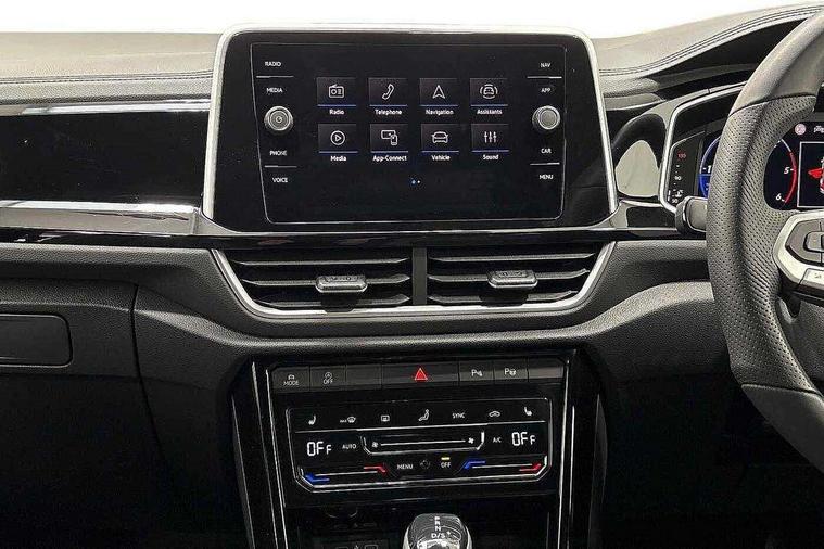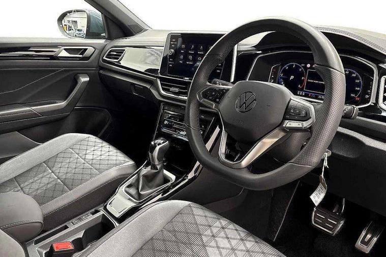 10.25" Digital cockpit pro, Advanced driver attention and drowsiness monitor, Dynamic road sign display, Emergency call service, Lane keeping system Lane Assist, Mobile phone interface, Modified key software - reduce switch off time for key status change to Long no motion, Online services, Park assist including front and rear parking sensors, Service interval indicator, Tailgate/trunk lid release from outside, Think blue trainer driver tips and journey analysis, Warning sound and light for front seatbelts unfastened, Wireless app connect, Battery regeneration during braking, Start/stop function with battery regeneration, DAB Digital radio, Diversity antenna for FM reception, Front and rear 6 speakers, Music playback - MP3, WMA and AAC files, Premium USB cable in choice of either Apple or Android smartphone compatibility, SD card slot, Simultaneous pairing of 2 compatible mobile devices, Title and cover art display, We Connect and We Connect Plus functionality, Auto dimming interior rear view mirror, Automatic hazard lights activation under emergency braking, Automatic headlight control with LED separate daytime running lights with coming/leaving home function, Body coloured exterior mirror housings and door handles, Electrically adjustable and heated door mirrors, Extended roof spoiler, Exterior mirrors aspherical on driver side, convex on front passenger side, External USB type C socket and charging sockets, Front windscreen wiper with intermittent wipe and 4 position delay, Heated rear window, LED 3rd brake light, LED rear combination lamps, LED rear number plate lights, Power windows with comfort operation and circuit breaker, Privacy glass for rear side windows and rear window, R-Line design body coloured bumpers, Rain sensor, Rear exhaust tailpipe, Rear fog light on one side and reversing lights on both sides, Rear side wing doors, Rear wash/wipe with intermittent wipe setting, Remote electrically foldable door mirrors, puddle lights and reverse activated passenger's door mirror, 12V power socket in centre console, 3 rear head restraints, 3 seat bench in 2nd row, 4 load lashing points in luggage compartment, Air care climatronic air conditoning system with active combination filter and 2-zone temperature control, Black roof lining, Chrome plated decorative trims, Chrome plated radiator grille inserts, air vent surrounds and light switch surrounds, Door and side trim panel with leatherette insert, Front + rear carpet mats, Front centre armrest, Front cupholders x 2, Front footwell illumination, Front reading light, Front scuff plates with R Line logo, Front seat back storage pockets, Glove compartment door with light, Instrument lighting, white adjustable panel illumination, Interior ambient lighting and surround lighting, Interior light delay, Isofix child seat preparation, Leather gearshift handle, Load-through provision with cup holder when folded down ('Unsplit rear seat bench, split folding backrest, with centre armrest), Luggage compartment lighting, Single front passenger seat, Stainless steel pedals, Storage compartment in left and right luggage area, Storage compartment in rear doors, Storage compartments in driver and front passenger doors, Sunvisors with illuminated vanity mirrors, Variable boot floor, height adjustable and removable, Driver assistance pack without proactive passenger protection - T-Roc, 3 point height adj front seatbelts + pretensioners, 3 point seatbelts in outer rear with ECE label, ABS, Child locks on rear doors, City emergency braking and pedestrian monitoring, Driver and front passenger airbag with front passenger airbag deactivation, Driver and front passenger safety-optimised head restraints, Drivers seatbelt reminder, Electronic parking brake, Electronic Stability Control (ESC) inc EDL (Electronic Differential Lock) and ASR (Traction Control), Front and rear passengers curtain airbag system including front side airbags, Hill start assist, Predictive pedestrian protection, Rear disc brakes, Two tone horn, Tyre pressure loss indicator, Volkswagen roadside assistance, Piano black decorative inserts in dashboard and front door trim panels, Trims for alloy wheels,