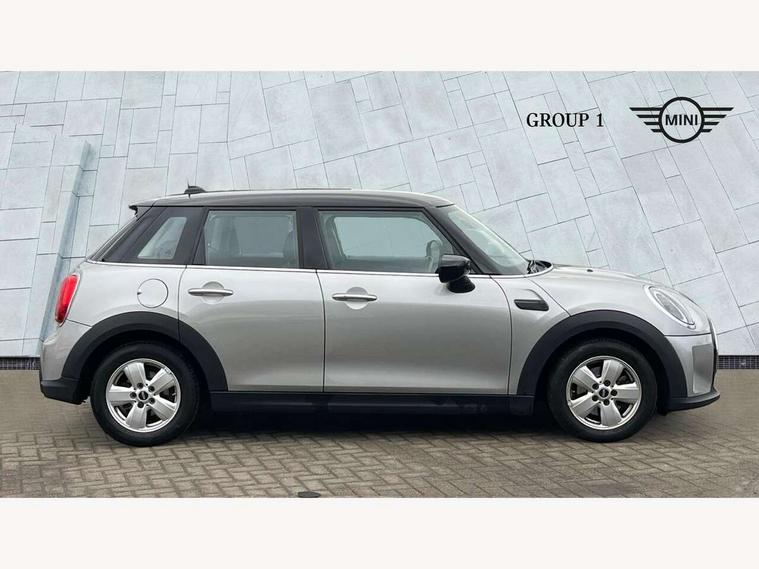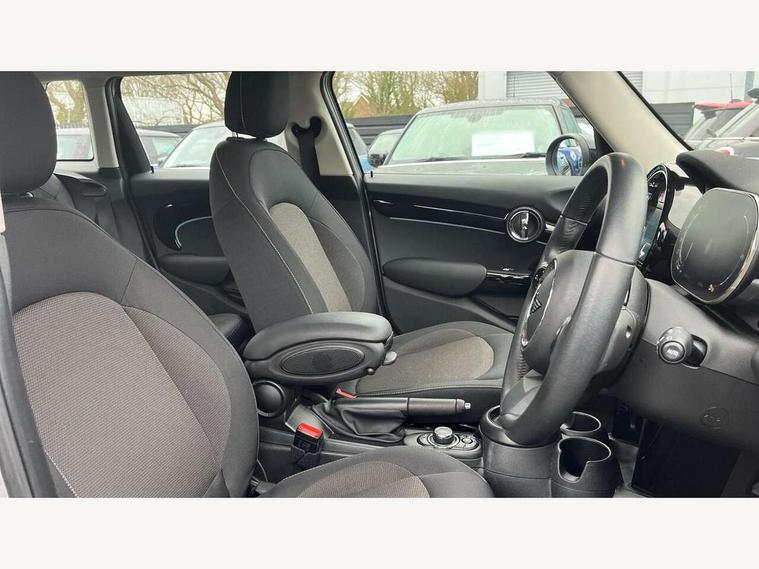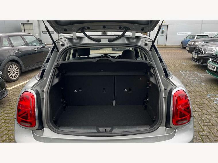Apple CarPlay, Automatic start/stop function with brake energy recuperation, Compatible mobile phone bluetooth with audio streaming, Cruise control with brake assist, Electro-mechanical speed dependant steering assistance, Flexible car sharing preparation, Instrument cluster, Mini E-call, MINI TeleServices, On board computer, Service interval indicator, Double Vanos system, Fully variable valve control, Gear change indicator display, High precision injection, Performance Control, Steptronic transmission with double clutch, 8.8" touchscreen with LED ring, FM tuner and DAB digital radio, 3rd brake light, Automatic headlight activation switch, Body colour fuel filler cap, Chrome border high gloss black slats radiator grille, Dynamic brake lights, Electric front+rear windows, Exhaust tailpipe on left with chrome finisher, Heated rear window, Heated windscreen washer jets, LED headlight with closed ring and daytime driving lights, Metal door sill strips with MINI imprint, Model logo Cooper on right of tailgate, Rain sensor window wipers, Rear fog lights, Rear LED lights with union jack design, Rear side wing doors, Rear window wiper, Side scuttle panel with integrated indicator, Sun/heat protection glass, White indicator lenses, 12V Accessory socket in centre console, 3 seat bench in 2nd row, 4 lashing eyes in luggage compartment, 60/40 split folding rear seat, Ambient lighting, Carbon black colour line - Knee roll and door armrest, Chrome interior highlights, Cupholders, Front and rear head restraints, Front and rear isofix with front passenger airbag deactivation, Front and rear velour floor mats, Glove compartment, Height and length steering column adjustment, Interior lighting with 12 different colours across the dashboard, underneath door bezel with illuminated laser-engraved design on central display, Leatherette gearshift lever and handbrake gaiters, LED reading lights, vanity mirror lights, front foot well light and spotlight on front seats, Manual air conditioning, Mechanical seat adjustment - forward/back & backrest for front seats and driver seat height adjust, Multifunction steering wheel, Satellite grey headlining including grab handles and clothes hooks, Single front passenger seat, Sport leather steering wheel with speed limiter and audio/communication controls, Storage compartments in doors, Sunvisors with vanity mirrors, 3 point seatbelts on all five seats, 6 Airbags - front, side, head and seat belt tensioners, Anti-lock braking system (ABS), Child locks on rear doors, DSC - Dynamic Stability Control, Front and rear disc brakes, Hill start assist, Single tone fanfare horn, Tyre pressure monitoring system, Alarm system with tilt sensor, monitoring doors, bonnet interior and tailgate, Electronic vehicle immobiliser, Start/stop toggle with keyless go, Piano black interior trim, Tool kit, Tyre repair kit,