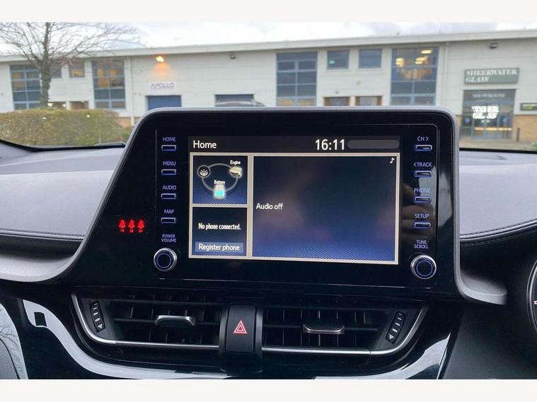 4.2" coloured TFT screen for multi-information display, Adaptive cruise control, Apple car play and Android auto, Bluetooth connectivity, E-call, Electric power steering, Hybrid system indicator, Lane departure alert with steering control, Lane trace assist, Push button start, Push button tailgate release, Remote boot door release in cabin, Remote boot door release in key, Reversing camera, Road sign assist - RSA, Smart voice assist, Trip computer, Voice recognition, Vehicle Stability Control (VSC), 6 speakers, AM/FM radio, DAB Radio (Digital Audio Broadcasting), Toyota touch 2 multimedia system with 8" display, USB connector, Wi-fi connectivity, Anti-jam protection on power windows, Auto high beam, Auto up and down function on all power windows, Automatic headlights, Automatic headlights cut-off, Black and body coloured rear bumper, Black lower front grille, Black upper front grille, Body colour door handles, Body colour door mirrors, Body colour front spoiler lip, Body coloured front bumper, Boot door release with push button, Electric heated door mirrors, Follow me home headlights, Front and rear power windows, Front fog lights, Headlight cut off reminder, Honeycomb lower front grille, LED daytime running lights, LED High mounted stop light, LED rear brake lights, LED rear combination lights, Manual headlight levelling, Manually retractable door mirrors, Noise reduction layer on front windows and windscreen, Power adjustable door mirrors, Rear side wing doors, Rear spoiler, Rear tailgate, Rear window defogger, Rear window wiper, Reflective LED headlights, Shark fin antenna, UV-filter on driver and passenger windows, UV-filter on rear windows, Variable front intermittent wipers, 12v power outlet - front, 3 rear headrests, 3 seat bench in 2nd row, 3 spoke leather steering wheel, 60/40 split folding 2nd row rear seats, Adjustable rear headrests, Adjustable speed limiter switch on steering wheel, Assist grips front and centre pillar, Audio and telephone switches on steering wheel, Black front door assist grips, Boot light, Chrome interior door handles, Cloth upholstery, Driver and front passenger personal light, Driver and front passenger Whiplash Injury Lessening seats, Dual zone automatic air conditioning, Floor mats, Front cupholders, Front head restraints, Front sports seats, Glovebox with internal light, Hard tonneau cover, Hooks for luggage holding net, Humidifying Nanoe air purifier, Illuminated entry system, Isofix attachments on outer rear seats, Leather gearshift, Light on driver sun visor, Light on passenger sun visor, Manual telescopic steering wheel, Manual tilt steering wheel, Manually adjustable lumbar support on driver seat, Manually height adjustable driver seat, Manually height adjustable front passenger seat, Manually reclining driver seat, Manually reclining front passenger seat, Manually sliding driver seat, Manually sliding front passenger seat, Microphone on front personal light, Mirror on driver sun visor, Mirror on passenger sun visor, Multimedia switches on steering wheel, Pollen filter, Shopping bag hooks, Single front passenger seat, Slow opening on lower glovebox, Voice recognition switch on steering wheel, 16 Disk front wheel brake, 3x3 point rear seatbelts, ABS+EBD+Brake assist, Electronic parking brake, Front and rear seatbelt reminder, Front passenger airbag on/off switch, Hill start assist control (HAC), Pre collision system with pedestrian detection, Pre-tensioners and force limiters, Rear door child safety locks, SRS Airbags - Driver + Front passenger, front side, front and rear curtain and driver's knee airbags, Toyota safety sense, Tyre pressure monitoring system, Tyre pressure warning system, Acoustic vehicle alert system (AVAS), Glass-breaking alarm sensors, Immobiliser, Intrusion alarm, Intrusion sensor, Motion sensor alarm, Power door locks, Power passenger window lock, Remote central locking, Black lower dashboard, Black upper dashboard, Grey deco line on upper dashboard, Matte black centre console, Tyre repair kit,