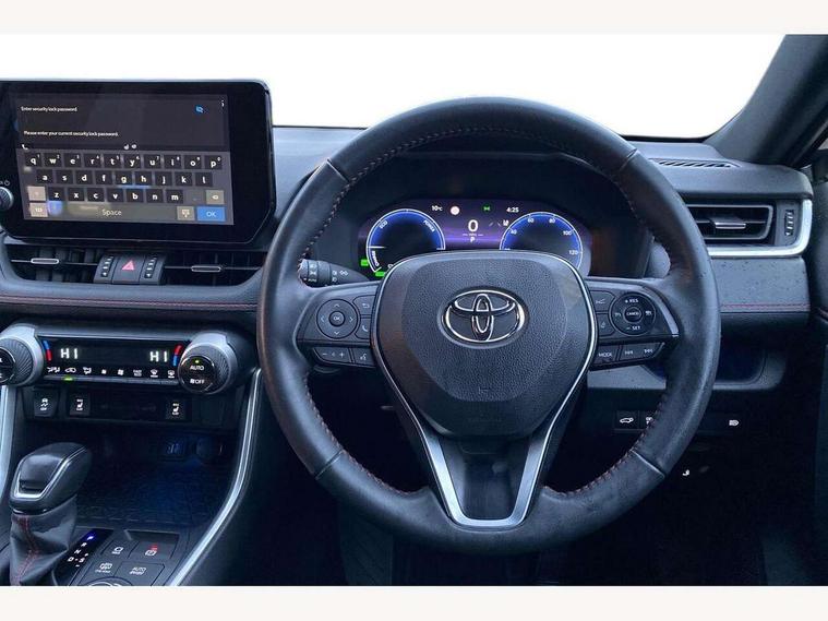 12.3" Combimeter, Analog tachometer, Apple car play and Android auto, Blind spot monitoring with rear cross traffic alert, Bluetooth system, Cyclist Detection, Digital speedometer, Drive mode selector, Driver attention alert system, eCall emergency call system, ECO-driving indicator, Electric power steering, EV audible alert, Front parking sensors, Full range intelligent adaptive cruise control, Hybrid system indicator, Lane departure alert with steering control, Lane trace assist, Lights on warning, Memory on adjustable speed limiter, MirrorLink, My T Connected services, Night Time Pedestrian Detection, Power boot opening and closing, Rear parking camera, Rear parking sensors, Remote boot door release in cabin, Remote boot door release in key, Road sign assist - RSA, Smart entry and push button start, Smartphone hazard lights notification, Smartphone integration, Toyota smart connect navigation, Traffic sign recognition, Trip computer, Voice control system, 6.6 kw fast charger, 7.5m cable with home charging plug, Vehicle Stability Control (VSC), 10.5" Toyota smart connect multimedia with wireless smartphone integration incl apple car play, 6 speakers, Auxiliary socket for external MP3 player, Digital audio broadcast (DAB)+, Gloss black surround on multimedia display, Multimedia Road Events, Rear USB connection, Toyota touch media system, USB in front armrest, Adaptive automatic high beam, Anti-jam protection on power windows, Auto dimming interior rear view mirror, Auto up and down function on power windows, Automatic headlights, Automatic wipers, Automatically retractable door mirrors, Black door moulding, Black front bumper, Black painted upper front grille, Black rear bumper, Black rear under-run, Black roof rails, Body colour door handles, Body coloured door mirrors, Body coloured rear spoiler, Body coloured Shark-fin antenna, Chrome window surround, Dual exhaust pipes, Electric adjustable door mirrors, Electric heated door mirrors, Electrochromatic rear view mirror, Emergency brake-light signal (EBS), Follow me home headlights, Front wipers with variable intermittent facility, Honeycomb upper front grille, LED daytime running lights, LED dual beam projector headlights, LED front fog lights, LED front light guide, LED High mounted stop lamp, LED Indicators, LED rear brake lights, LED rear combination lights, Power front windows, Power rear windows, Privacy glass, Rear side wing doors, Rear windscreen defogger, Rear wing door, Rear wiper, Silver front under-run, Smartphone remote power window operation, Trailer sway control, Turning signal integrated indicators in door mirrors, 1.5L front and rear bottle holder, 12 volt front socket, 12V power outlet - Boot, 220v power socket in boot, 2x Rear coat hooks, 3 rear headrests, 3 seat bench in 2nd row, 60/40 split fold rear seat back, Adjustable speed limiter switch on steering wheel, Array microphone, Black roof lining, Clean air filter, Cloth upholstery, Driver and front passenger personal light, Driver and front passenger Whiplash Injury Lessening seats, Driver and passenger seatback pockets, Driver and passenger sunvisors with illuminated vanity mirrors, Dual sided deck board in boot, Dynamic sports seats, Electric height adjustable driver seat, Energy saving heat pump, Floor mats, Folding rear centre armrest, Front and rear cup holders, Front centre armrest, Front headrests, Front leather armrest, Front/rear roof mounted assist grips, Gloss black surround on centre console, Heated driver and front passenger seats, Heated rear seats, Illuminated entry system, Isofix child seat preparation, Leather gear shift with chrome surround, LED boot light, LED centre room light, Lockable glovebox, Manual telescopic and tilt 3-spoke nappa leather steering wheel, Manually reclining and sliding front passenger seat, Multimedia switches on steering wheel, Pollen filter, Power height-adjustable sliding reclining and lumbar support for driver seat, Rear console box, Rear door armrests, Rear passenger air vents, Rear view display in display audio screen with dynamic guide lines, Reclining rear seats, Remote dual zone automatic air conditioning, Retractable tonneau cover, Satin chrome interior door handles, Single front passenger seat, Sunglasses holder, Telephone and voice recognition switches on steering wheel, White ambient lighting in footwell, White ambient lighting on front cup holders, White ambient lighting on open tray, 3x3 point rear seatbelts, ABS/EBD, Acoustic vehicle alerting system, Adjustable front driver and passenger seat belt extender, Brake assist function, Brake hold function, Child proof door locks, Collision mitigation braking system, Driver/Front Passenger airbags, Driver/front passenger side airbags, Drivers knee airbag, Electronic parking brake, Electronic Stability Programme (ESP), Front and rear curtain airbags, Front and rear seatbelt reminder, Front passenger airbag detector, Hill start assist, Passenger airbag cut-off device, Pedestrian detection, Pre collision system, Seatbelt pretensioners with load limiters, Supplemental restraint system (SRS) airbags, Toyota safety sense, Traction control, Tyre pressure warning, Glass-breaking alarm sensors, Immobiliser, Intrusion alarm, Light - on and Key in reminder, Motion sensor alarm, Power door locks, Remote central locking, Smartphone remote door lock, Speed sensitive auto door locking, Tilt detection sensors, Black centre air vent surround, Gloss black centre console, Open tray on passenger dashboard, Soft-touch black upper dashboard with silver insert, Soft-touch texture on lower dashboard, 18" 5 spoke grey machined face alloy wheels, Full size spare wheel,