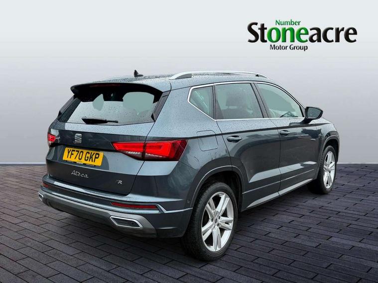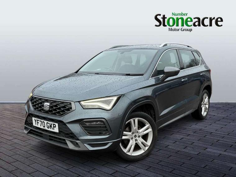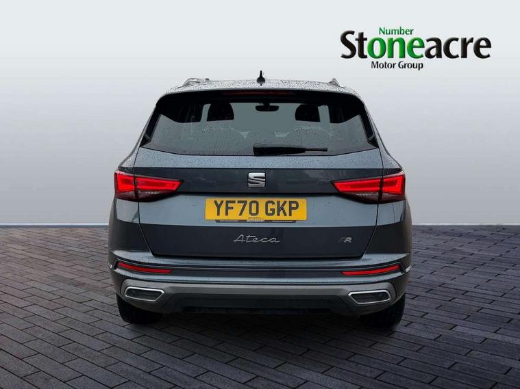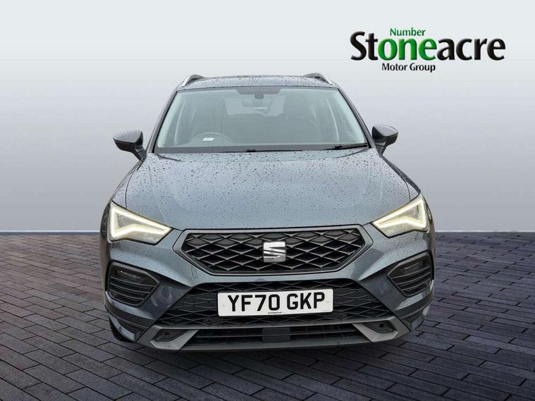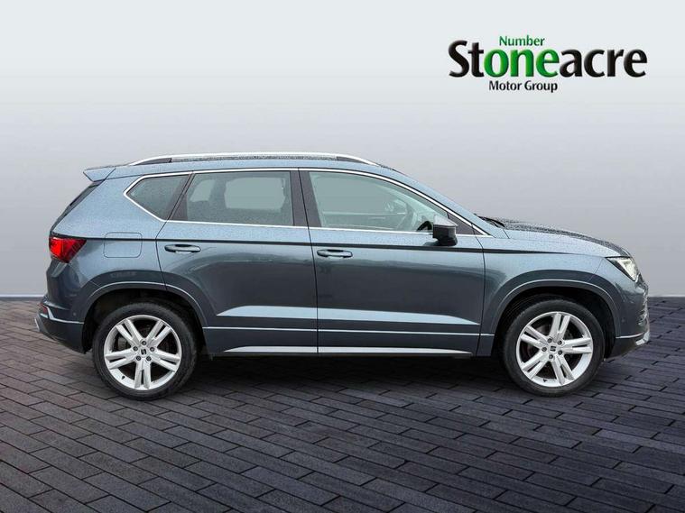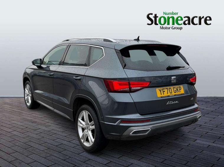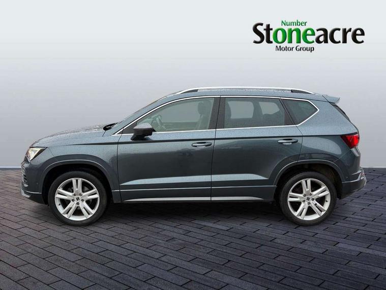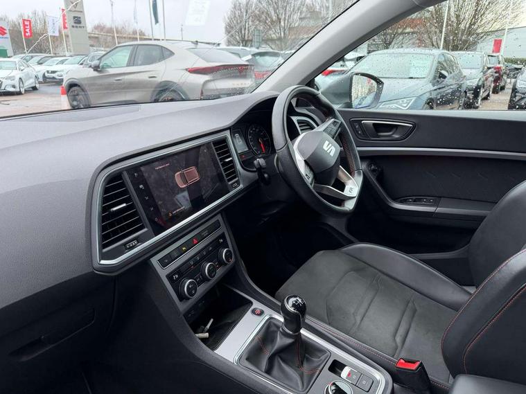 Cruise control system with speed limiter, Outside temperature gauge, Progressive power assisted steering, SEAT drive profile with driving experience button - Normal, Sport, Eco and Individual mode, steering and throttle response, Self parking functionality (includes front and rear parking sensors), Trip computer, Wireless full link smartphone integration, Wireless phone charger, Steering wheel mounted audio/phone controls, Body colour bumpers, Body coloured wheel arch surrounds, Chrome roof rails, Chrome side window trim, Cosmo grey front grille frame, Dark tinted rear windows, Daytime running lights, Door mirrors with welcome light silhouette, Dynamic headlight range control with self adjusting whilst driving, Electric adjustable/heated/folding door mirrors, Front and rear electric windows, Full LED headlamps with lens and LED front fog lamps with cornering function, Illuminated aluminium front door sill, LED rear tail lights with dynamic indicators, Rear fog lights, Rear spoiler, Rear wash/wipe, Simulated exhaust pipes in chrome frame, 12V socket in front, 60/40 split folding rear seat, Aluminium pedals, Dual zone climate control, Front and rear head restraints, Front centre armrest, Front seat back storage pockets, Height adjustable driver and passenger seat with lumbar adjustment, ISOFIX points in outer rear seats with top tether anchorage points, Leather steering wheel and gear knob, Microsuede upholstery with front sports seats, Multicoloured ambient lighting with LED interior illumination, Rear armrest and easy back seat release mechanism from boot, Storage compartment in roof console for sunglass, Storage compartment under driver's seat, Convenience pack - Ateca, Interior lighting pack - Ateca, Navigation system pack with DAB - Ateca, 3x3 point rear seatbelts, ABS, Traction control system (TCS), Electronic stability control (ESC) and Electronic differential lock system (XDS), Airbags - Driver and front passenger airbag with deactivation, front side, two curtain and driver's knee airbags, Electric parking brake with auto hold function, Front and rear seatbelt reminder, Front assist with autonomous emergency braking, Hill hold control, Tiredness recognition system, Traction control, Tyre pressure monitoring system, Alarm, Keyless entry, Locking wheel bolts, Chrome interior detailing, 18" Brillaint silver alloy wheels,