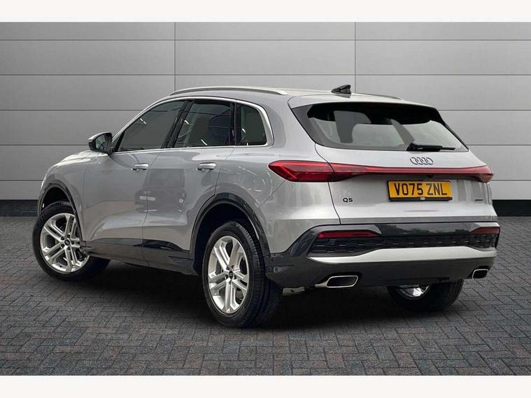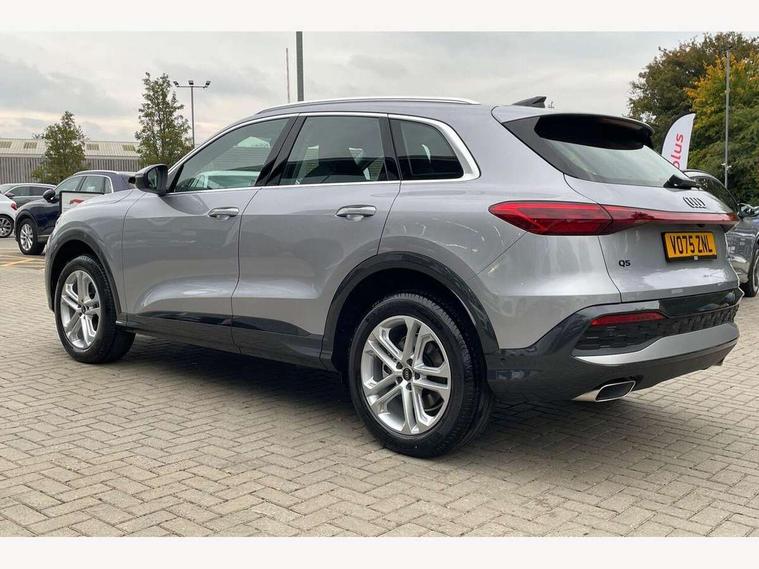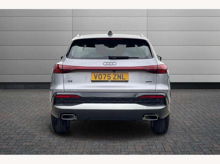 Adaptive cruise control, Advanced driver attention alert, Audi application store, Audi connect emergency call and service, Audi drive select, Audi smartphone interface, Audi virtual cockpit plus with 11.9" OLED colour display, Camera based traffic sign recognition, Fatigue monitor, Front cross traffic intersection assist, Lane departure warning system, MMI navigation plus with high resolution 14.5" OLED touchscreen colour display, Park assist plus, Parking system plus with 360 display, PAS, Reversing camera, Swerve assist and turn assist, Traffic sign based speed limiter, Comfort suspension, 2 USB-C ports in both the front and rear, Audi sound system impressive sound with 8 loudspeakers including centre speaker and subwoofer, 6-channel amplifier with a total output of 180 watts, DAB Digital radio, Smartphone compartment with wireless charging, Aluminium roof rails, Auto dimming rear view mirror, Body coloured door mirrors, Coming/leaving home lighting function, Contrast bumpers in Volcano grey metallic paint finish, Electrically adjustable heated and folding + automatically dimming exterior mirrors, Front and rear electric windows, Front door sill trims with aluminium inlays, illuminated, Headlight cleaning system, Heated rear window, High beam assist, High gloss window surrounds, LED headlights plus incl. digital DRL, dynamic coming and leaving home function with turning/all weather/motorway/manouevring and intersection lights, LED rear lights pro incl. dynamic rear indicators and illuminated light strip with animated coming and leaving home function, LED third brake light, Logo projection light in exterior mirrors, Rear and side windows with heat insulating glass, Rear side wing doors, Rear wash/wipe, Towbar preparation, Windscreen with acoustic glazing, 3 rear head restraints, 3 seat bench in 2nd row, 40:20:40 split folding rear seat bench with centre armrest and cup holders, Comfort centre armrest front, Deluxe 3 zone electronic climate control, Front and rear floor mats, Front seats with manual adjustment for position and 4-way electric lumbar support, Front sport seats with integrated head restraints, Heated front seats, i-Size child seat mounting on the front passenger side and outer rear seats, i-Size and top tether on the outer rear seats, Interior trim in aluminium look, Luggage compartment lid, electrically opening and closing, Manual steering column adjustment, Rock grey cloth headlining, Single front passenger seat, Softwrap in leatherette, Twin leather upholstery, Twin spoke leather steering wheel with multi-function buttons with touch control, shift paddles and trim in chrome look, Ambient lighting package plus - Q5, 3x3 point rear seatbelts, ABS, Acoustic vehicle alerting system, Driver and front passenger airbag with passenger airbag deactivation, Electric child safety locks, First aid kit with warning triangle and high visibility vests, Front emergency brake assist, Front side airbags with head airbag system and front interaction airbag, Hill hold assist, Rear seat occupant reminder, Tyre pressure loss indicator, Anti theft alarm, Anti-theft wheel bolts, Remote control key with SAFELOCK and keyless go, Accent surfaces and control buttons in gloss black, Black dashboard with contrast stitching, Matt brushed aluminium inlays, Steel grey seat stitching, Upper and lower interior elements in artificial leather, Tyre repair kit,