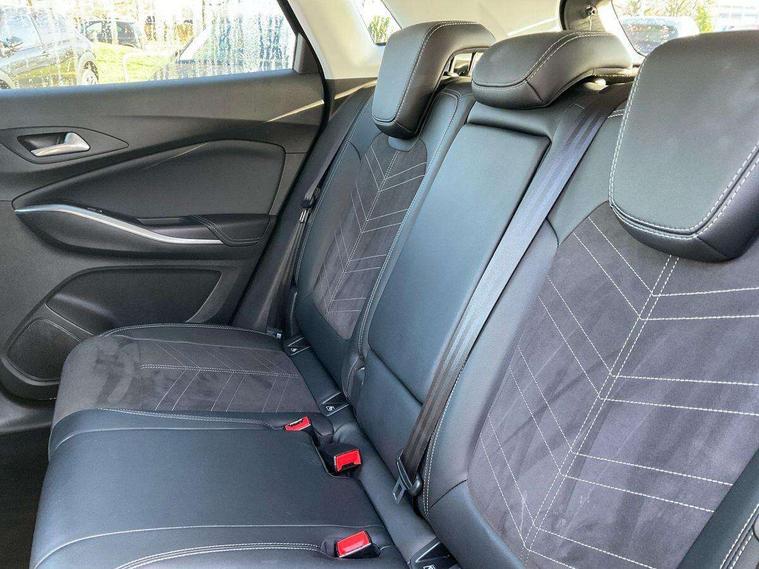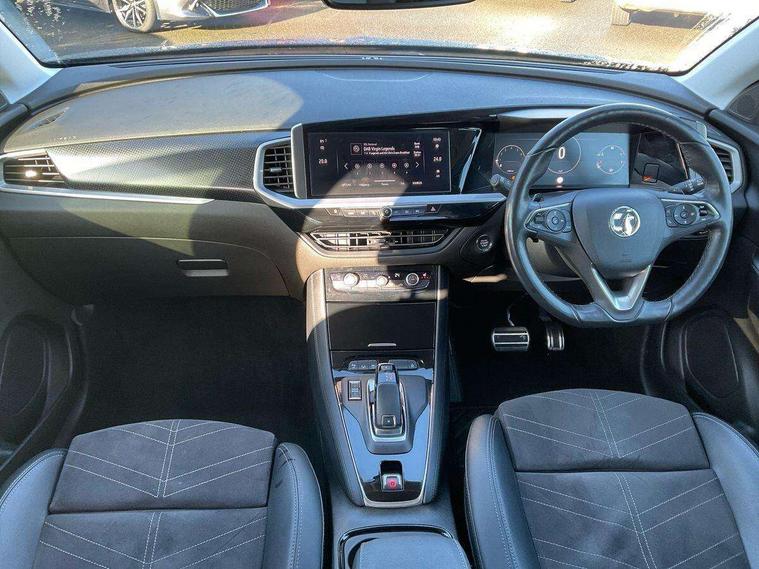 12" colour digital cluster, Central facia display with digital clock, outside air temperature and audio information, Digital fuel gauge with low fuel level warning light, Digital rev counter, Digital speedometer, Digital water temperature gauge with warning light, Driver drowsiness alert system, Driver information - Total mileage, service indicator, oil life, Front and rear parking distance sensors with 360 degree rear view camera and advanced park assist, Gearshift up/down indication light, Highway integration assist (Lane positioning assistant and Adaptive cruise control), Lane departure warning system, Lane keep assist, Lights on audible warning, Multi function trip computer - Trip odometer, vehicle range, average speed and fuel economy, instantaneous fuel economy and driving time, Multimedia navi pro with 10" colour touch+ sat nav+AM/FM/DAB radio, bluetooth audio streaming/mobile phone portal, Apple carplay/Android auto, USB, Power operated tailgate with foot sensor, Side blind spot alert, Speed sensitive electric power assisted steering, Speed sign recognition, Vauxhall connect including Emergency call (SOS e-call) and Breakdown call (b-call), Wireless charger for mobile devices, Six speaker - four front + two rear, Steering wheel mounted audio/phone/cruise controls, Alloy effect front and rear skid plates, Automatic lighting control, Automatically dimming anti dazzle rear view mirror, Black door mirrors, Black side window trim, Body colour door handles, Body colour lower front and rear bumpers, protective wheel arches and lower door cladding, Body colour upper front bumper, Collapsible windscreen wipers, Dark tinted rear side and tailgate windows, Door to door illumination, Electrically operated front and rear windows with safety auto reverse and one touch up/down facility, Front wiper system spraying directly from wipers, Hazard warning lights, Heated rear screen with timed cut off, Heated windscreen, High beam assist, High gloss black Griffin for Vizor and tailgate with high gloss black Grandland tailgate lettering, High gloss black roof rails, High level centre rear brake light, IntelliLux adaptive LED pixel headlights and LED tail lights, Intermittent rear window wash/wipe, LED daytime running lights, LED front fog lights, Magic wash, Manual headlight beam levelling, Rain sensor windscreen wipers, Rear side wing doors, Rear spoiler, Reversing light, Shark fin aerial, Silver effect protective front and rear skid plate, Soundproof insulated windscreen, Tinted windows, Twin electrically adjustable and heated power door mirrors (wide-angle on drivers side) with automatic timed cut-off, Two speed windscreen wipers with variable intermittent wipe, Upper and lower bumper design, Vizor front grille, Welcome lighting, 12v plug in front console and 12v plug in boot, 3 bench rear seats in 2nd row, 3 spoke flat bottom leather steering wheel with satin chrome effect bezel, 4 way electric driver lumbar support, 4 way passenger electric lumbar support, 60/40 split folding rear seat with centre rear seat armrest and load though facility, Advanced predictive logic control system using a sun sensor, Alcantara upholstery, Alloy sports pedals, Ambient centre console downlighter, Automatic air direction and fan speed with manual override, Charcoal filter, Chrome effect interior door handles, Covered storage compartment in centre console and in driver armrest, Driver's centre armrest, Drivers and front passengers seat with height, reach, tilt, backrest adjustment and seat cushion extension, Dual zone electronic climate control, Ergonomic active drivers sports style seat, Ergonomic active front passenger sports style seat, Front door pockets with 2.6 litre capacity, Front seat back storage pockets, Fully carpeted luggage area, Height adjustable headrests, Illuminated driver/passenger sunvisors with vanity mirror, Illuminated luggage area, ISOFIX on front passenger and rear outer seats, Luggage compartment cover, Reach + rake adjustable steering column, Rear centre seat head restraint, Rear door pockets with 1.8 litre capacity, Rear passenger compartment heating ducts, Rear reading lights, Two drinks holders in centre console, Winter pack - Grandland, Anti-lock braking system (ABS), Automatic emergency braking with pedestrian detection, Child proof locks on rear doors, CSC - Cornering stability control, Deactivation switch for front passenger front and side impact airbags, Deflation detection system, Driver airbag, Dual seatbelt pretensioners on front seats, EBD - Electronic brakeforce distribution, Electronic parking brake, Electronic stability program (ESP) including traction control, Front passenger airbag, Front seat side impact airbags, Full size curtain airbags for driver, front seat passenger and outer rear seat passengers, Hill start assist, Hydraulic Brake Assist (HBA), Inertia reel lap and diagonal seatbelts for all seats, Load limiters on outer rear seatbelt retractors, Pretensioners on outer rear seatbelt retractors, Smart seatbelt reminder for front and rear seats, Tyre pressure monitoring system, Deadlocking system, Electronically protected audio equipment, Engine deadlock immobiliser, Keyless entry and start, Locking wheel nuts, Remote control central locking activation switch on driver door, Remote security alarm system, Black door panels with black premium leather effect inserts, Dax decor facia panel with palladium medium finish, 19" diamond cut bi-colour alloy wheel, Tyre inflation kit,