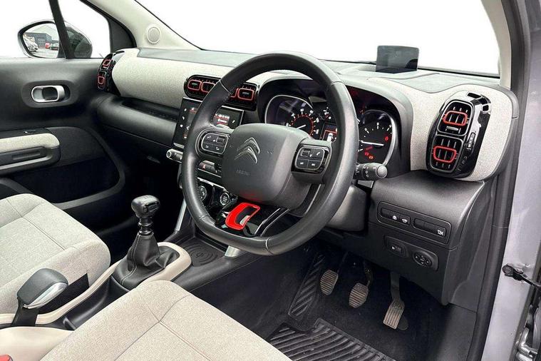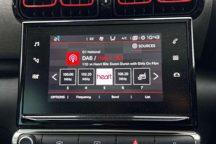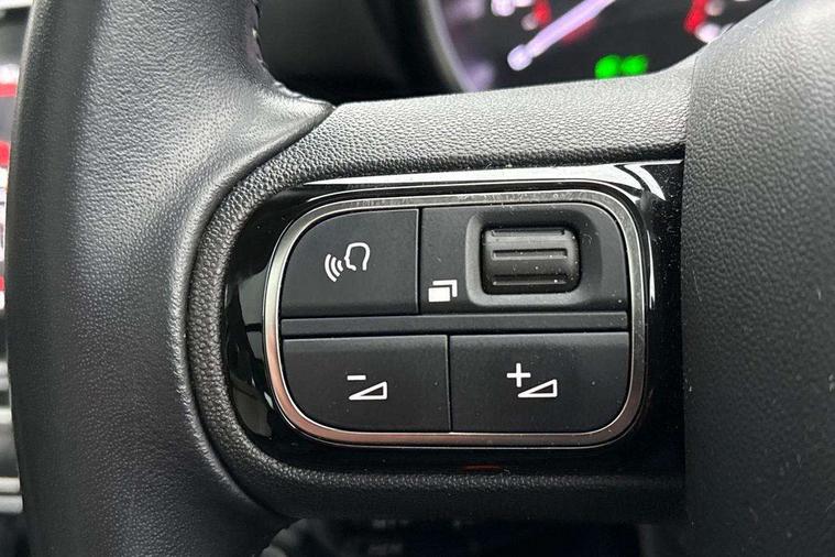 7" colour touch screen, Citroen connected nav with connect box and emergency assist system, Coffee Break Alert, Cruise control + speed limiter, Lane departure warning system, Mirror screen compatible with Apple Carplay and Andriod auto, Multi function on board trip computer, Rear parking sensors, Rev counter, Speed limit recognition and recommendation, Variable PAS, Bluetooth hands free and media streaming with USB socket and jack, Citroen connected DAB radio with 6 speakers, Steering wheel mounted controls for stereo and telephone, Auto dimming electrochrome rear view mirror, Automatic lights, Automatic windscreen wipers, Body colour bumpers, Body colour painted door handles, Dark tinted rear windows, Electric front windows + one touch + anti-pinch, Electric rear windows + anti-pinch, Electrically adjustable, heated and folding door mirrors, Front and rear aluminium effect bumper protectors, Front fog lights with cornering function, Halogen headlights with LED daytime running lights, Rear wiper, 0.5L Large bottle rear door storage, 1.5L Large bottle front door storage, 12 volt front socket, 12 volt rear socket, 60/40 split folding rear seat, Automatic air conditioning, Boot light, Driver and passenger sunvisor with courtesy mirror, Flex load/Pull out boot floor, Front courtesy reading lights, Height adjustable driver's seat, Height adjustable front headrests, Height and reach adjustable steering wheel, ISOFIX outer rear seats mounting points including top tether, Lashing eyelets in boot, Leather gear knob, Leather steering wheel with satin chrome inserts and radio controls, Rear centre armrest/ski flap, Sliding rear bench, Soft touch dashboard facia, Three height adjustable rear head restraints, Tilt adjustable rear seats (Two positions), ABS with Electronic brakeforce distribution and Emergency braking assistance, Active safety brake, Airbags - Driver/front passenger, front lateral and curtain, Drivers/passengers and rear seats unfastened seat belt warning, Electronic stability control, Five 3 point inertia reel seat belts, Forward collision alert, Front seatbelt pretensioners, Hill start assist function, Manual rear child locks, Tyre pressure monitor, Alarm, Automatic boot locking, Automatic door locking, Immobiliser, Keyless entry and start, Locking wheel nuts, Remote central locking + deadlocks, Satin chrome air vent decors, 17" Diamond cut 4 ever alloy wheels, Space saver spare wheel,
