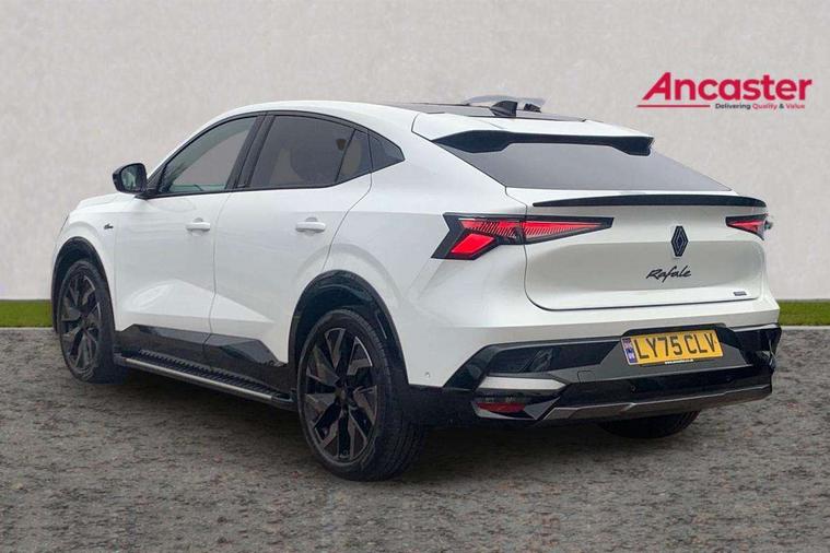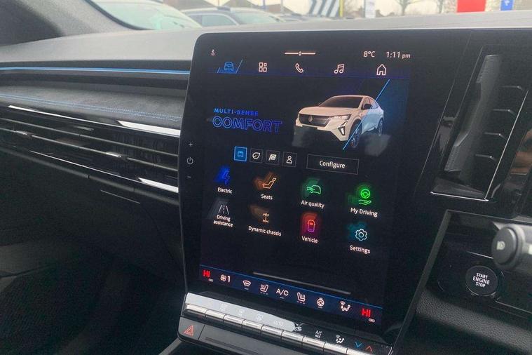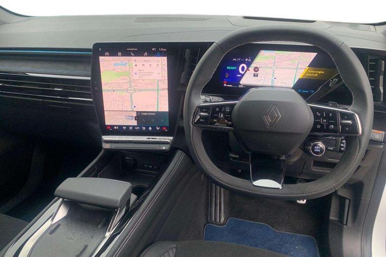 12.3" driver information display cluster, 4Control - 4 wheel steering technology, 9.3" head-up display, Blind spot warning and rear detection, Bluetooth, Digital rear view camera, Driver attention alert system, Electric power boot opening, Emergency lane keep assist including solid line, oncoming traffic and road edge detection, Engine start button, Exterior temperature display, Front and rear park assist with front, rear and side parking sensors, Front safe stopping distance warning, Intelligent contextual adaptive cruise control, Internet access, Lane centering assist, Lane change warning, Lane departure warning, Lane keeping assistance, Miles per hour configuration, MULTI-SENSE driving modes (eco, comfort, sport and personal), My safety switch: shortcut to personalise configuration of driving aids, Navigation system with build in google maps, PAS, Qrescue, Renault automatic emergency assist, Service interval indicator, Speed alert, Speed limiter, Traffic sign recognition, Trip computer, Voice control for navigation system with built in google assistant, Wireless apple car play/android Auto, Wireless phone charger, 12" open R link screen with built-in Google, Arkamys audio system with 6 speakers, DAB radio, Wi-Fi hot spot, 3rd brake light, Automatic headlights + automatic windscreen wipers, Automatic high / low beam, Black door mirrors, Body colour spoiler, Boot alloy kicking plate (trim on boot lip), Bumper grill background appears blue, Electric heated folding door mirrors, Esprit alpine exterior styling, Frameless auto-dimming rear view mirror with brightness adapt and rain sensor, Front and rear electric windows with one touch, Heated rear window, Heated windscreen, LED daytime running lights, LED rear lights with mirage effect, Matrix LED vision headlights, Privacy glass, Rear side wing doors, Rear wiper, Shark fin antenna, 12V socket in front, 2 front and 2 rear touch LED interior lighting, 3 rear headrests, 3 seat bench in 2nd row, 40:20:40 split folding rear bench seat, 6 way electric driver seats with 2 way lumbar and massage function, 6 way electric passenger seat with 2 way lumbar, Air purifier, Alcantara synthetic leather/fabric upholstery, Aluminium pedals, Automatic dual zone climate control, Black carpets, Blue trim within door pockets, Esprit alpine interior styling, Front headrests, Heated driver and front passenger seats, Heated steering wheel, Ingenious rear armrest with swivelling arms/foldout stands for devices and USB-C charging ports, Interior ambient lighting, ISOFIX child seat fixing points on rear outermost seats, Luggage compartment light, Manual height and depth adjustable steering wheel, Multifunction steering wheel, Paddle shift levers for regenerative braking, Single front passenger seat, Sliding centre console armrest with storage, Synthetic leather sport steering wheel with triple topstitching and alcantara finish, 3 point seatbelts on all rear seats, ABS, Active emergency braking system - Urban, pedestrian/cyclist with junction function, Adjustable driver and passenger safety seat belts, Approaching vehicle sound for pedestrians, Blue trim seatbelts on front seats and outermost rear, Collision avoidance braking, Driver and front passenger airbags, Driver knee airbag, Electronic brake distribution, Electronic parking brake with auto hold function, Electronic Stability Programme (ESP), Emergency brake assist, Front thorax airbags, Hill start assist and trailer stability assist, Manual passenger airbag deactivation function, Manual rear child locks, Multi-Collision braking, Occupant safe exit, Passenger knee airbag, Rear active emergency braking system, Rear traffic alert and rear pedestrian alert with rear automatic braking, Row 1 and 2 curtain airbags, Seatbelt load limiter, Seatbelt pretensioners, Seatbelt reminder, Side airbags, Tyre pressure warning light, Alarm, Hands free key card with Keyless access and start, Immobiliser, Locking wheel nuts, Remote central locking, Super locking system, 20" Castellet black diamond-cut esprit Alpine alloy wheels with smoked varnish,