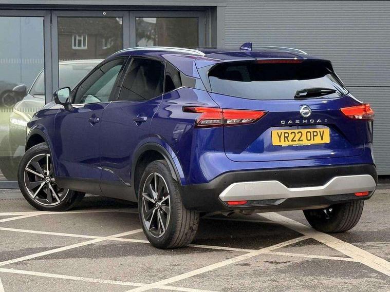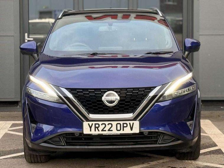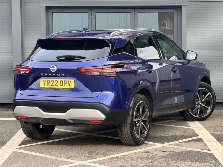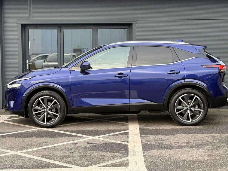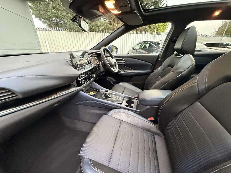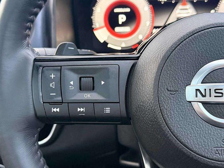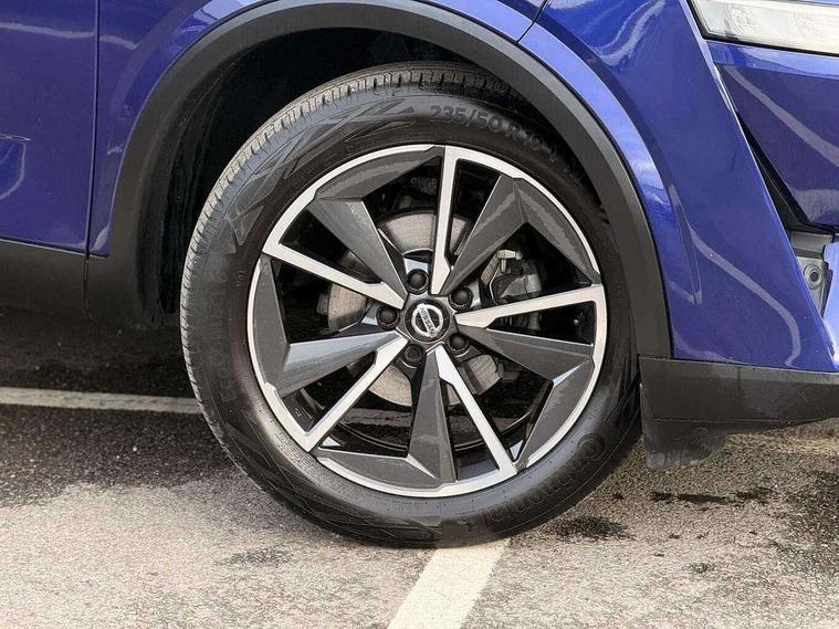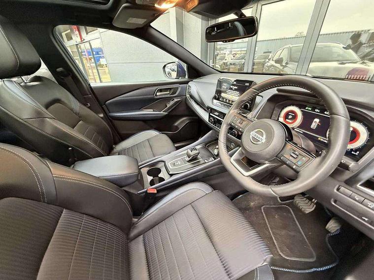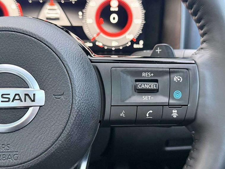 Blind spot warning, Drive modes (sport, normal, eco), Electric speed sensitive power steering, Emergency and breakdown call, Front and rear parking sensors, Full Digital 12.3" TFT Digital Combimeter, Google maps services - search, weather, 3D maps and Google street view, Hands free power tailgate, Idle stop/start system, Intelligent around view monitor, Intelligent Cruise control (ICC), Intelligent driver alert system, Intelligent forward collision warning, Intelligent lane intervention, Lane departure prevention, Lane departure warning system, Moving object detection, Nissan connect 9" touchscreen infotainment system, Nissan connect navigation, Push button starter, Rear cross traffic alert, Remote control services - door locks, lights, horn and car locator, Telematics - notifications and connectivity services, TomTom live traffic services, Traffic sign recognition with legal speed adjustment, Trip computer, Virtual personal assistant and firmware over the air capability, Wireless Apple CarPlay and wired Android Auto, Wireless charging pad, 6 speakers, AM/FM audio system with DAB, Bluetooth audio streaming, Front USB connections (Type-A and Type-C), Rear USB charging only ports (Type-A and Type-C), Auto dimming rear view mirror, Auto rear wiper when reversing, Body colour mirror caps, Body coloured door handles, Bodyside mouldings, Chrome side window finisher, Door handle with button, Dusk sensor, Electric auto folding door mirrors, Electrically adjustable and heated door mirrors with LED turn indicator, Fixed panoramic glass roof with electric sunshade, Follow me home headlights, Front and rear LED turning signals, Intelligent auto headlights, LED daytime running lights, LED rear lights, One touch front and rear electric windows with remote opening and closing, Partially body coloured bumpers, Privacy glass, Rear roof spoiler, Rear side wing doors, Rear styling plate, Roof rails, Shark fin antenna, Splash free rain sensing wipers, Super UV and infrared cut glass, Three blink turn signal, 12v power socket in dashboard and luggage, 2 way electrical driver lumbar adjustment, 2x Rear coat hooks, 3 bench rear seats in 2nd row, 3 rear headrests, 4 folding assist grip, 6 Luggage hooks - 4 on floor, 2 on side, 60/40 split folding rear seat bench, 8 way electric adjustable drivers seat, Ambient lighting around centre console, Ambient lighting in front doors, Centre console storage tray, Chrome interior door handles, Cloth/syntech leather monoform upholstery, Dark headlining, Driver and front passenger sunvisors with illuminated vanity mirrors, Driver seat back pocket, Dual zone automatic climate control with pollen filter, Front and rear door storage, Front cupholders x 2, Front door with bottle holders, Glovebox with light, Hard trunk cover, Height adjustable front headrests, Leather steering wheel, Luggage board system, Luggage space lighting, Manual lumbar support on passenger seat, Manually adjustable passenger (slide recline + lifter), Multifunction steering wheel, Passenger seat back pocket, PVC front centre console and armrest, Rear armrest with 2 cupholders, Rear door bottle holders, Single front passenger seat, Soft PVC kneepad, Steering wheel gearshift paddles, Steering wheel switches, Tilt/telescopic adjustable steering wheel, Two rear isofix child seat anchorage points with top tether, Welcome light and doors with console tray ambient lighting, Heat pack - Qashqai, Tech Pack (ProPILOT + HUD), 3x3 point rear seatbelt pretensioners + load limiters, ABS, ESP, EBD and brake assist, Active brake limited slip, Auto hold function, Child locks on rear doors, Curtain and front side, far side airbags, Driver and passenger airbags, Driver, passenger and 2nd row rear seat belt reminder, Electronic parking brake, Front seatbelt pretensioners + load limiters, Height adjustable front seatbelts, Hill start assist, Intelligent blind spot intervention, Intelligent front emergency braking with pedestrian, cyclist recognition and junction assist, Intelligent rear automatic braking, Tyre pressure monitoring system, Vehicle dynamic control, Capless fuel filler, Engine immobiliser, Nissan i-key, Rear bumper with silver insert, Remote central door locking with deadlocking, Thatcham Cat.1 alarm, 19" Alloy wheels,