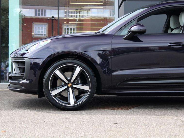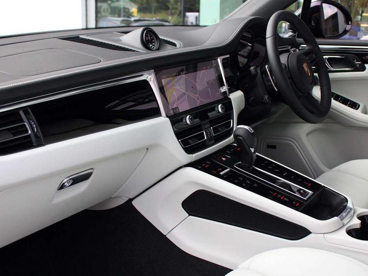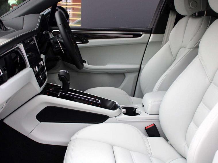 Analogue clock on dashboard, Automatic start/stop system, Automatic tailgate, Cruise control + speed limiter, Digital boost pressure gauge on colour display of instrument cluster, eCall emergency call system, Instrument cluster with high resolution 4.8-inch TFT display, gear indicator for PDK, service interval display, external temperature indicator, fuel gauge, Off-road button, On board computer, Porsche Communication Management (PCM) including online navigation module, mobile phone preparation, audio interfaces and voice control system, Sports button in centre console, 7-Speed Porsche Doppelkupplung (PDK) with automatic mode and manual controls (gearshift paddles) on steering wheel, Direct fuel injection (DFI), Gasoline particulate filter, VarioCam Plus variable valve timing and switchable valve lift, 2 USB sockets in rear centre console, Apple CarPlay with Siri voice recognition, Connect Plus including online navigation, LTE communication module with SIM card reader, wireless internet access, Porsche Car Connect services, DAB Digital radio, Porsche Vehicle Traking System Plus (PVTS Plus), Smartphone compartment with wireless charging, Two USB C charging and connectivity ports in the front centre console storage compartment, Active radiator grille shutters, Automatic headlight activation including welcome home lighting, Bumper system with high strength cross members and two deformation elements + One threaded fixture point for towing eye contained in onboard tool kit, Dynamic cornering lights, speed-sensitive headlight and dynamic range control, adverse weather function, four-point LED daytime running lights, Electric front and rear windows with remote closing function + anti trap + one touch, Electrically folding and heated exterior mirrors, Front light modules with LED position lights and direction indicators, Front windscreen wipers with two speeds, intermittent wipe and rain sensor, Front with integrated cooling air intakes, Fully galvanised body, Heated rear window with automatic switch off, High level 3rd LED brake light integrated into roof spoiler, Loading edge protection in aluminium, Rear side wing doors, Rear window wiper with intermittent function and washer jet, Roof spoiler in high gloss black, Towbar preparation, 3 adjustable rear headrests, 3 rear seats, 3 zone auto climate control separate temperature setting+air recirculation include quality sensor, airflow regulation+AC MAX button+humidity sensor, 4 way adjustable front head restraints, 40:20:40 split folding rear bench seat, Cloth hook b-pillar, Fold up centre console armrest with fore/aft adjustment, Front and rear bottle holders in door panels, Front passenger seat, Glove compartment, Isofix fastening system for child seats on outer rear seats, Luggage compartment cover, Particle/pollen filter with active carbon filter, Rear armrest with 2 cupholders, Storage bin in centre console, Storage compartment in side of luggage compartment and storage compartment in spare wheel recess, Storage pocket in front and rear doors, Two integrated cup holders in front with variable diameter, Two socket 12V power outlets in front console and luggage compartment, Uncovered storage compartment in centre console, Ambient comfort lighting pack - Macan, Lower exterior trim package in black - Macan, 3-point automatic seatbelts with front and outer rear seats pretensioners and force limiter + manually height adjustable seatbelt + reminder warning, 6-piston aluminium monobloc fixed caliper brakes at front, internally vented brake discs, Auto hold function, Brake discs with 360 mm diameter at front and 330 mm at rear, Child locks on rear doors, Curtain airbags along entire roof frame and side windows from A pillar to the C pillar, Electronic parking brake, Front passenger airbag deactivation facility for installation of child seats indicator in overhead console, Front side airbags integrated into seat, Full size driver and passenger airbags, Multi-Collision braking, Porsche hill control (PHC), PTM(Porsche Traction Management) and All-wheel drive with map-controlled multi-plate clutch, Roll over sensor for curtain airbag and seatbelt pretensioners, Side impact protection in doors, Tyre pressure monitoring system, Vehicle stability system, Porsche stability management (PSM) including ABS, ASR, ABD, MSR and trailer stability management, Vented discs brake with combination floating calipers at rear, Alarm system with ultrasonic interior surveillance, Dashcam prep, Engine immobiliser with key transponder, Remote control central locking, Accent trims with silver coloured finish,