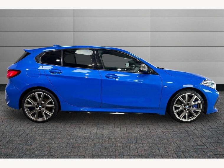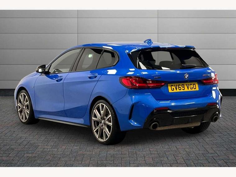 Active guard plus, Attentiveness assist, BMW Live Cockpit Professional sat nav system including 10.25" high resolution display and Intelligent Voice Assistant, BMW Online services, BMW Teleservices, Check Control warning system for monitoring of lights and door/luggage compartment open warning, Eco pro mode, Integrated owners handbook, M Sports steering, On board computer, Optimum shift indicator, Personal Profile, Pull away assistant, Speed limiter, Anti roll bar front and rear, Balancer shaft, Double VANOS, Drive Performance Control, Electronic differential lock, Engine cover with M performance designation, High precision injection, Larger fuel tank capacity (50 litres), Launch control, Petrol Particulate Filter, VALVETRONIC engine management, Bluetooth audio streaming, DAB Digital radio, Auto dimming rear view mirror, Body colour door handles, Cerium grey exterior mirror caps, Direction indicator side lights in exterior mirrors, Electric folding and anti dazzle exterior mirrors, Fading support, Follow me home headlights, Front and rear electric windows with open and close fingertip control, anti trap facility and comfort closing, Front door sill finishers with M135i designation, Green tinted heat protection glazing, Headlight beam throw control, High gloss shadow line exterior trim, High level third brake light, Kidney grille frame in Cerium Grey with Mesh design, LED daytime running lights, Lightweight engineering, M logo designation side in cerium grey, M performance exhaust system, M rear spoiler, Matt black air guide grilles, Matt black roof moulding, B pillar finisher and wheel arch trim, Matt black window frame, Model designation on right side of tailgate, Nearside reverse light in rear light cluster, Rain sensor including auto headlights activation, Rear fog lights, Rear window wiper, Round exhaust system with twin cerium grey tailpipes in left and right split, Shark fin antenna, Visible VIN plate, Welcome lighting, Windscreen wipers with integrated washing jets, 12V power socket in centre console, 2 cupholders in front centre console, 3 rear seat head restraints, 3 spoke M sports design leather steering wheel finished in nappa leather with specific M badge, Anthracite headlining, Anthracite Velour floor mats, Child seat ISOFIX attachment for two outer rear seats and front passenger seat with anchorage points, Conditioned based service, Driver and front passenger seat heating, Driver side folding compartment in instrument panel, Folding rear clothes hook, Folding rear seats, Four grab handles integrated in roof lining, Front and rear door pockets, Front and rear side armrest integrated into door trim, Front Armrest foldable with integrated storage compartment, Front M seats, Glove compartment, Height adjustable front head restraints, Manual adjust steering wheel, Multi-function controls for steering wheel, Rear seat backrest with manual 60:40 split folding with 3 top tether clips integrated on rear of seat panels, Storage compartment in centre console, Sun visors with vanity mirrors and insert tab, Two zone automatic air conditioning, Connected pack professional - 1 Series, Extended Lighting pack - 1 Series M135i, Extended storage pack - 1 Series, Interior lights pack - 1 Series, Luggage compartment pack - 1 Series, M Sport exterior styling aerodynamics pack - 1 Series 135i, 2 tone horn, 3 point seatbelts on all seats, front pyrotechnic belt tensioners, stopper and belt force limiters, rear coded belt buckles, Airbags - Front driver and passenger, front and rear head, front side, curtain head protection, Anti lock braking system (ABS) with brake assist, BMW emergency call, Brake drying, Braking readiness, Crash sensor activating central locking release, hazard warning lights, fuel cut off, interior lighting + activation of safety battery terminal clamp, Driver and front passenger seat belt security check, Dynamic stability control + (DSC+), Dynamic Traction Control - DTC, Electrically operated hand brake, Front passenger manual airbag deactivation, M Sport braking system, M sport seatbelt, Rear child proof door locks, Seatbelt warning, Side impact protection, Tyre pressure monitoring system, Warning triangle and first aid kit, Automatic drive away locking facility, Central locking switch for all doors, fuel filler cap and luggage compartment, Deadlocking function system to all doors, Locking wheel bolts, Remote control with integrated key with High-gloss Black inlay and M designation and 1 button for open/ close lock, window, open luggage compartment, Start/stop button with comfort go keyless engine start and auto start stop deactivation button, Thatcham Cat.1 alarm and immobiliser, Contrast stitching on instrument panel, 18" Burnished M double spoke Bi-colour alloy wheels finished in Cerium grey matt - style 556M, BMW mobility system, Reduced rolling resistance tyres,
