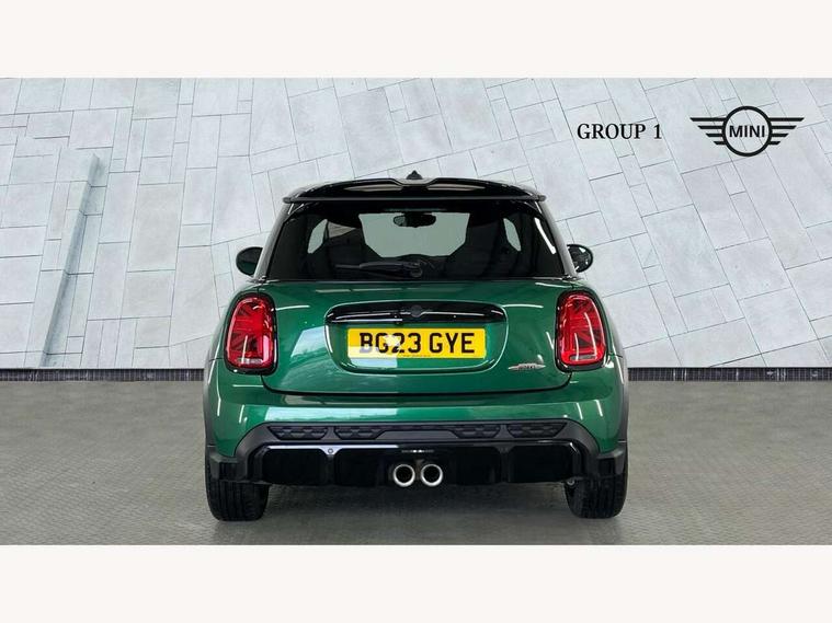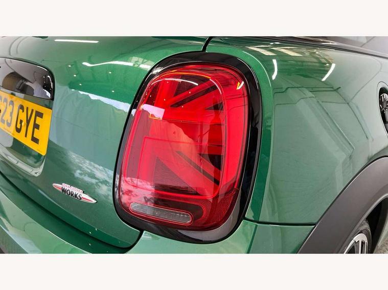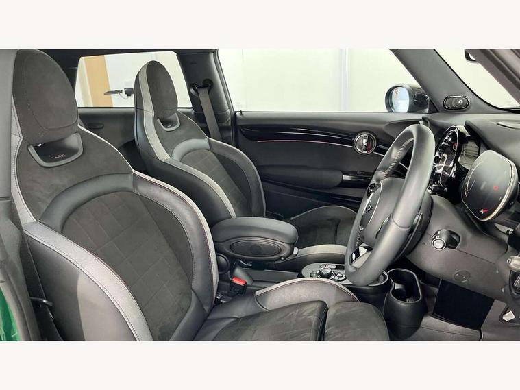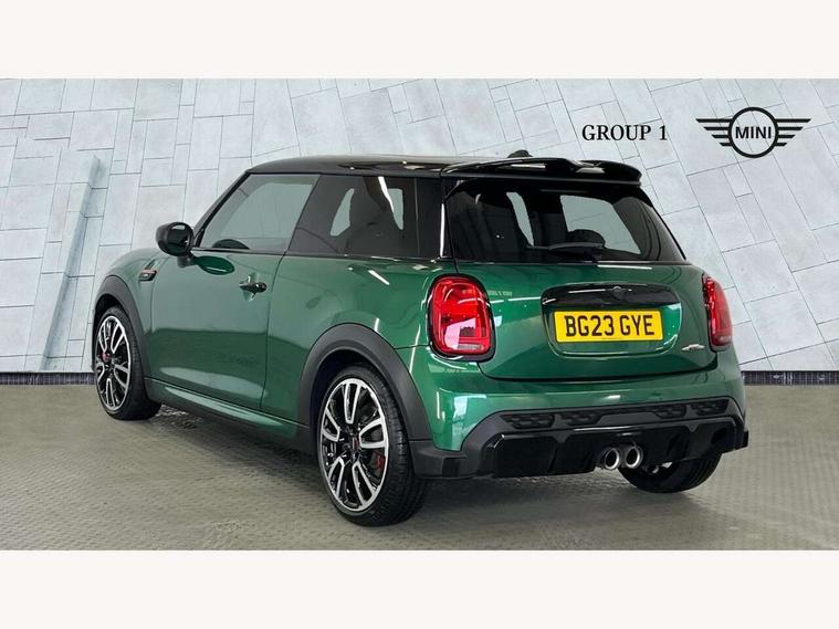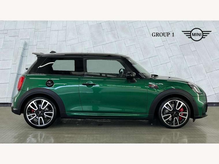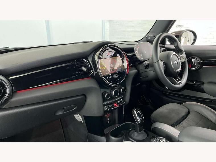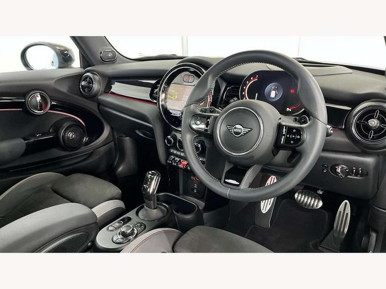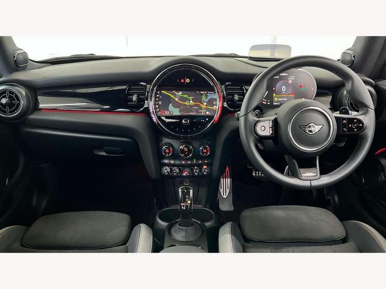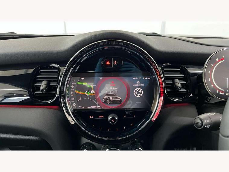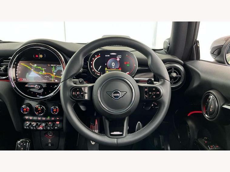 Apple CarPlay, Automatic start/stop function with brake energy recuperation, Compatible mobile phone bluetooth with audio streaming, Cruise control with brake assist, Electro-mechanical speed dependant steering assistance, Flexible car sharing preparation, Instrument cluster, MINI Driving Modes - centre toggle switch to control driving setting (sport, mid and green), Mini E-call, MINI TeleServices, On board computer, Rear park distance control, Service interval indicator, Double Vanos system, Eight speed steptronic sport transmission, with gearshift paddles, Fully variable valve control, High precision injection, Performance Control, 8.8" touchscreen with LED ring, FM tuner and DAB digital radio, 3rd brake light, Automatic headlight activation switch, Bonnet scoop, Dynamic brake lights, Electric front windows, Heated rear window, Heated windscreen washer jets, JCW Aerodynamic kit - Front and rear bumpers with sporty JCW styling and part-painted side sills with MINI John Cooper Works door sill finishers, John Cooper Works logo above an individual grille strut in Chilli Red, John Cooper Works rear spoiler, LED headlight with closed ring and daytime driving lights, Radiator grille piano black border with honeycomb structure in black matt, Rain sensor window wipers, Rear fog lights, Rear LED lights with union jack design, Rear window wiper, Side scuttle panel with integrated indicator, Side scuttle with MINI John Cooper Works logo in black high-gloss with red border, Sun/heat protection glass, Two central exhaust tailpipes with chrome finisher, White indicator lenses, 12V Accessory socket in centre console, 2 seat bench in 2nd row, 4 lashing eyes in luggage compartment, 60/40 split folding rear seat, Anthracite headliner including grab handles and clothes hooks, Carbon black colour line - Knee roll and door armrest, Chrome interior highlights, Cupholders, Front and rear isofix with front passenger airbag deactivation, Front floor mats in velour, Glove compartment, Height and length steering column adjustment, Interior lighting with 12 different colours across the dashboard, underneath door bezel with illuminated laser-engraved design on central display, JCW Sport seats with integrated headrests, adjustable thigh support and John Cooper Works logo, Leatherette gearshift lever and handbrake gaiters, LED reading lights, vanity mirror lights, front foot well light and spotlight on front seats, Manual air conditioning, Mechanical seat adjustment - forward/back & backrest for front seats and driver seat height adjust, Multifunction steering wheel, Passenger seat height adjuster, Rubberised stainless steel pedals, Single front passenger seat, Storage compartments in doors, Storage pocket on back of front seats, Sunvisors with vanity mirrors, Walknappa leather steering wheel with grey seam and John Cooper Works badge on Piano Black lower steering wheel spoke, Navigation pack without Apple Carplay - Mini Hatchback, Piano black exterior pack - JCW, 3 point seatbelts on all four seats, 4-piston fixed-calliper brakes front, 6 Airbags - front, side, head and seat belt tensioners, Anti-lock braking system (ABS), DSC - Dynamic Stability Control, Front and rear disc brakes, Red brake callipers with John Cooper Works logo, Single tone fanfare horn, Tyre pressure monitoring system, Alarm system with tilt sensor, monitoring doors, bonnet interior and tailgate, Electronic vehicle immobiliser, Start/stop toggle with keyless go, Tool kit,