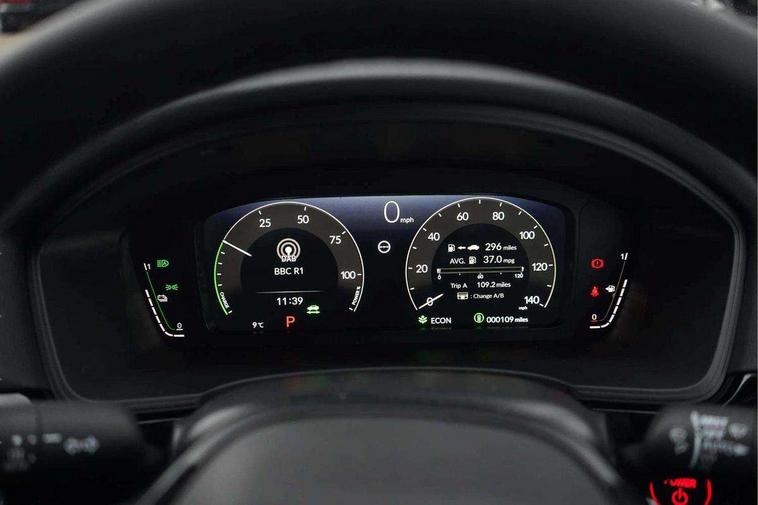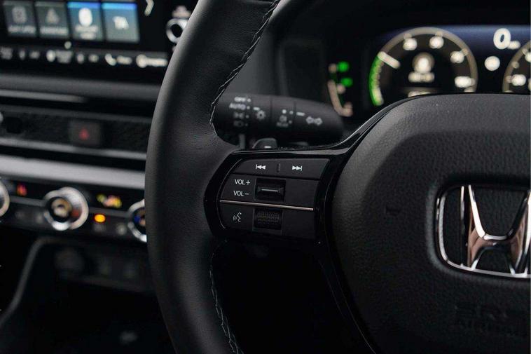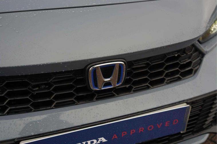 7" Multi information display screen, Adaptive cruise control, Adaptive motion for electric power steering, Adjustable speed limiter, Agile handling assist, BLIS (Blind Spot Information System) with Cross Traffic Monitor, Bluetooth hands free telephone connection, Driving modes, Economy mode, Electric power steering wheel with variable gear ratio steering, Emergency call service, Emergency stop signalling system, Forward collision warning, Front and rear parking sensors, Honda CONNECT with Navigation 9" touchscreen, AM/FM/DAB, Apple Carplay and Android Auto, live traffic info, Honda sensing, Idle stop, Intelligent speed limiter, Lane departure warning system, Lane keep assist, Low speed following, Power meter, Rear parking camera, Road departure mitigation, Smartphone wireless charging plate, Tailgate, Traffic jam assist, Traffic sign recognition, Wireless apple carplay, Vehicle stability assist, 'Shark fin' mobile antenna, 2x USB Front socket (1 data & 1 charge), 8 Speakers, Digital Audio Broadcast (DAB) Tuner, Front tweeters, Steering wheel mounted audio controls, Aspherical driver door mirrors, Auto dimming rear view mirror, Auto headlight adjuster, Auto headlights, Automatic coming/leaving home lighting function, Automatic rain sensing wipers, Black window frames, Body colour door handles, Electric adjustable heated door mirrors, Electric front and rear windows, Electrically folding door mirrors, Headlight extension black, High beam assist, High level LED brake light, LED daytime running lights, LED front fog lights, LED front turn type, LED Headlights, LED rear lights, Low gloss black window garnish, Material finish grille, Pop up hood, Privacy glass, Rear side wing doors, Rear wiper, Single hidden exhaust pipe, Variable front intermittent wipers, 3 seat bench in 2nd row, 60/40 split folding rear seat, Cargo accessory power socket, Cargo net hooks, Driver and front passenger seat armrests, Driver's electric lumbar adjustment, Driver's seat height adjustment, Dual climate control air conditioning system, Fabric/synthetic leather upholstery, Front accessory power socket, Front map lights, Front/rear courtesy lights, Glovebox light, Heated front seats, Hybrid emblem, Isofix points/i size, Leather steering wheel, Meter Illumination white, Passenger seat back pocket, Platinum chrome interior door handles, Rear air vents, Rear head restraints, Rear reading lights, Rear seat centre armrest, Single front passenger seat, Stainless steel sports pedals, Sunvisors with illuminated vanity mirrors, Tilt/telescopic adjustable steering wheel, Tonneau cover, Trunk light, USB Rear number 2 x charge, White ambient roof light, 3x3 point rear seatbelts, ABS+EBD+Brake assist, Airbags - driver and front passenger, Airbags - Knee (AS), Airbags - Knee (DR), Anti-whiplash front headrests, Brake hold function, Collision mitigation braking system, Collision mitigation throttle control, Deflation detection system, Driver SRS airbag (single stage inflation), Electronic parking brake with auto hold, Front and rear curtain airbags, Front and rear seat belts with emergency locking retractor (ELR), Front centre airbag, Front side airbags, Hill start assist, Low speed brake system, Manual child lock in rear doors, Passenger airbag deactivate switch, Rear airbags, Regenerative braking/deceleration paddle control, Immobiliser, Mirrors and windows key fob, Remote central locking with 2 jack knife keys, Security alarm, Selectable door unlock, Smart entry + Smart start, Superlocking, Tilt sensors, Ultrasonic security sensor, Tyre repair kit,