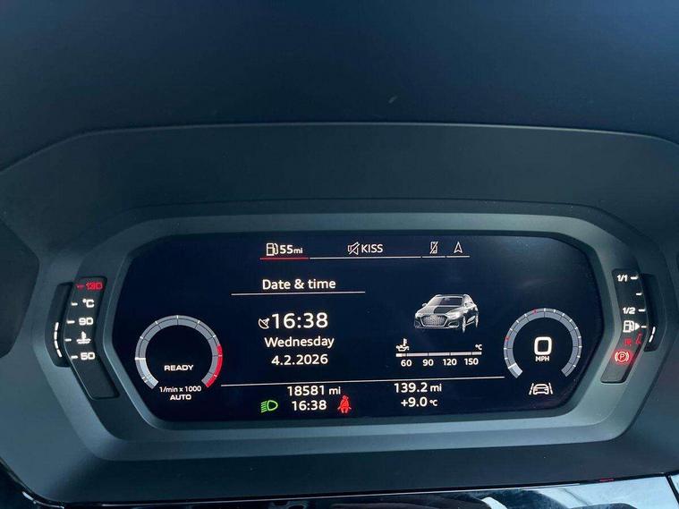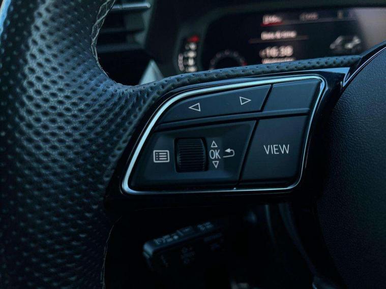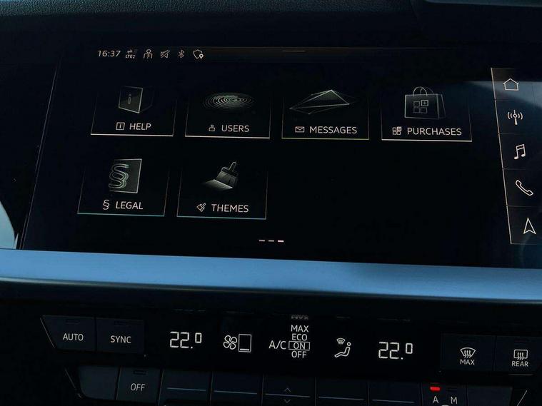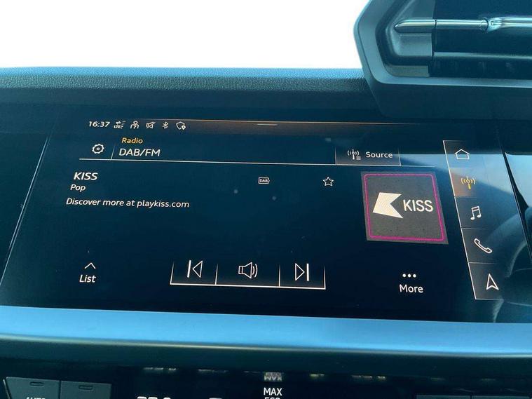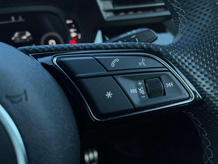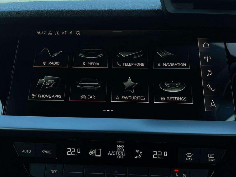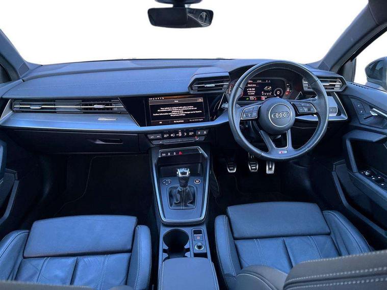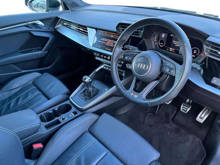 Audi drive select (Auto, Comfort, Dynamic and Individual), Audi smartphone interface, Audi Virtual Cockpit - 10.25" digital and colour instrument cluster, Automatic start/stop system with recuperation, Bluetooth interface, Collision avoidance assistant, Cruise control, e-Call (emergency call), Electromechanical power speed sensitive steering, Lane departure warning system, MMI Navigation Plus with high resolution 10.1" colour touch screen display, Rear parking sensors, Service indicator, Trip computer, Voice control system with natural language interaction, 2xUSB-C connection with data and charging functions, 6 passive loudspeakers, DAB Digital radio, 3rd brake light, Acoustic glass windscreen, Aluminium window trim, Auto dimming frameless rear view mirror, Electrically adjustable/heated/folding/auto dimming door mirrors with integrated LED indications + kerb view function for passenger side, Front electric windows, Illuminated aluminium inserts front door sills with S logo, LED daytime running lights, LED headlights with LED rear lights and dynamic rear indicators, Light and rain sensors, Privacy glass - dark tinted rear window, rear door and side windows, Rear electric windows, Rear side air outlets in grained matt black, Rear side wing doors, Rear wiper, S line bumpers, S roof spoiler, 12V socket and storage compartment in front centre console, 3 seat bench in 2nd row, 40/20/40 split folding rear seat bench with cupholder, Black cloth headlining, Dual zone electronic climate control, Front and rear centre armrest in leather, Front and rear headrests, Front/rear floor mats, Height and reach adjustable steering wheel, Illuminated vanity mirror, Interior lighting - glove compartment light and right hand side, Luggage compartment floor covering, Manual boot compartment lid, Manually adjustable front seats, Seat side bolsters, Single front passenger seat, Stainless steel pedals and front footrest in black, Twin leather upholstery with front sports seats S embossed logo, Aluminium interior elements pack - A3 Sportback, S line styling pack - A3 Sportback, 3x3 point rear seat belts, Audi pre sense front, Driver and front passenger airbag with passenger airbag deactivation, Electronic Stabilisation Control (ESC) including ABS, ASR and EDL, First aid kit with warning triangle and 2 safety vests, Front side airbags with head airbags and interaction airbag, Pre-sense front with pedestrian and cyclist detection, Seatbelt monitoring, Tyre pressure loss indicator, Anti theft alarm, Anti-theft wheel bolts, Immobiliser, Manual child locks, Remote control central locking, Accent surfaces in the dashboard and centre console in platinum grey silk effect paint finish, Dark spectrum aluminium inlays,
