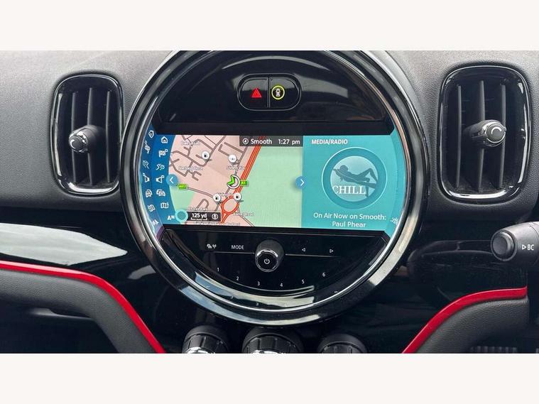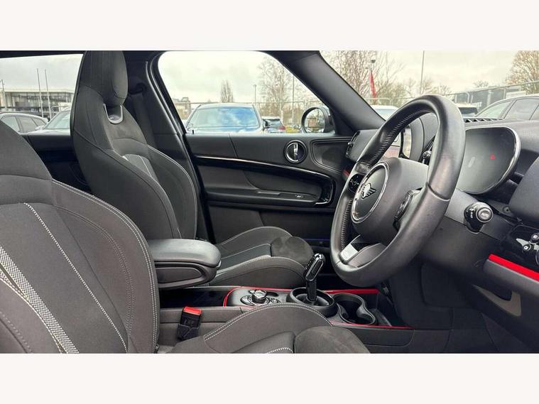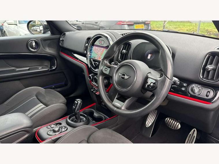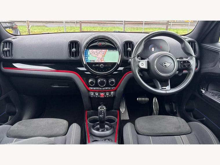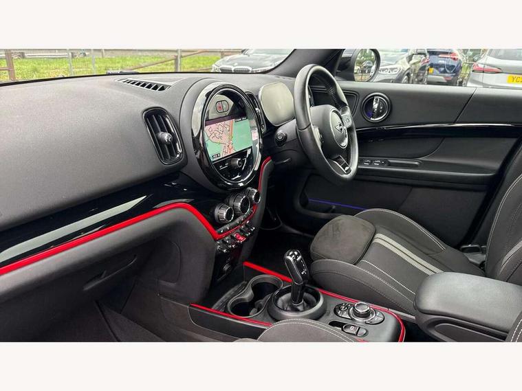 Active Guard incl speed limiting and lane departure functions with auto steering, and front collision warning with brake intervention, Automatic start/stop function with brake energy recuperation, Compatible mobile phone bluetooth with audio streaming, Cruise control with brake assist, Electro-mechanical speed dependant steering assistance, Instrument cluster, MINI Driving Modes - centre toggle switch to control driving setting (sport, mid and green), Mini E-call, On board computer, Rear parking distance control, 51 Litre fuel tank, Double Vanos system, Fully variable valve control, High precision injection, Performance Control, Steptronic sport transmission with double clutch and steering wheel paddles, FM tuner and DAB digital radio, 3rd brake light, Bonnet scoop, Chrome fuel filler cap, Day time driving lights, Dynamic brake lights, Electric windows, Heated rear window, Heated windscreen washer jets, John Cooper Works - aerodynamic kit (front and rear apron, spoiler), front and rear sport bumpers and part-painted side sills with door sill finishers, John Cooper Works Logo, LED fog lights, LED Headlights, Metal door sill strips with Cooper S imprint, Model logo, Model logo on Tailgate, Rain sensor with auto headlights, Rear fog lights, Rear side wing doors, Rear window wiper, Side scuttle panel with integrated indicator, Split rear doors, Sun/heat protection glass, White indicator lenses, 12V socket in centre console, 3 seat bench in 2nd row, 360L luggage compartment capacity, 4 lashing eyes in luggage compartment, 40:20:40 split folding rear seats, Anthracite headlining with grab handles and clothes hooks, Chrome interior highlights, Colour line - Carbon black, Cupholders, English handbook, Floor mats, Front headrests, Glove compartment, Height and length steering column adjustment, Interior lighting with 12 basic colours selectable via toggle switch in roof, Isofix rear child seat preparation, LED reading lights, vanity mirror lights, front foot well light and spotlight on front seats, Manual air conditioning, Mini John Cooper Works leather gearshift lever and handbrake gaiters, Multifunction steering wheel, Nappa leather steering wheel with MINI Yours logo, Rear headrests, Single front passenger seat, Stainless steel pedals and foot rest, Storage compartments in doors, Sunvisors with vanity mirrors, Excitement pack - Countryman, Navigation pack - Countryman, Piano black exterior pack - Countryman Cooper S/SD/SE/Boardwalk, 2 tone horn, 3 point seatbelts on all seats, 6 Airbags - front, side, head and seat belt tensioners, Anti-lock braking system (ABS), DSC - Dynamic Stability Control, Electronic handbrake, Front and rear disc brakes, Hill start assist, Manual rear child locks, Tyre pressure monitoring system, Alarm system with tilt sensor, monitoring doors, bonnet interior and tailgate, Auto drive away locking, Deadlocking function, Electronic vehicle immobiliser, Locking wheel bolts, Start/stop toggle with keyless go, Piano black JCW interior trim, Tool kit,