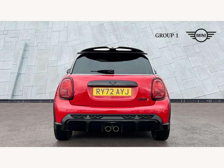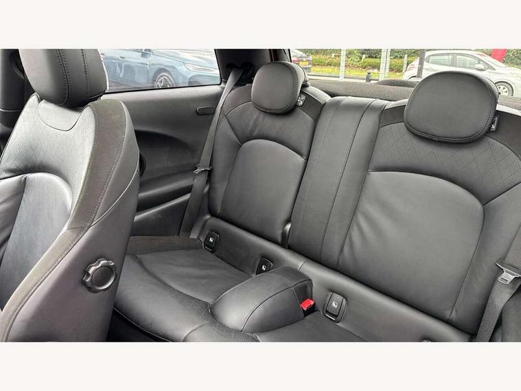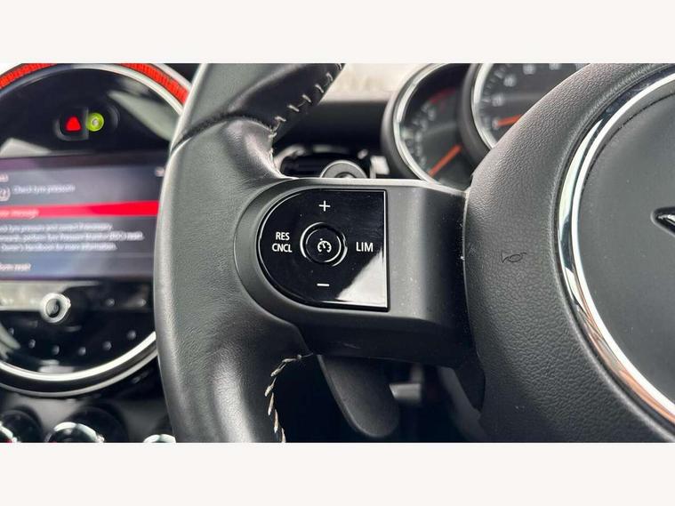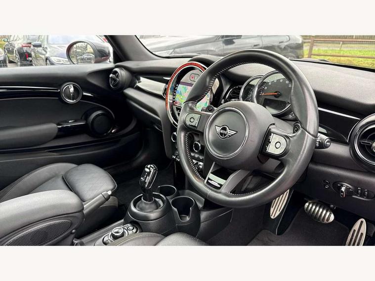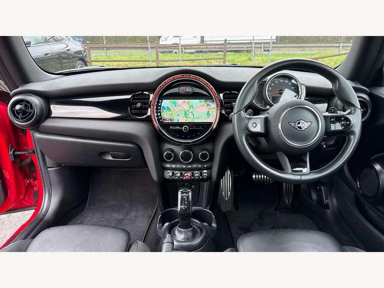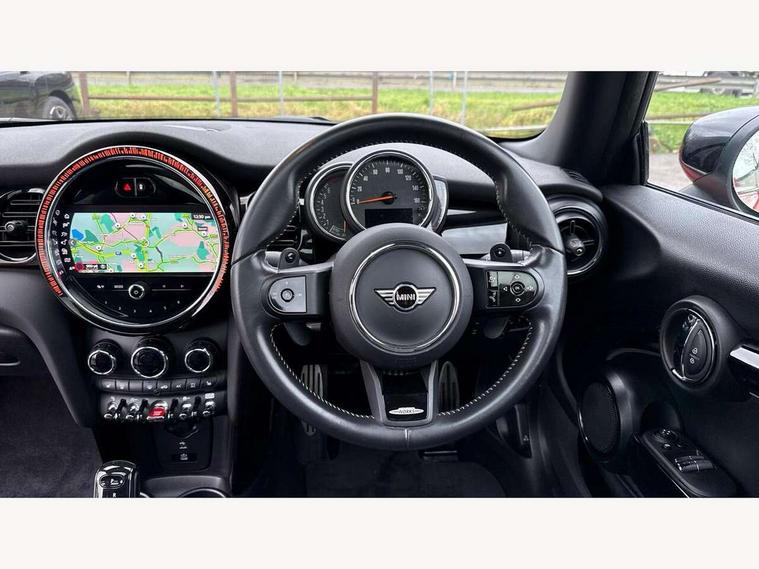 Apple CarPlay, Automatic start/stop function with brake energy recuperation, Compatible mobile phone bluetooth with audio streaming, Cruise control with brake assist, Electro-mechanical speed dependant steering assistance, Flexible car sharing preparation, Instrument cluster, MINI Driving Modes - centre toggle switch to control driving setting (sport, mid and green), Mini E-call, MINI TeleServices, On board computer, Rear park distance control, Service interval indicator, Double Vanos system, Fully variable valve control, High precision injection, Intelligent adaptive suspension, Performance Control, Steptronic sport transmission with double clutch and steering wheel paddles, 8.8" touchscreen with LED ring, FM tuner and DAB digital radio, 3rd brake light, Automatic headlight activation switch, Bonnet scoop, Dynamic brake lights, Electric front windows, Heated rear window, Heated windscreen washer jets, JCW Aerodynamic kit - Front and rear bumpers with sporty JCW styling and part-painted side sills with MINI John Cooper Works door sill finishers, John Cooper Works rear spoiler, LED headlight with closed ring and daytime driving lights, Metal door sill strips with Cooper S, Model logo Cooper S on right of tailgate, Radiator grille chrome border with honeycomb structure including S Badge, Rain sensor window wipers, Rear fog lights, Rear LED lights with union jack design, Rear window wiper, Side scuttle panel with integrated indicator, Sun/heat protection glass, Two central exhaust tailpipes with chrome finisher, White indicator lenses, 12V Accessory socket in centre console, 2 seat bench in 2nd row, 4 lashing eyes in luggage compartment, 60/40 split folding rear seat, Anthracite headliner including grab handles and clothes hooks, Carbon black colour line - Knee roll and door armrest, Chrome interior highlights, Cupholders, Front and rear isofix with front passenger airbag deactivation, Front floor mats in velour, Glove compartment, Height and length steering column adjustment, Interior lighting with 12 different colours across the dashboard, underneath door bezel with illuminated laser-engraved design on central display, JCW Sport seats with integrated headrests, adjustable thigh support and John Cooper Works logo, Leatherette gearshift lever and handbrake gaiters, LED reading lights, vanity mirror lights, front foot well light and spotlight on front seats, Manual air conditioning, Mechanical seat adjustment - forward/back & backrest for front seats and driver seat height adjust, Multifunction steering wheel, Passenger seat height adjuster, Single front passenger seat, Storage compartments in doors, Storage pocket on back of front seats, Sunvisors with vanity mirrors, Walknappa leather steering wheel with grey seam and John Cooper Works badge on Piano Black lower steering wheel spoke, Piano black exterior pack - Mini Hatchback Cooper S, 3 point seatbelts on all four seats, 6 Airbags - front, side, head and seat belt tensioners, Anti-lock braking system (ABS), DSC - Dynamic Stability Control, Front and rear disc brakes, Two tone horn, Tyre pressure monitoring system, Alarm system with tilt sensor, monitoring doors, bonnet interior and tailgate, Electronic vehicle immobiliser, Start/stop toggle with keyless go, Piano black interior trim, Tool kit,