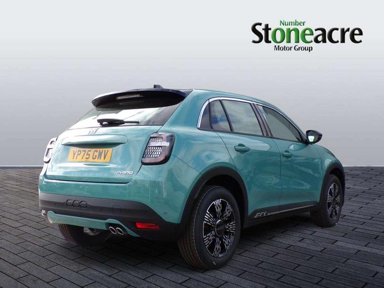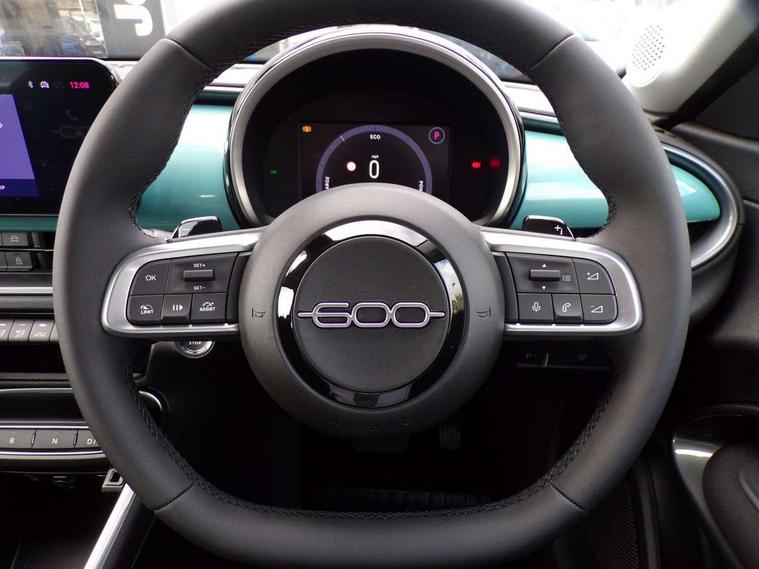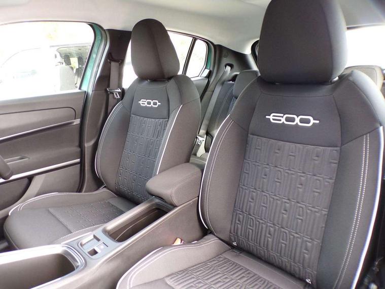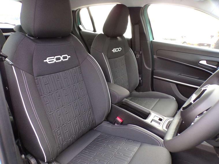 7" TFT digital cluster, Bluetooth connectivity, BSRF connectivity box, Connected services, Cruise control, Drowsy driver detection, Emergency E-call assist, Engine emission level default, GSR II step 1, Intelligent speed assist, Lane keeping assistant (LKA), Odometer, Power assist steering, Rain and dusk sensors, Rear parking sensors, Traffic sign recognition, Wireless apple car play/android Auto, Without drive mode selector, L2-AGM 12V battery, 1st Row USB type-A and USB type-C, 4 speaker audio system, Radio, Uconnect infotainment 10.25" touchscreen with DAB, All power windows express Up/Down, Auto dimming frameless rear view mirror, Automatic headlights, Body coloured door handles, Chrome day light openings, Electric adjustable door mirrors, Exterior chrome accents, Front and rear Chromed 600 logo, Gloss black finish B pillar, Gloss black shark fin antenna, Glossy black door mirrors, Heated windscreen wiper blade area, LED 3rd brake light, LED daytime running lights, LED Fog lamps with cornering function, LED front signature lighting, LED front turn indicators and position lights, LED rear lights, LED rear signature lighting, LED reflector headlamps, Matt black side skirts with 600 chromed logo, Rear bumper embossed 600 logo, Rear roof spoiler, Rear side wing doors, Rear wiper, 2 Spoke synthetic leather steering wheel with audio control, 3 rear headrests, 3 seat bench in 2nd row, 4 way manually adjustable passenger seat, 6 way manually adjustable drivers seat, Auxilliary 12V power socket, Body colour dashboard fascia, Chrome interior door handles, Dark metachrome dashboard ring, English handbook, Front centre armrest, Front headrests, Front passenger grab handle, Front seatback pockets, ISOFIX attachment on front passenger and rear passenger seats, Manual climate control, Metachrome central compartment bezel, Monogram fabric upholstery, Paddle shifts, Partial body cover for shipment, Predisposal for accessory upgrade to default tunnel pad cover (dedicated prnd bezel), Rear seat 40/60 split, Single front passenger seat, Smart 15L storage central tunnel with tunnel pad cover, Sunvisor label ciao Fiat, Sunvisors with vanity mirrors, 3x3 point rear seatbelts, 6 airbags, ABS, Autonomous Emergency Brake (AEB) & Vulnerable Road User (VRU) Protection, Child locks on rear doors, Electronic parking brake with auto hold, ESC (Electronic Stability Control), Front passenger airbag deactivation, Seatbelt reminder and pretensioners for all seats, Anti-theft volumetric alarm, Anti-theft wheel bolts, Keyless Go, 17" Diamond cut alloy wheels, Fix and go puncture repair kit,